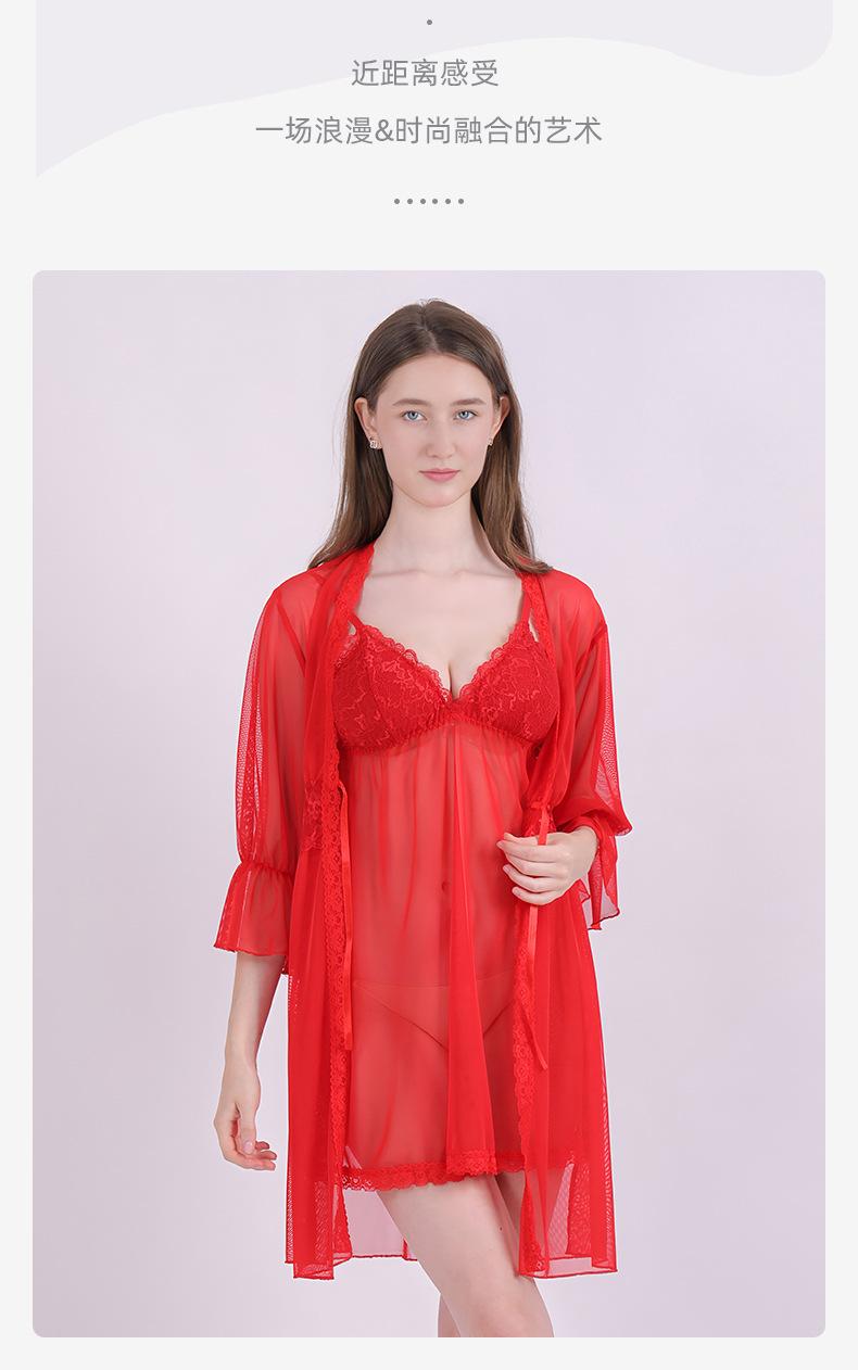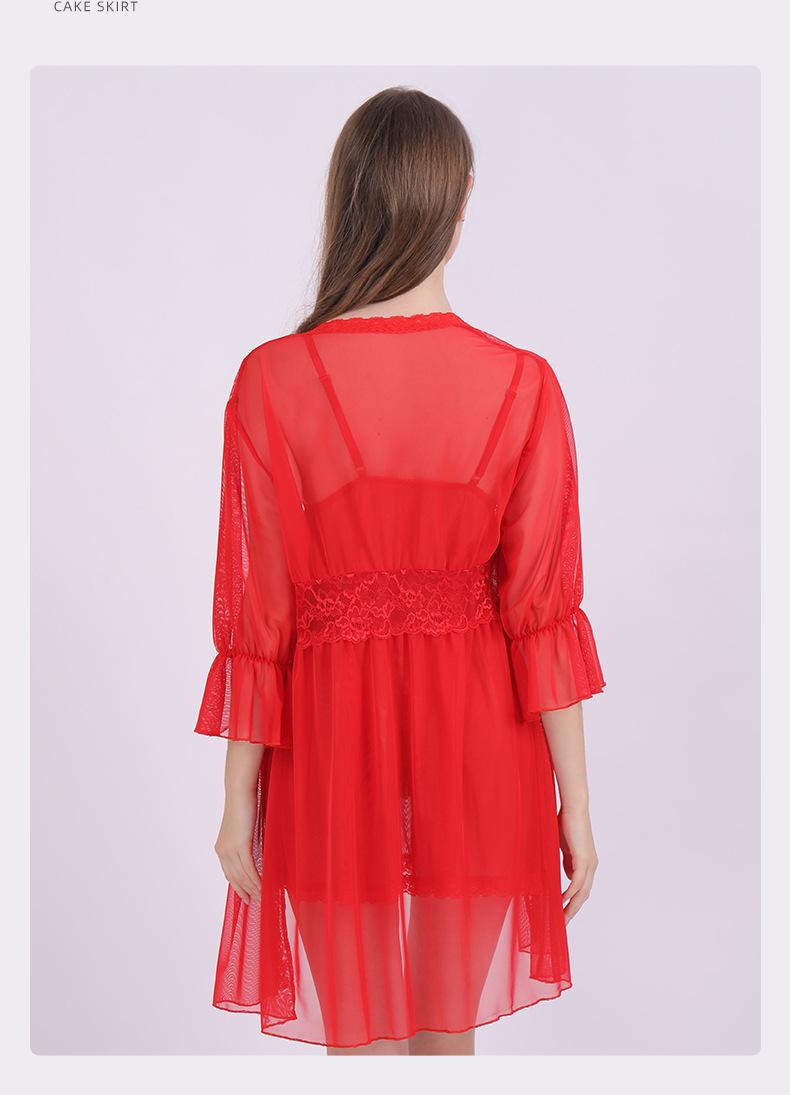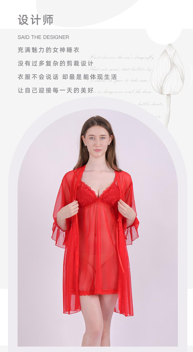 Camisón de Tirantes de Dos Piezas, Ropa de Casa para Mujer de Encaje, Camisón Vestido Delgado de Verano Transparente de Alta Gama