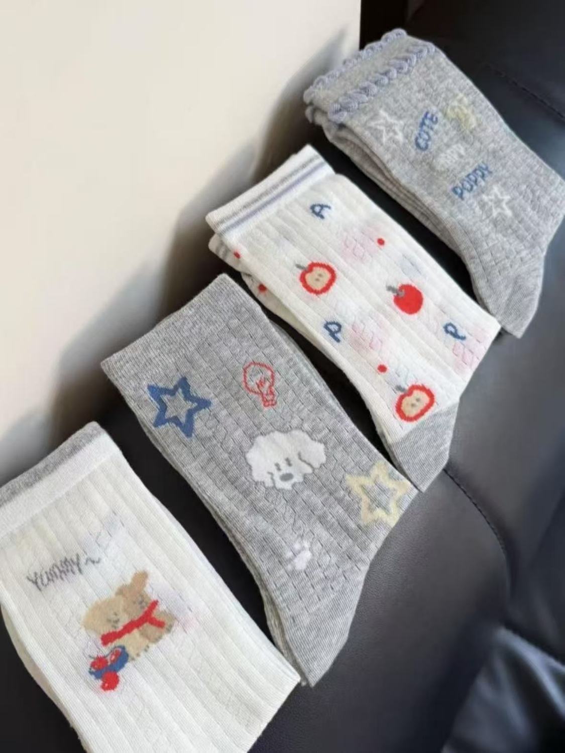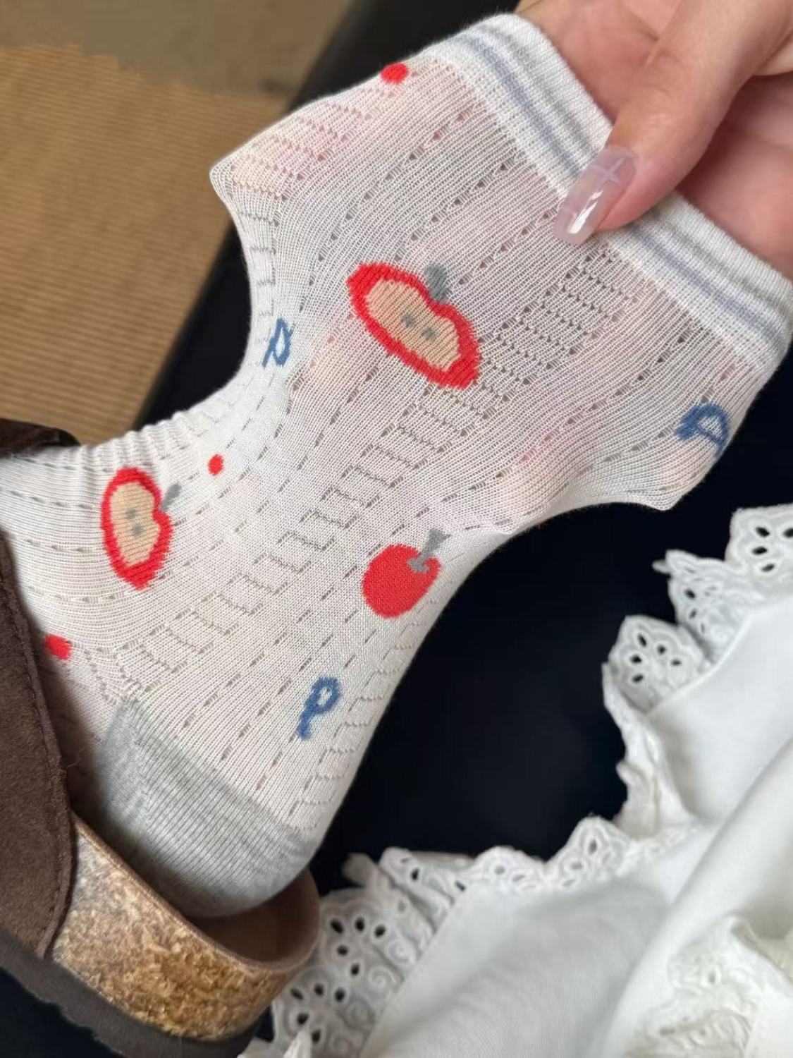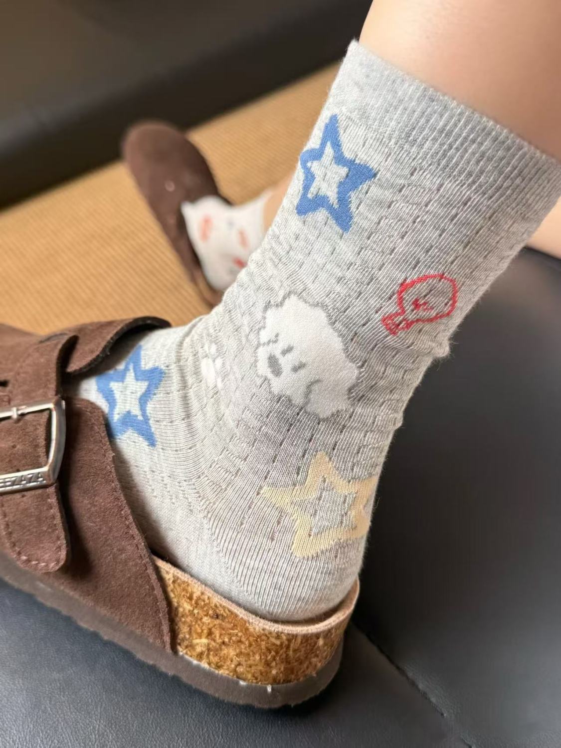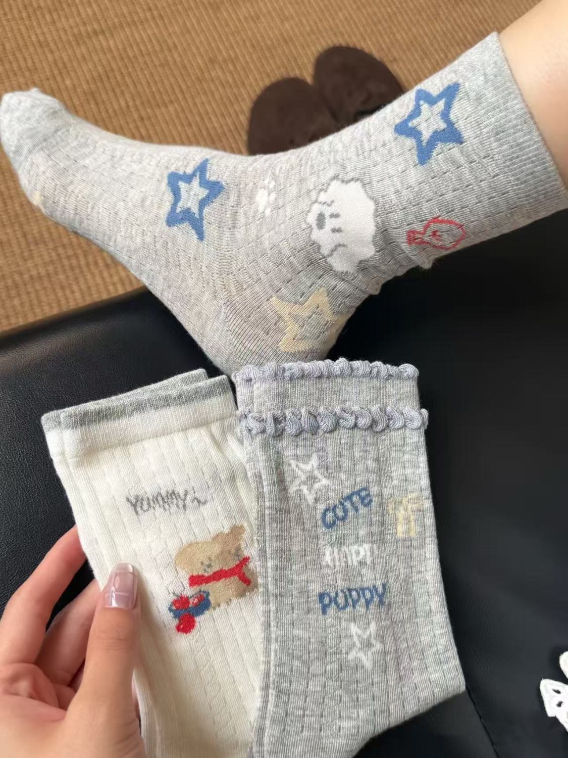 Calcetines de Verano de Malla Hueca Lindo Cachorro Transpirables Calcetines Sin Costuras Calcetines Finos de Dibujos Animados de Estrella para Mujer Calcetines Populares de Media Caña