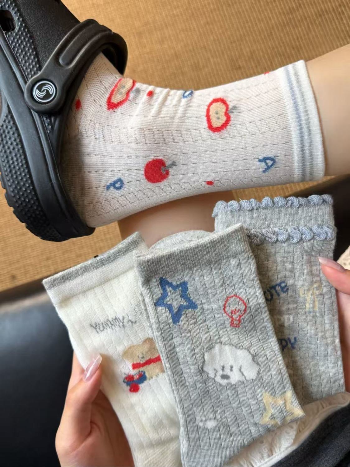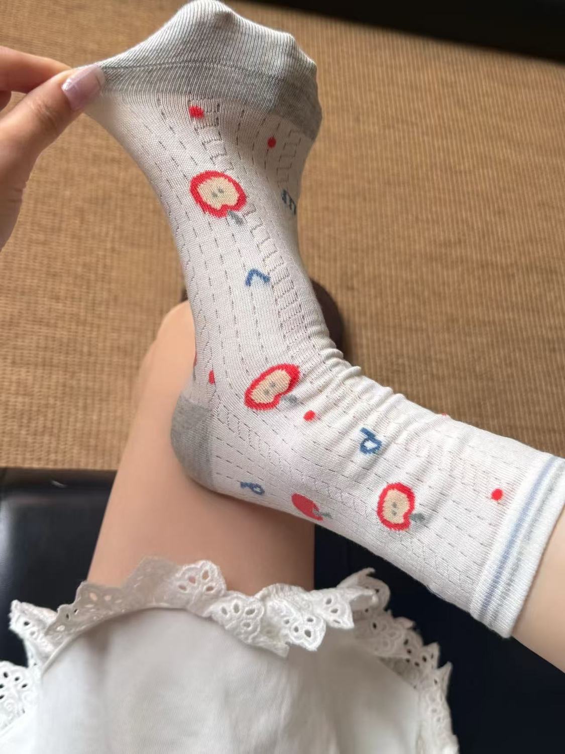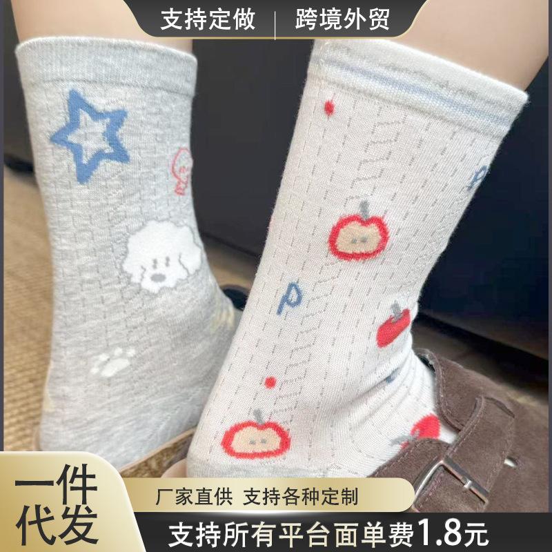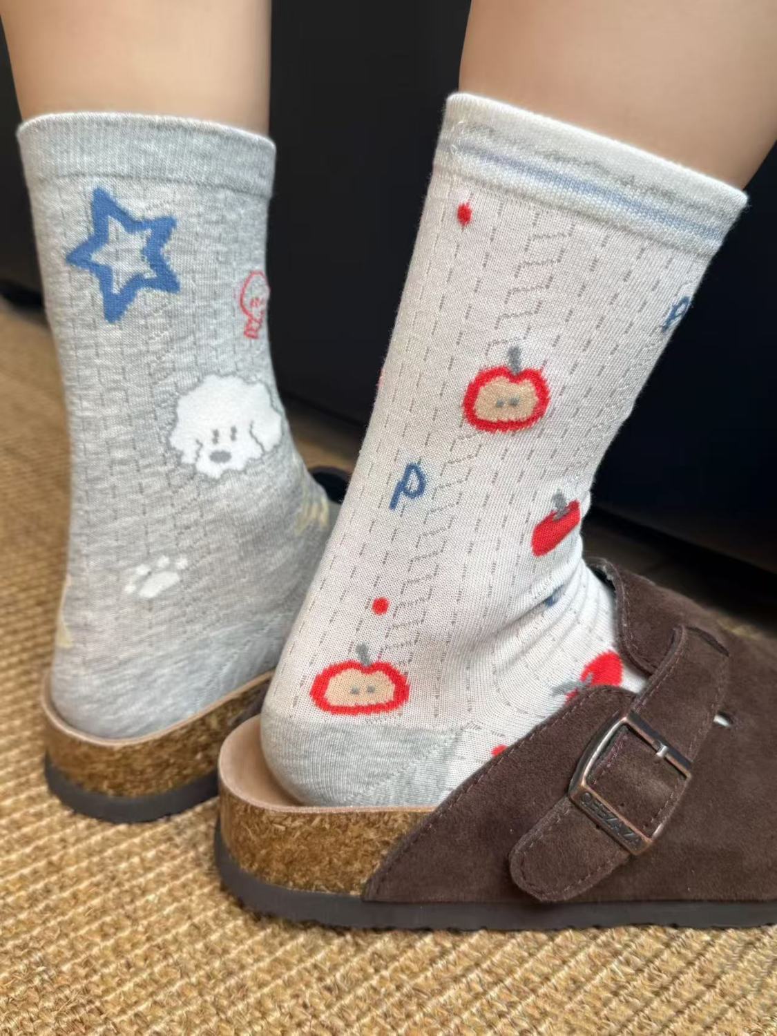 Calcetines de Verano de Malla Hueca Lindo Cachorro Transpirables Calcetines Sin Costuras Calcetines Finos de Dibujos Animados de Estrella para Mujer Calcetines Populares de Media Caña