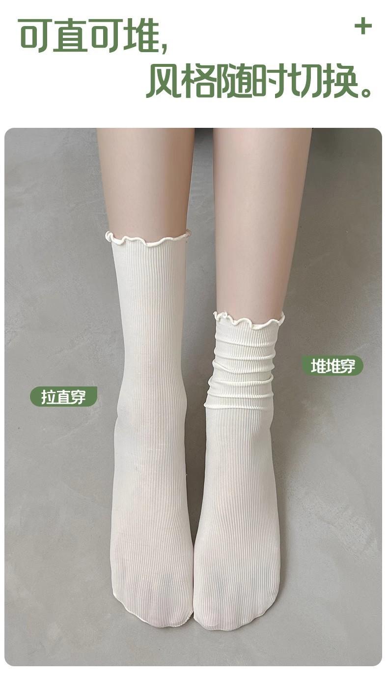 Calcetines finos de verano para mujer, calcetines de media caña para primavera y otoño, calcetines largos de mujer lisos estilo japonés con volantes