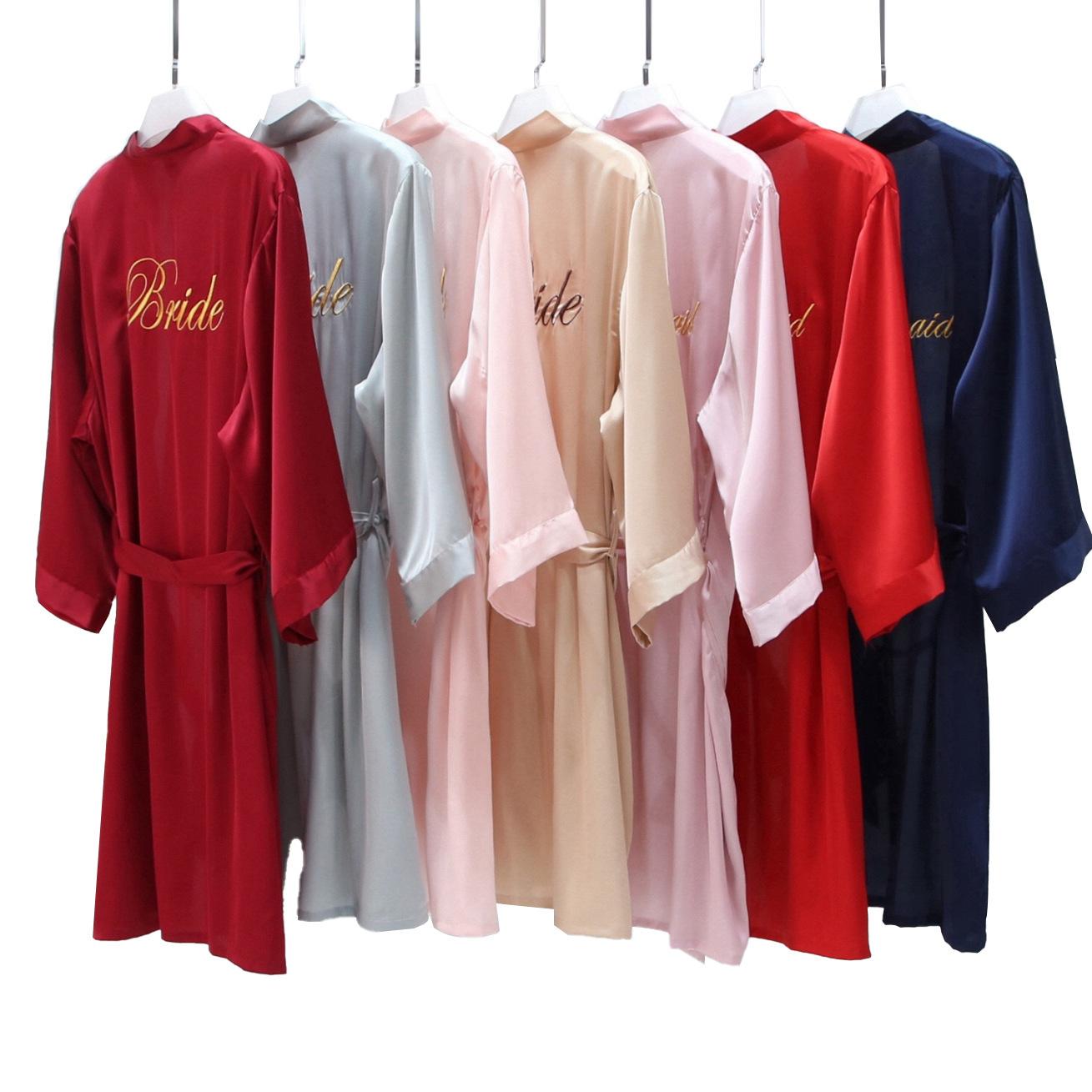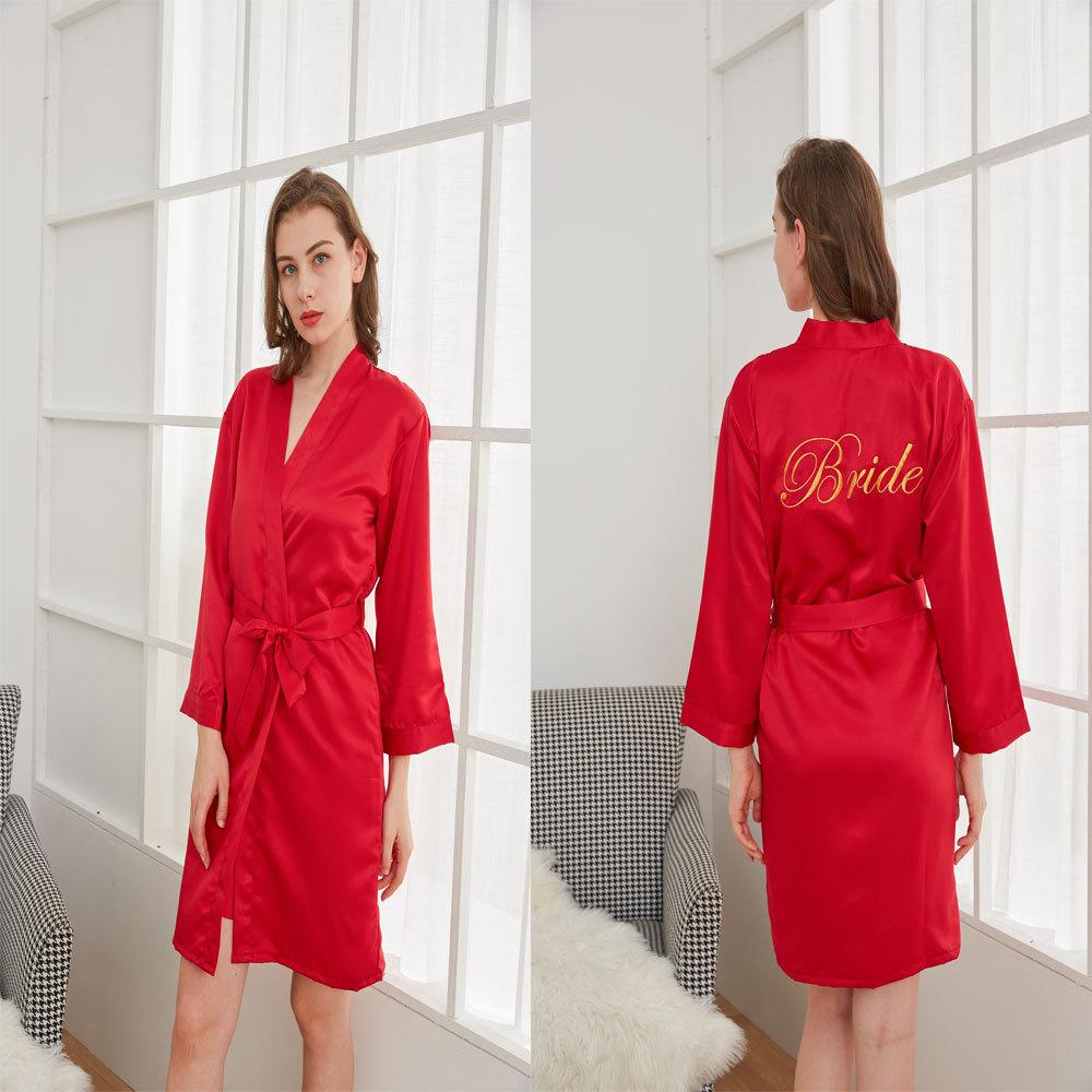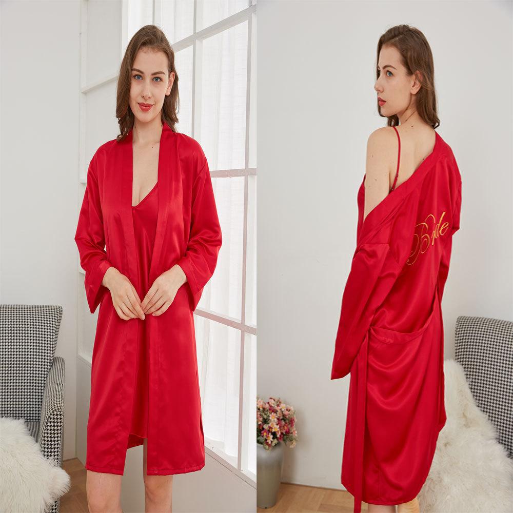 Bata de Mañana Nupcial Ceremonia de Boda Vestido de Dama de Honor Maquillaje Camisón Holgado de Talla Grande para Mujer Camisón de Satén de Seda de Hielo