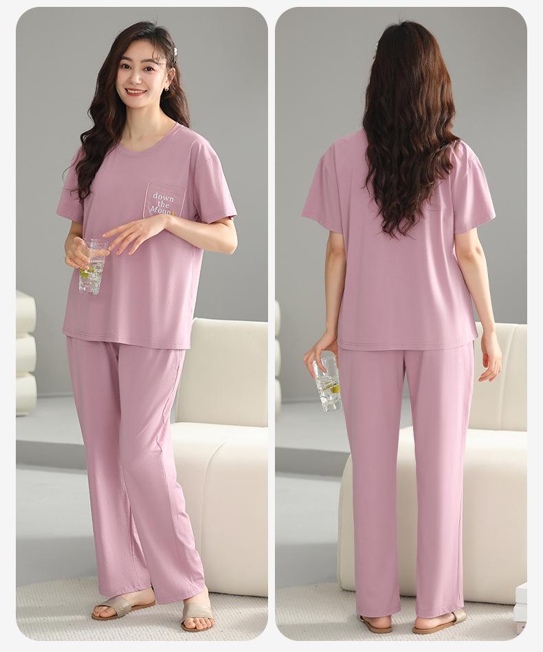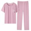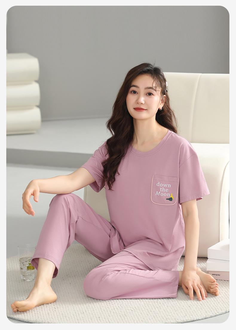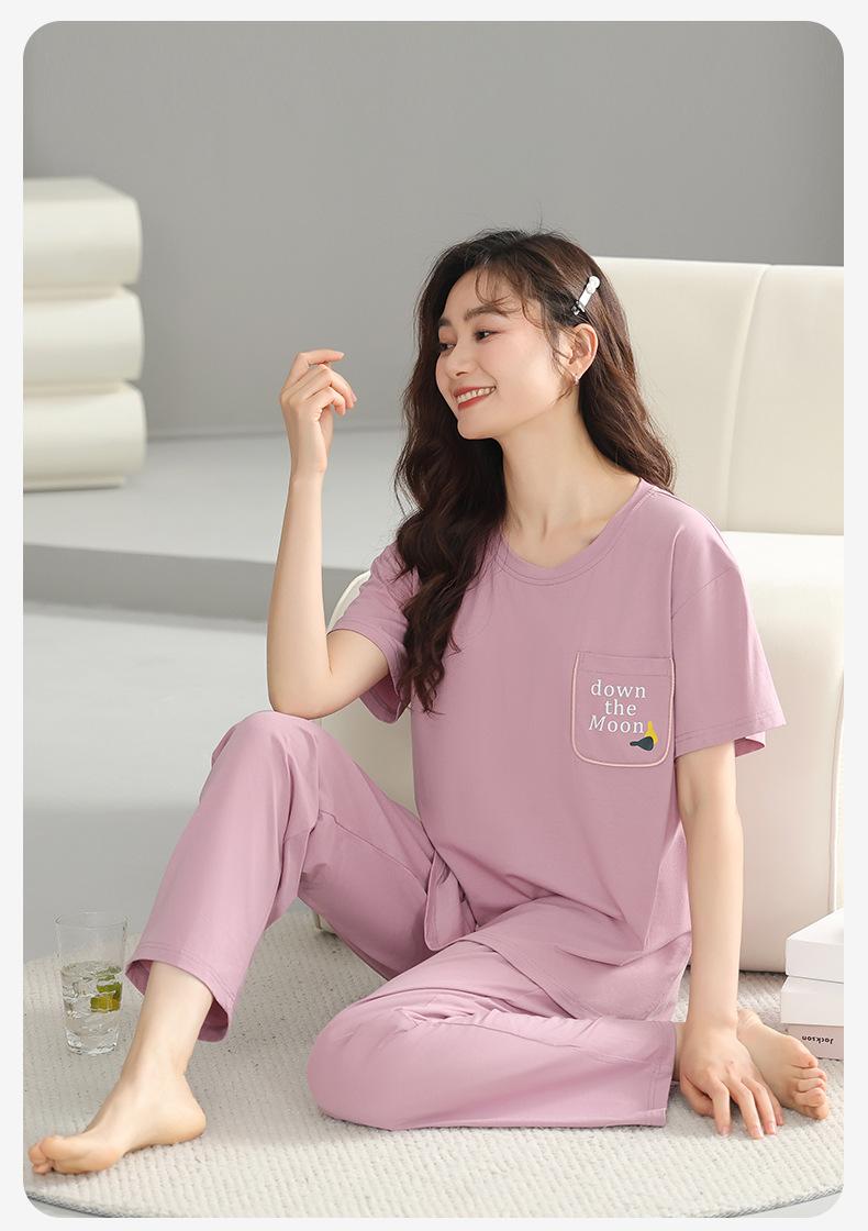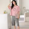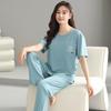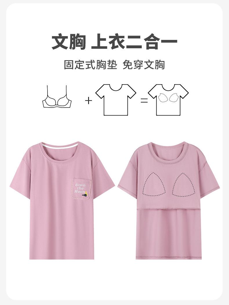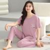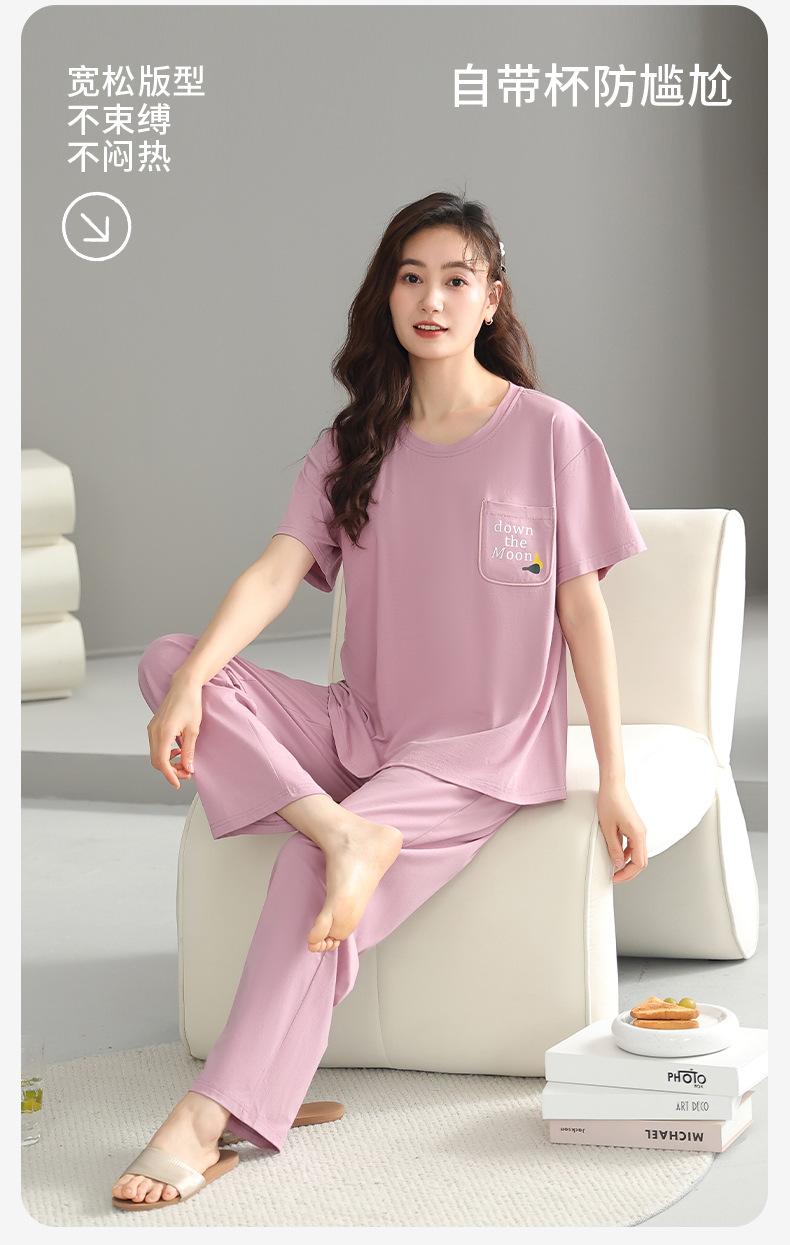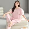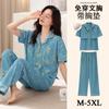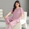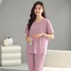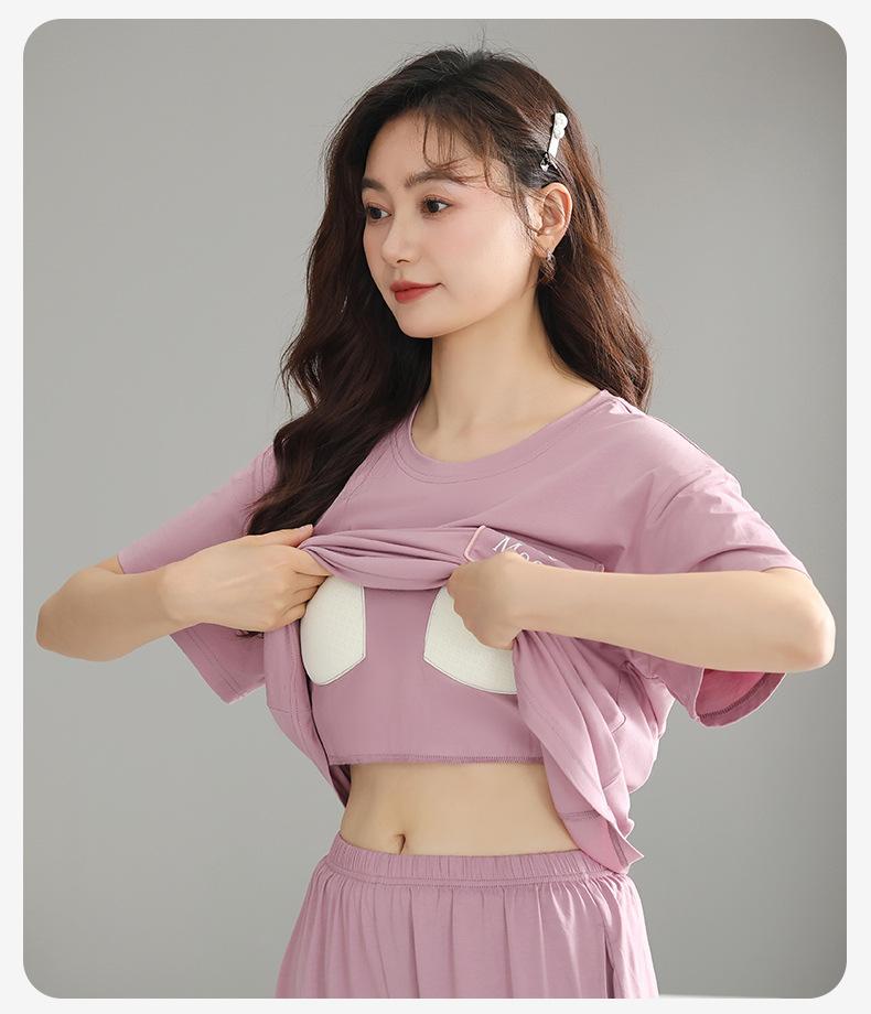 Pijama con Almohadilla en el Pecho para Mujer Verano Fino Modal Manga Corta Pantalón Capri Ropa de Casa para Madre de Mediana Edad Traje con Sensación Fresca