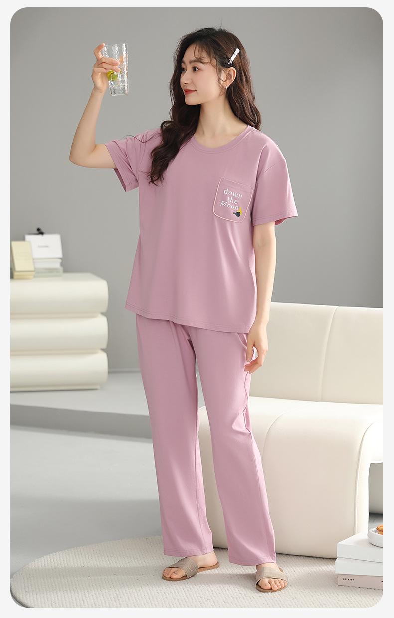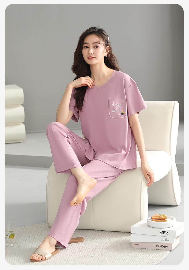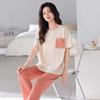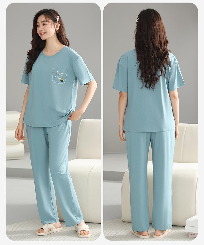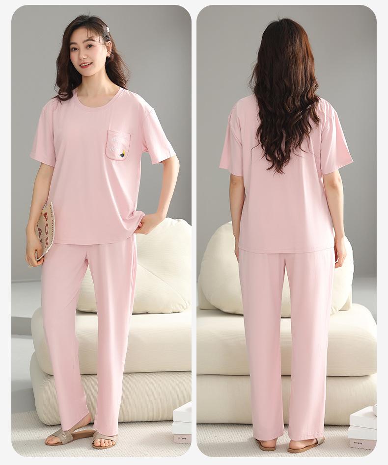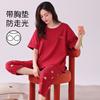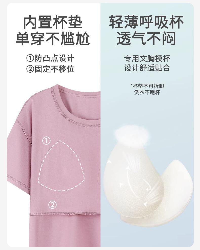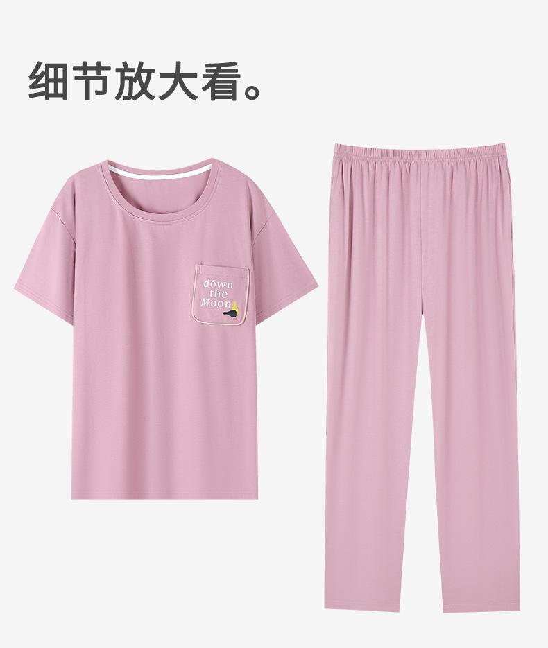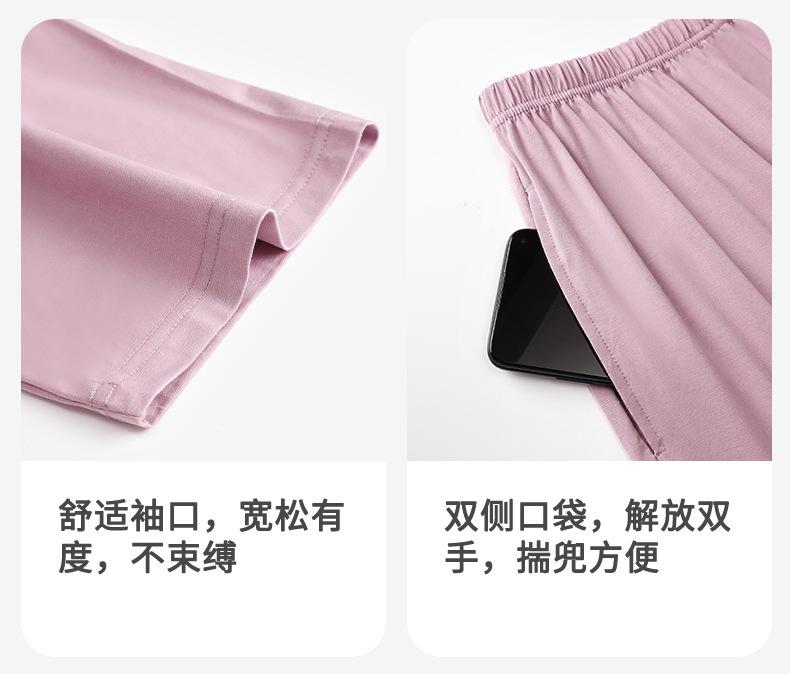 Pijama con Almohadilla en el Pecho para Mujer Verano Fino Modal Manga Corta Pantalón Capri Ropa de Casa para Madre de Mediana Edad Traje con Sensación Fresca