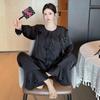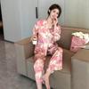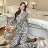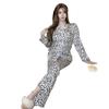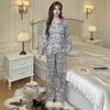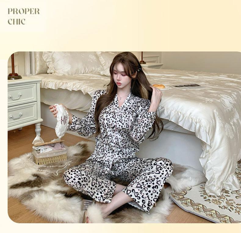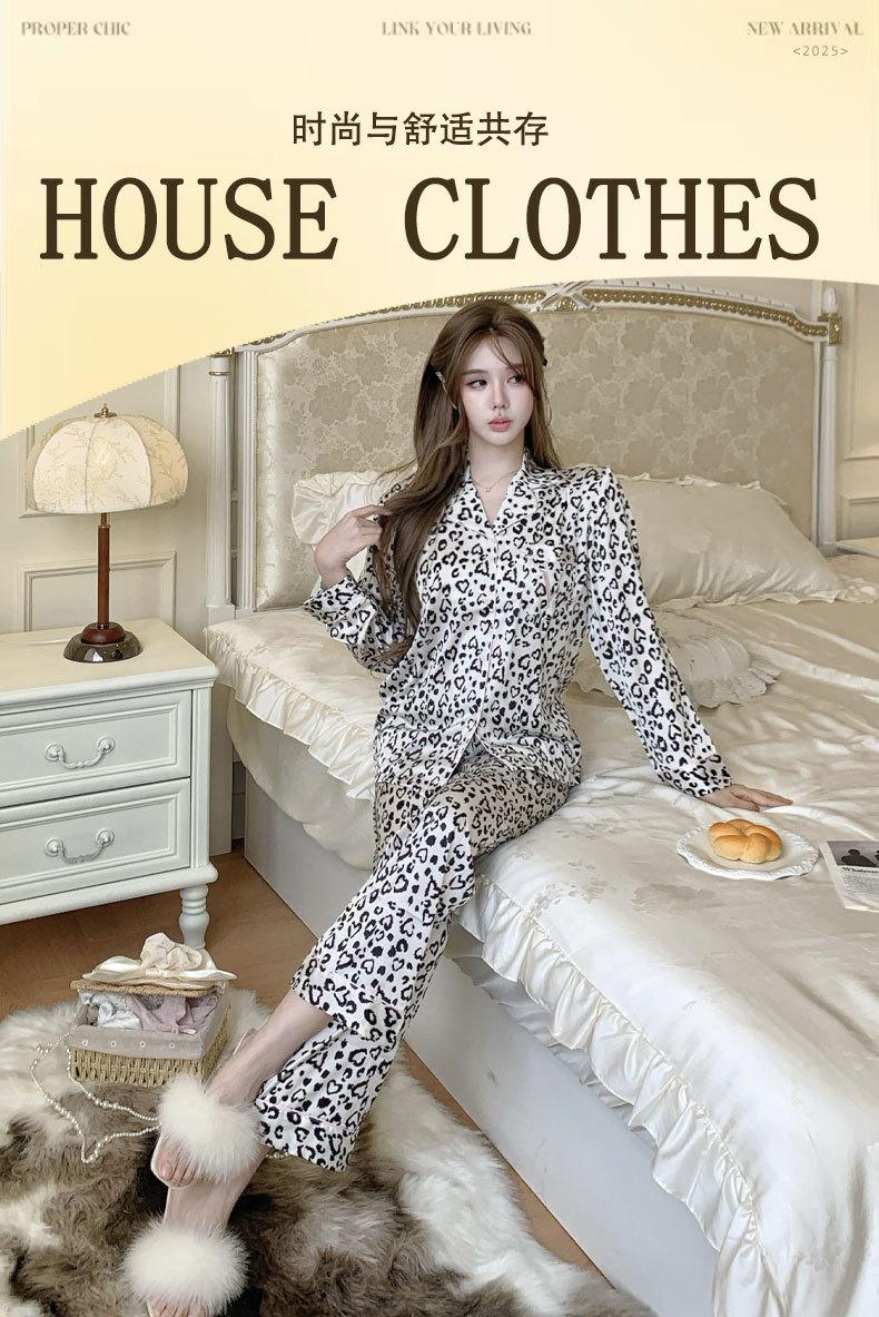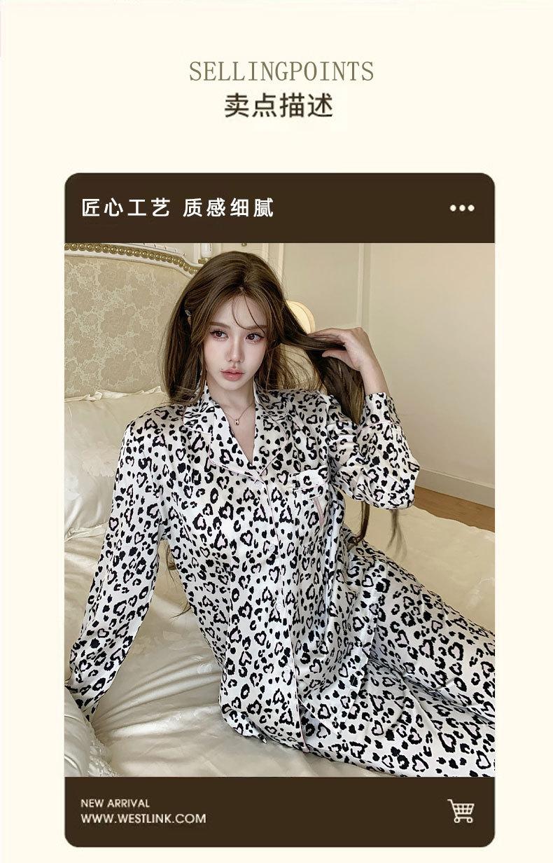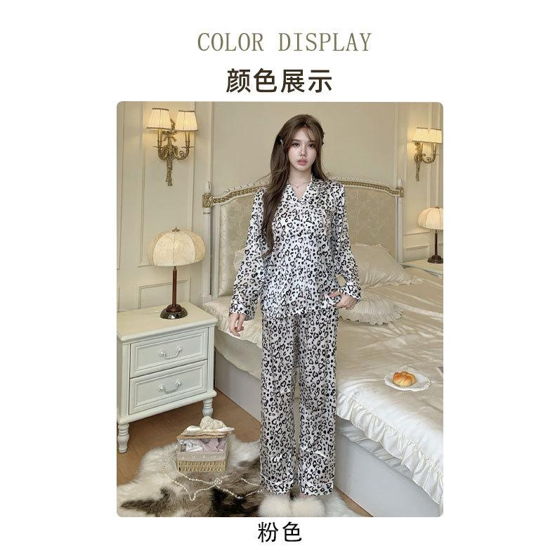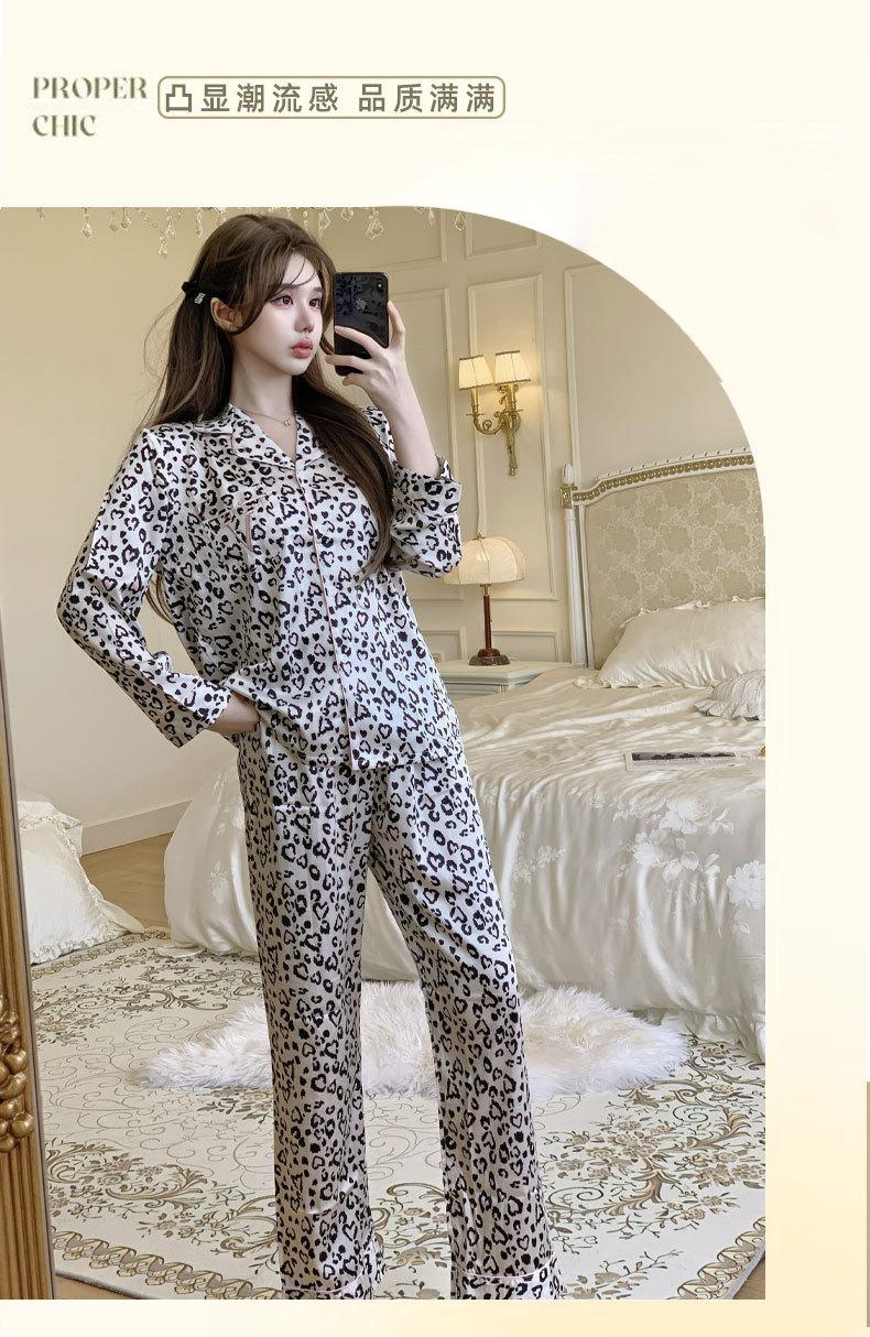 Pijama Nuevo de Seda de Hielo y Nieve 2025 para Mujer, Pantalones de Manga Larga, Estampado de Leopardo Rosa Corazón, de Alta Gama, Conjunto de Ropa para el Hogar