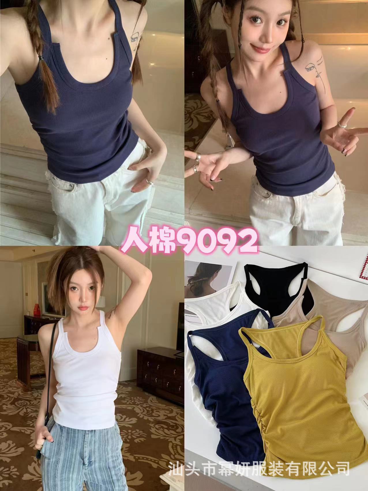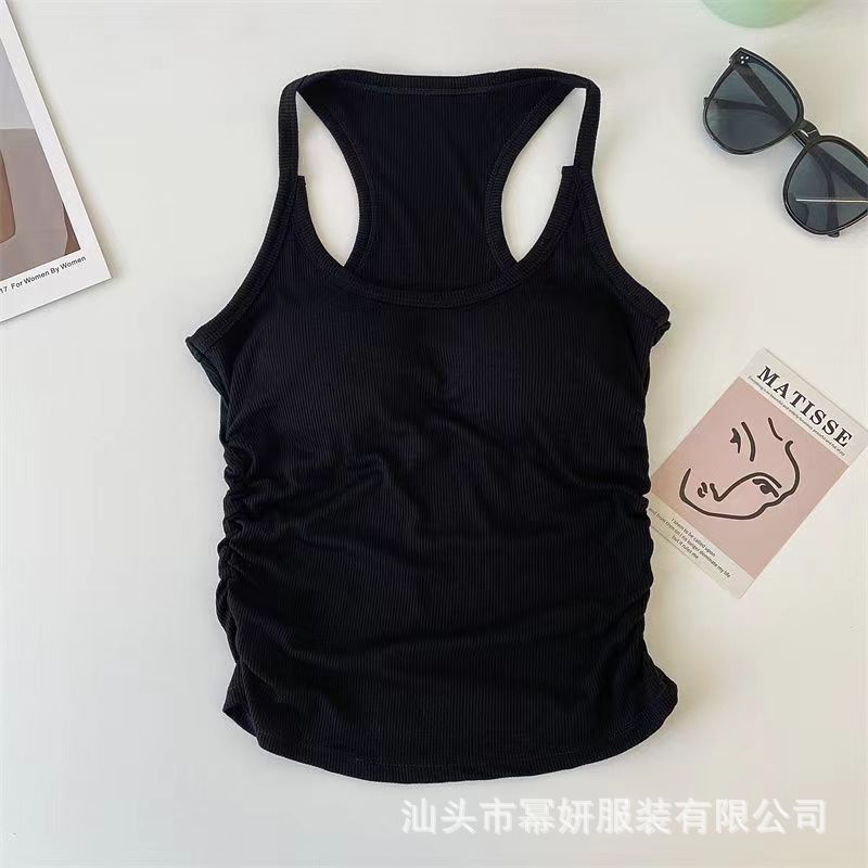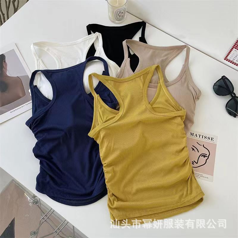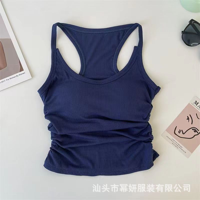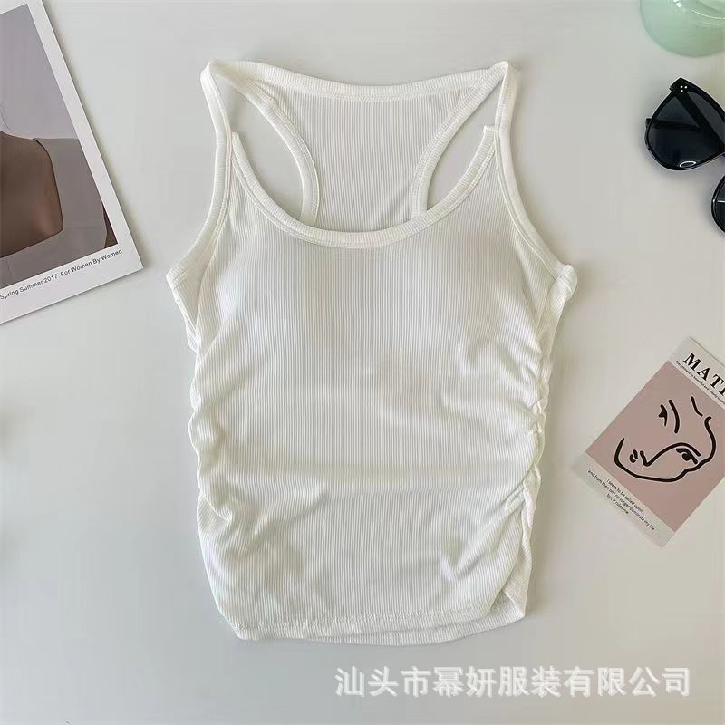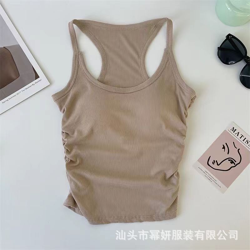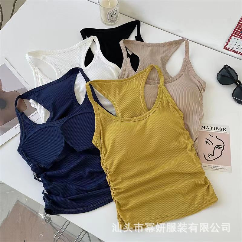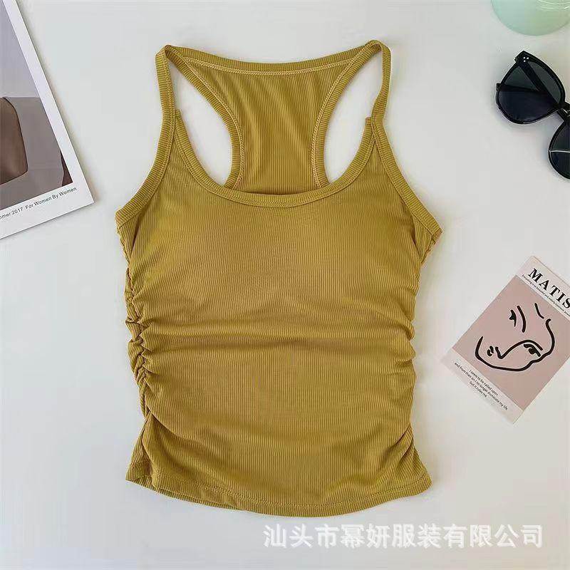 Algodón artificial chica guapa dulce cool ropa de trabajo camisola para mujer diseño plisado cintura lateral ropa interior con almohadilla para el pecho corte ajustado puro Top