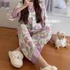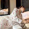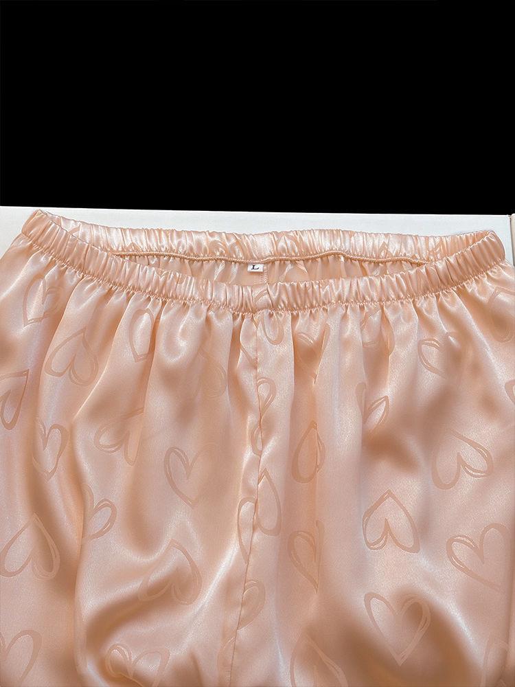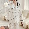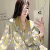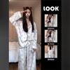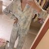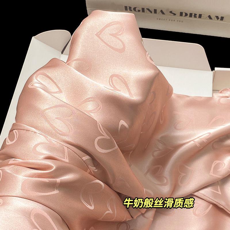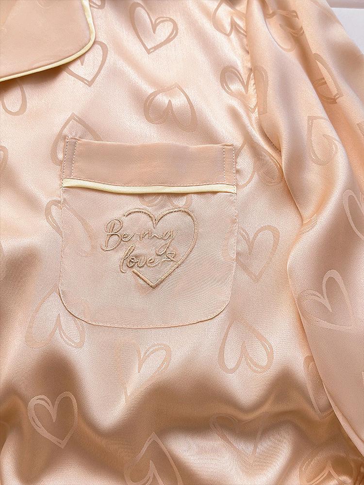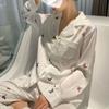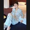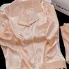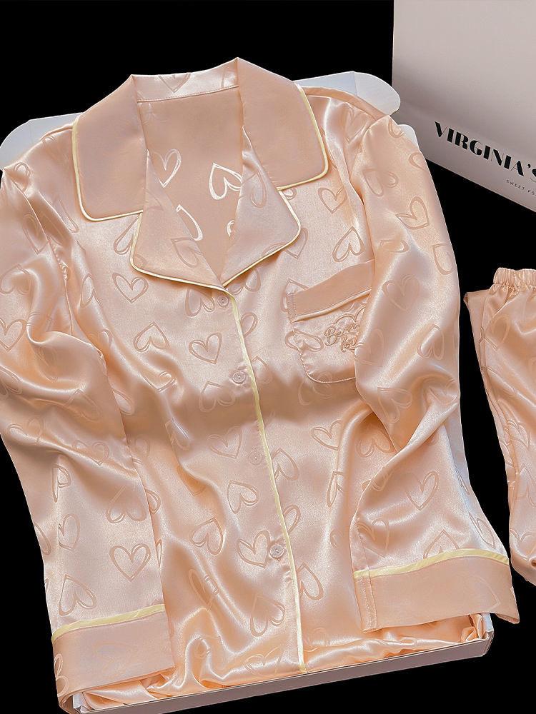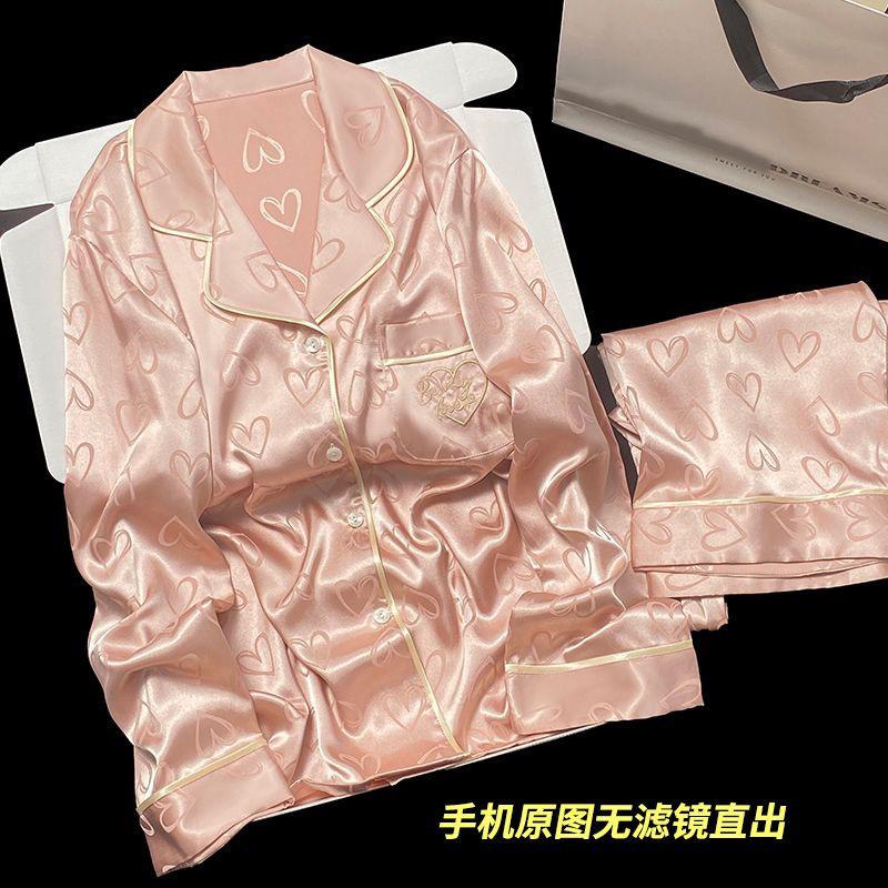 Pijama de Seda de Hielo Fina de Manga Larga de Alta Gama para Mujer para Primavera y Otoño en Verano, Conjunto de Ropa de Casa de Seda para Mujer Dulce y Lindo