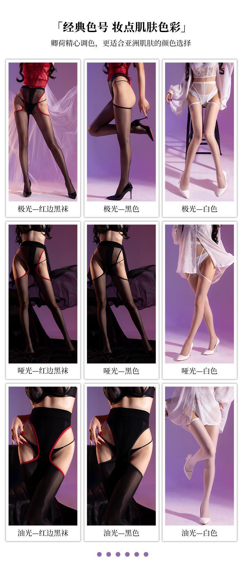 Nuevas Medias Panty Sexy Aurora Aceitosas, Tentación en Forma de T con Aberturas, Delgadas, Traslúcidas, Sexy Borde Rojo, Seda Negra t