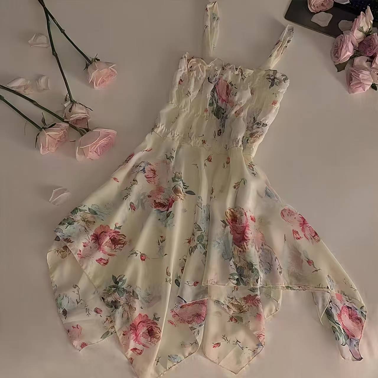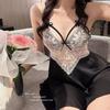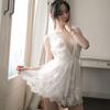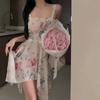 Lencería Sexy Francés Deseo Puro Floral Retro Falda con Tirantes Set de Pijama Sexy para Mujer Pechos Pequeños Tentación Vestido para Dormir