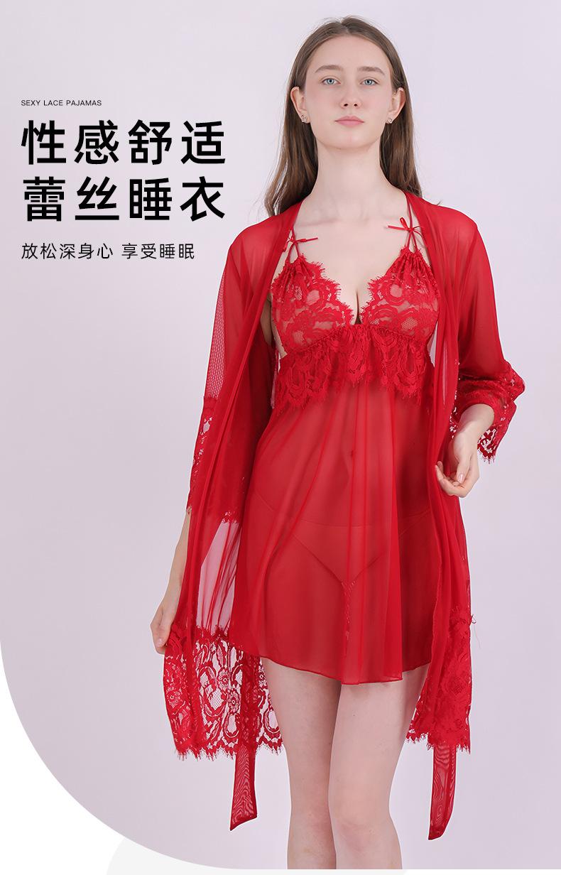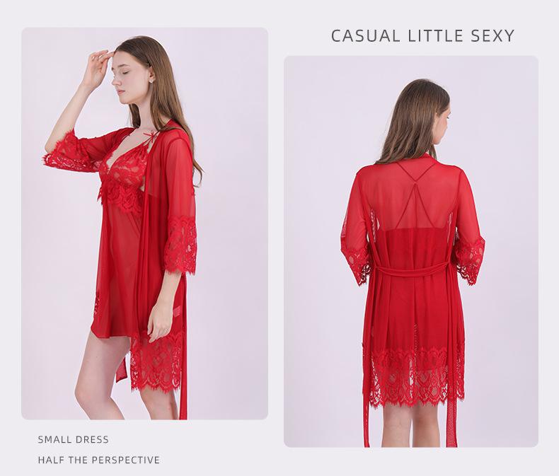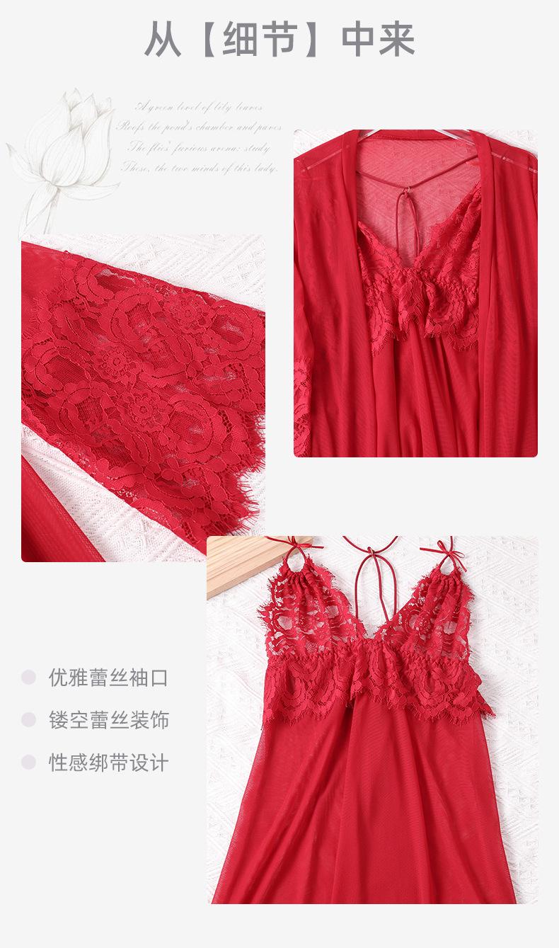 Camisón de Tirantes de Dos Piezas, Sexy Encaje Ropa de Casa para Mujer, de Alta Gama, Vestido Fino de Verano para Dormir