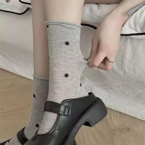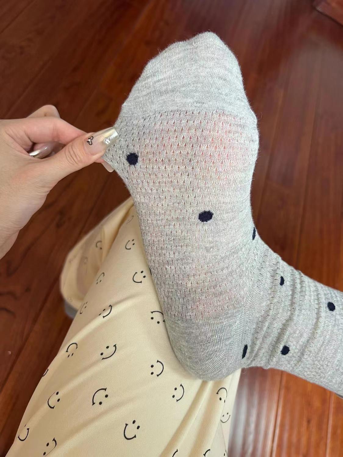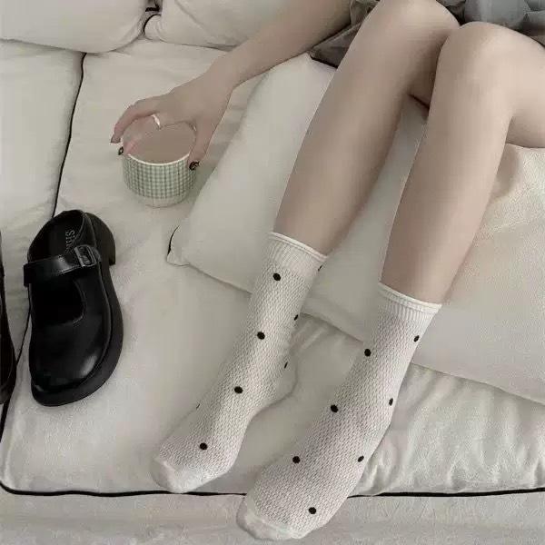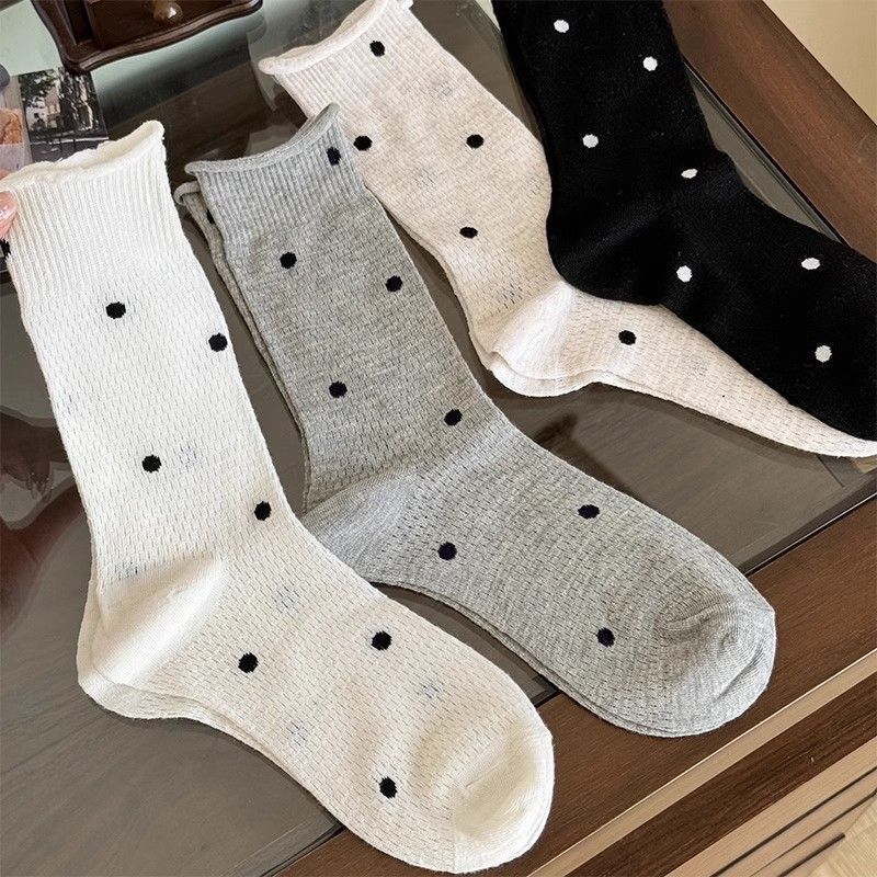 Calcetines de media caña de malla con lunares ondulados al por mayor primavera y verano ins viento crema delgados huecos Joker calcetines de algodón calcetines de rizo para mujer