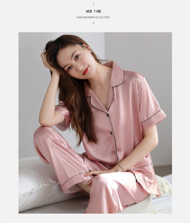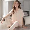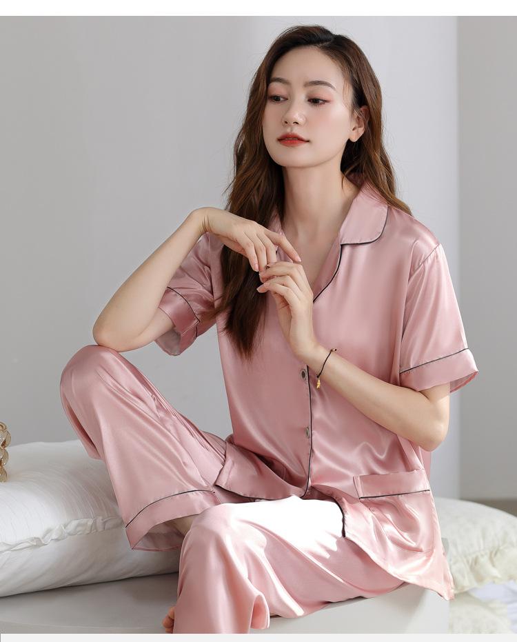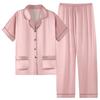 Pijama de Seda de Hielo para Mujer Verano Delgado Manga Corta Traje Cárdigan para Mujer Verano Simple Suelto Casual Talla Grande Ropa para el Hogar