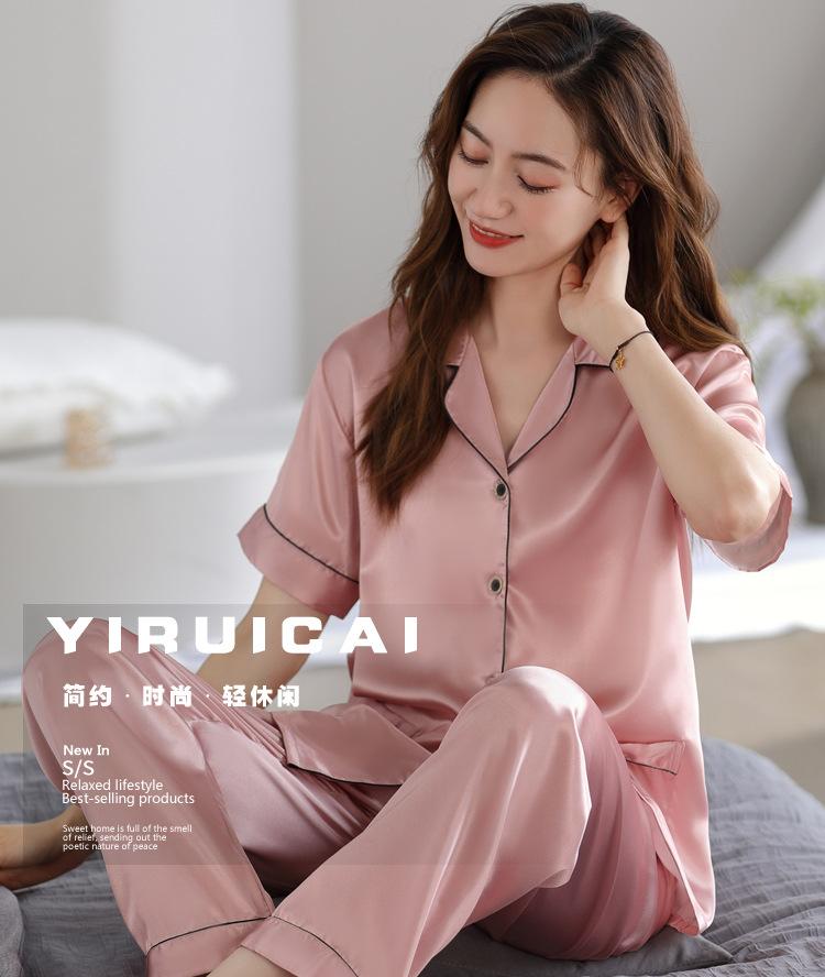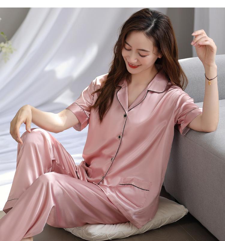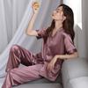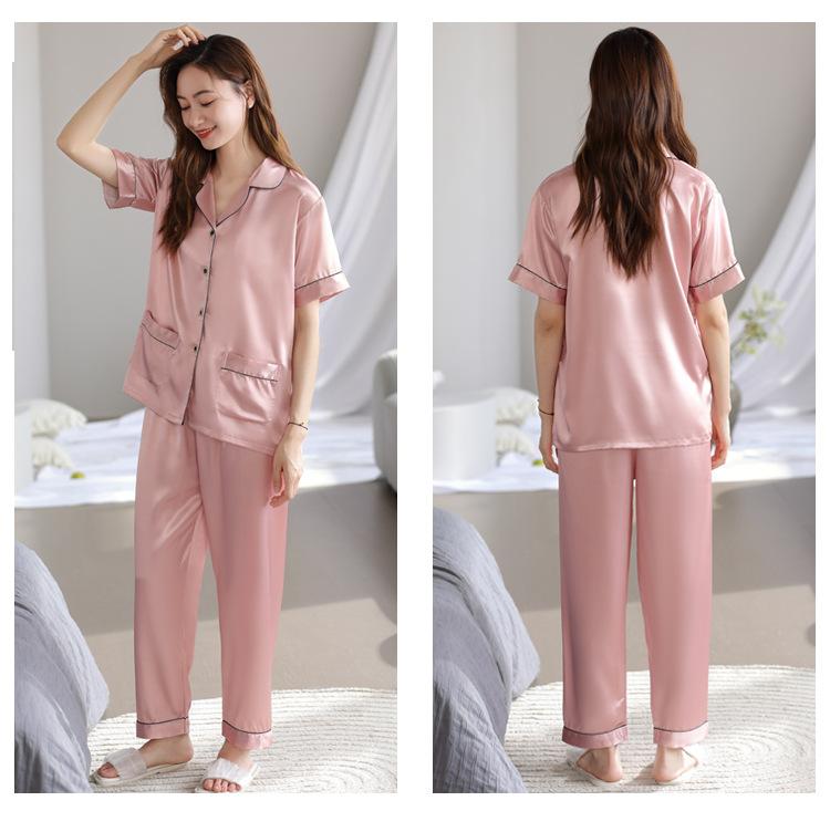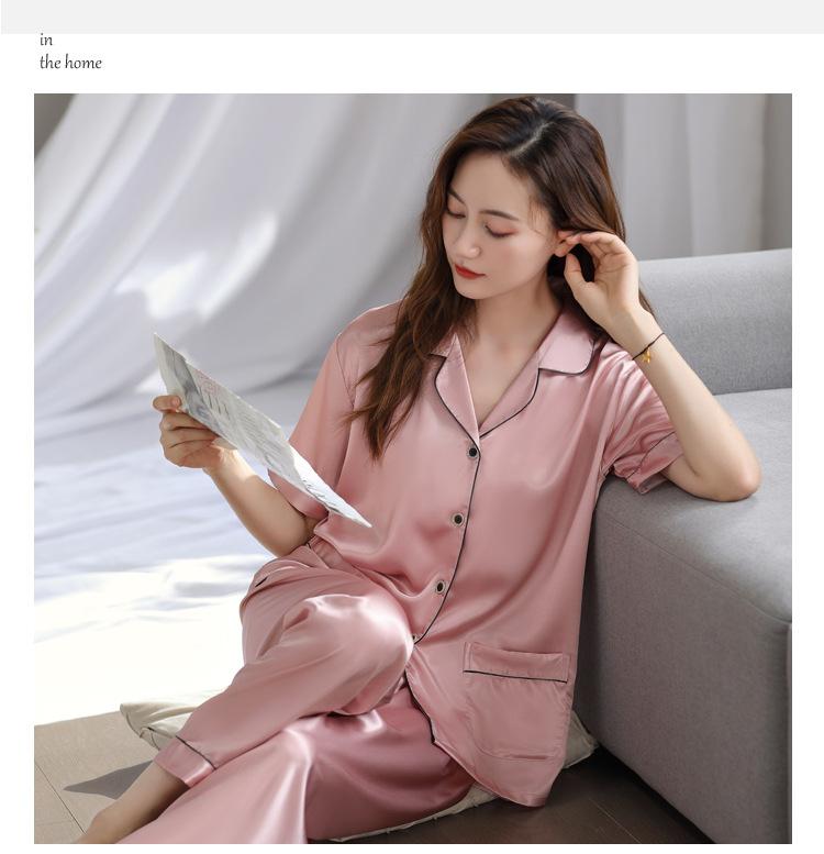 Ice silk pajamas women's summer short-sleeved cropped pants