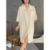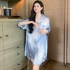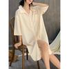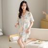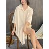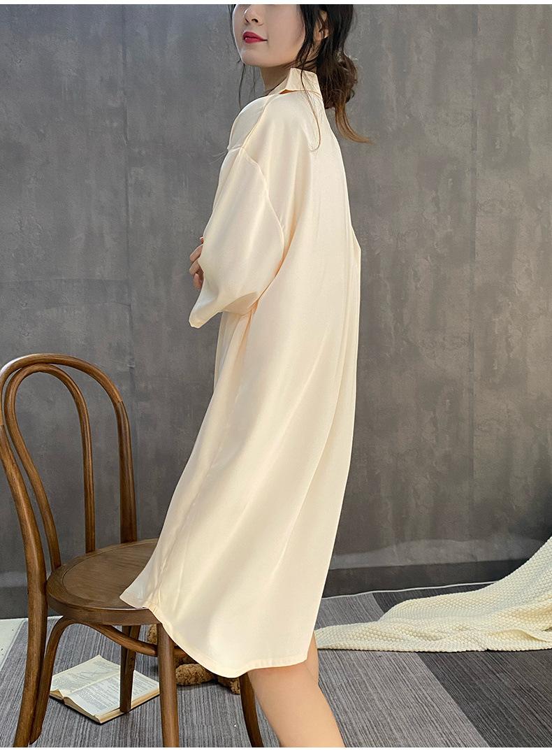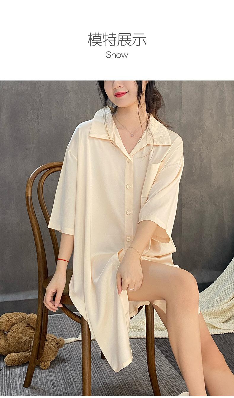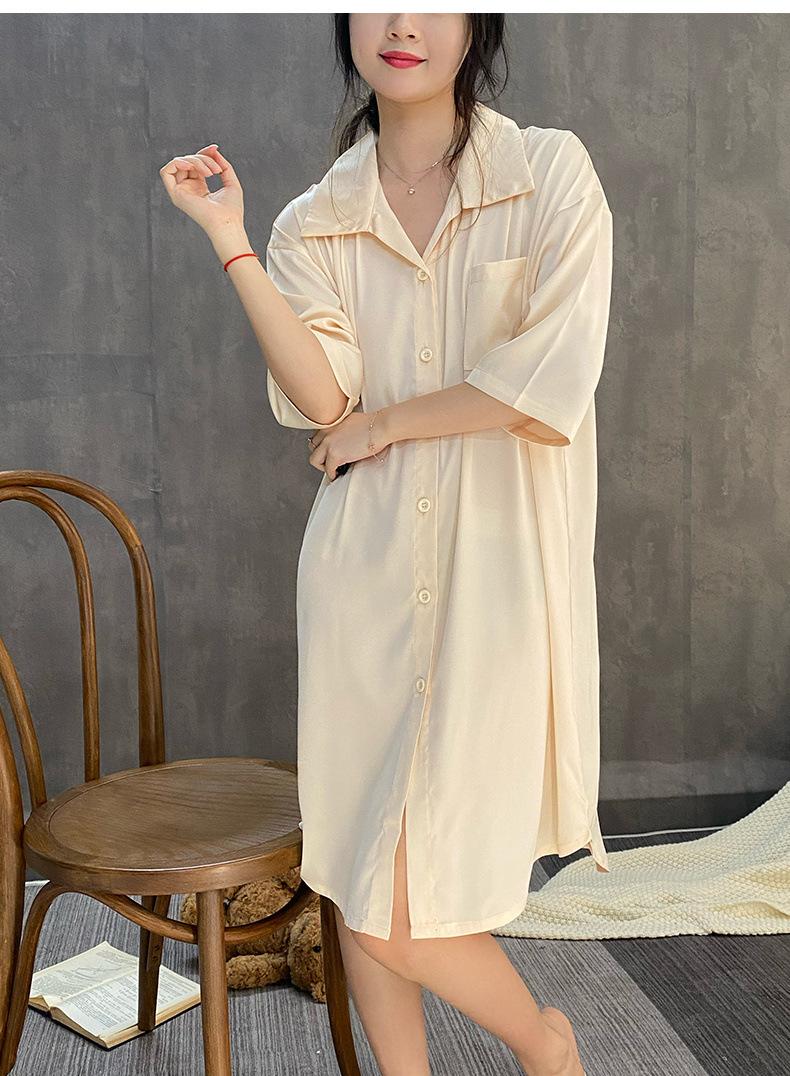 2025 Nuevo Camisón de Seda de Hielo para Mujer Verano Manga Corta Cárdigan Largo Medio Pijama de Seda Fino Sexy Ropa para el Hogar
