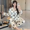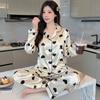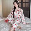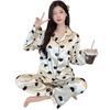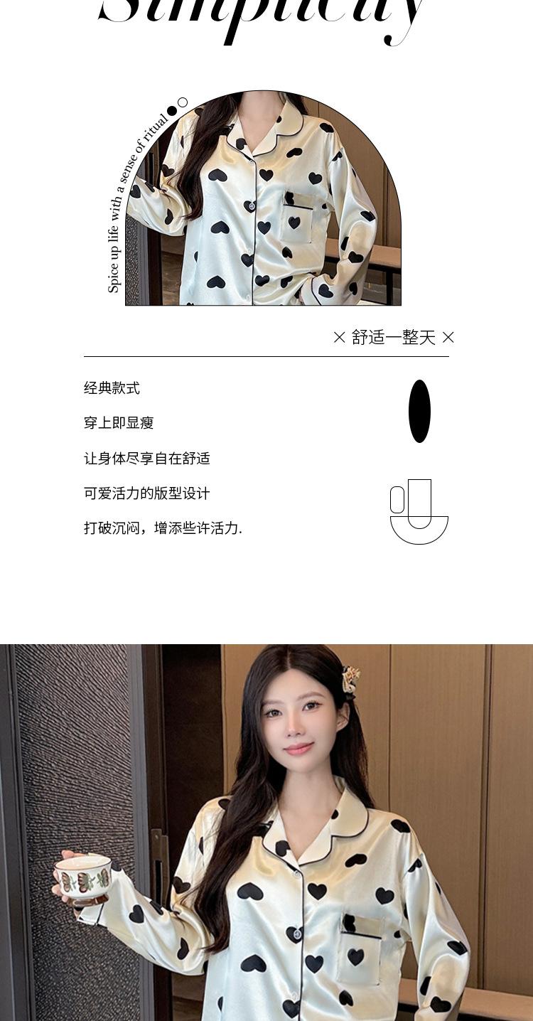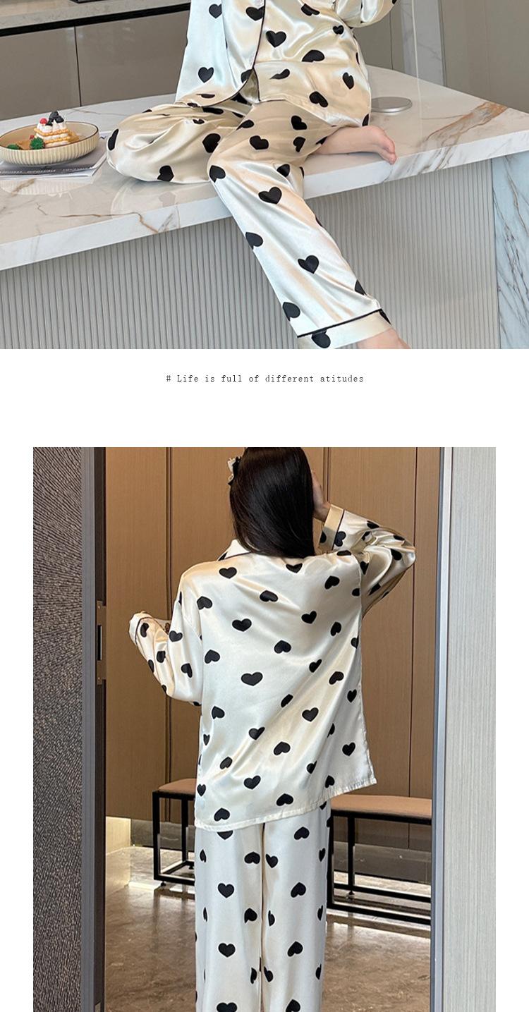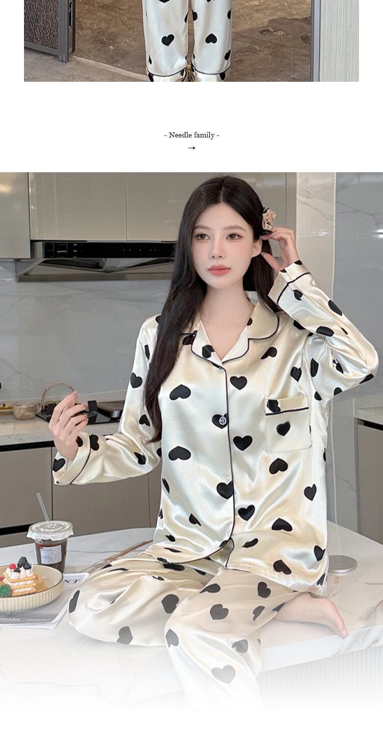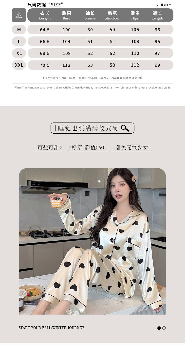 Pijamas de Seda de Hielo para Mujer Verano Nuevo Estilo Corazón Simple Ins Alta Gama Primavera y Otoño Manga Larga Conjunto de Ropa para el Hogar Venta al por Mayor
