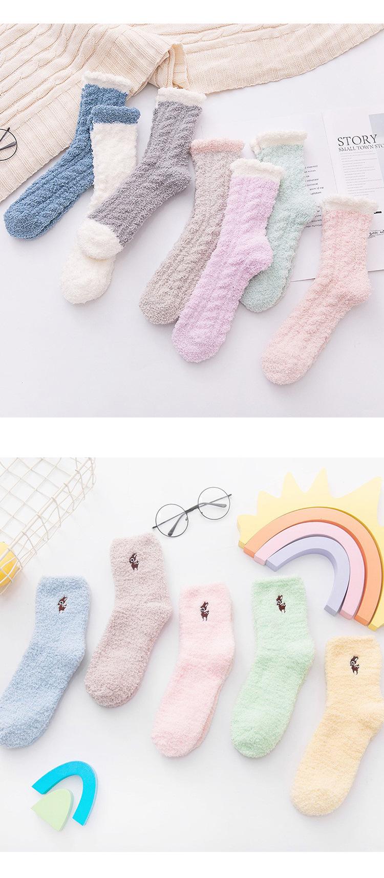 Calcetines de Terciopelo Coral de Otoño e Invierno para Niñas, Calcetines para Dormir, Calcetines de Piso, Calcetines de Media Caña, Calcetines de Medio Terciopelo, Procesamiento al Por Mayor y Personalización