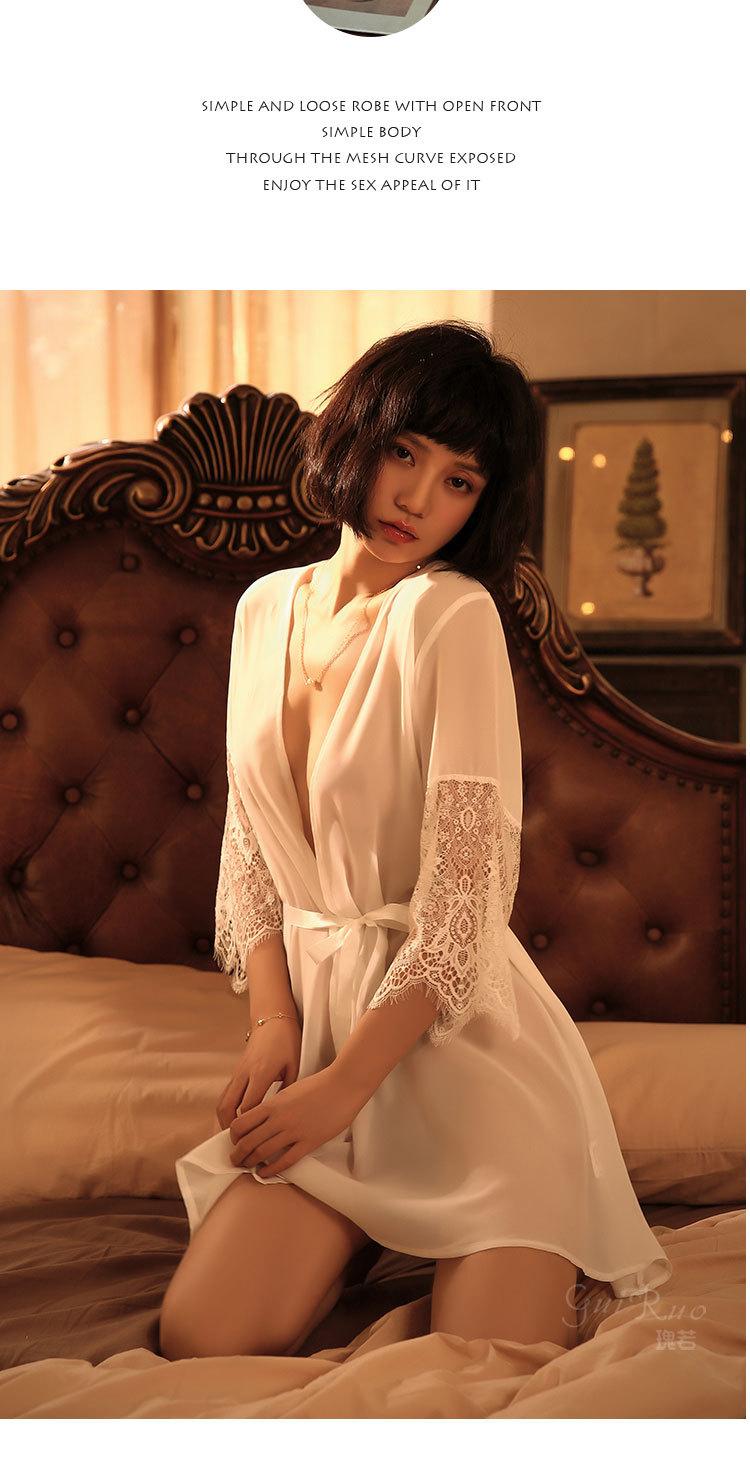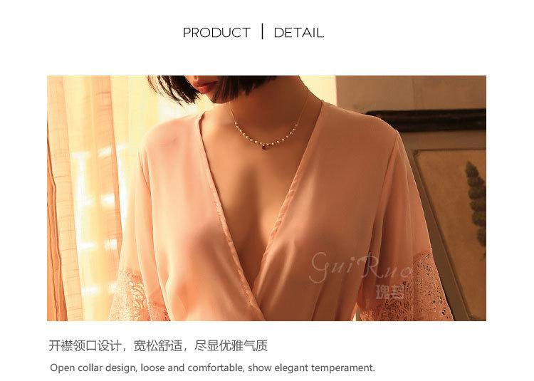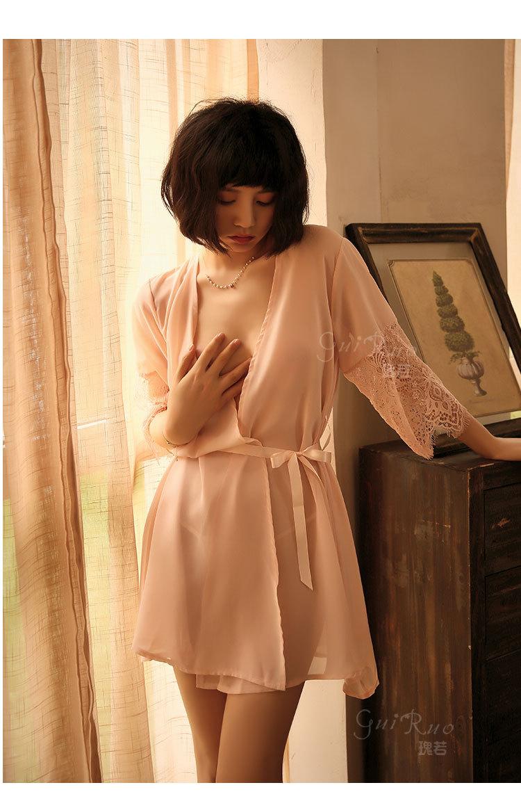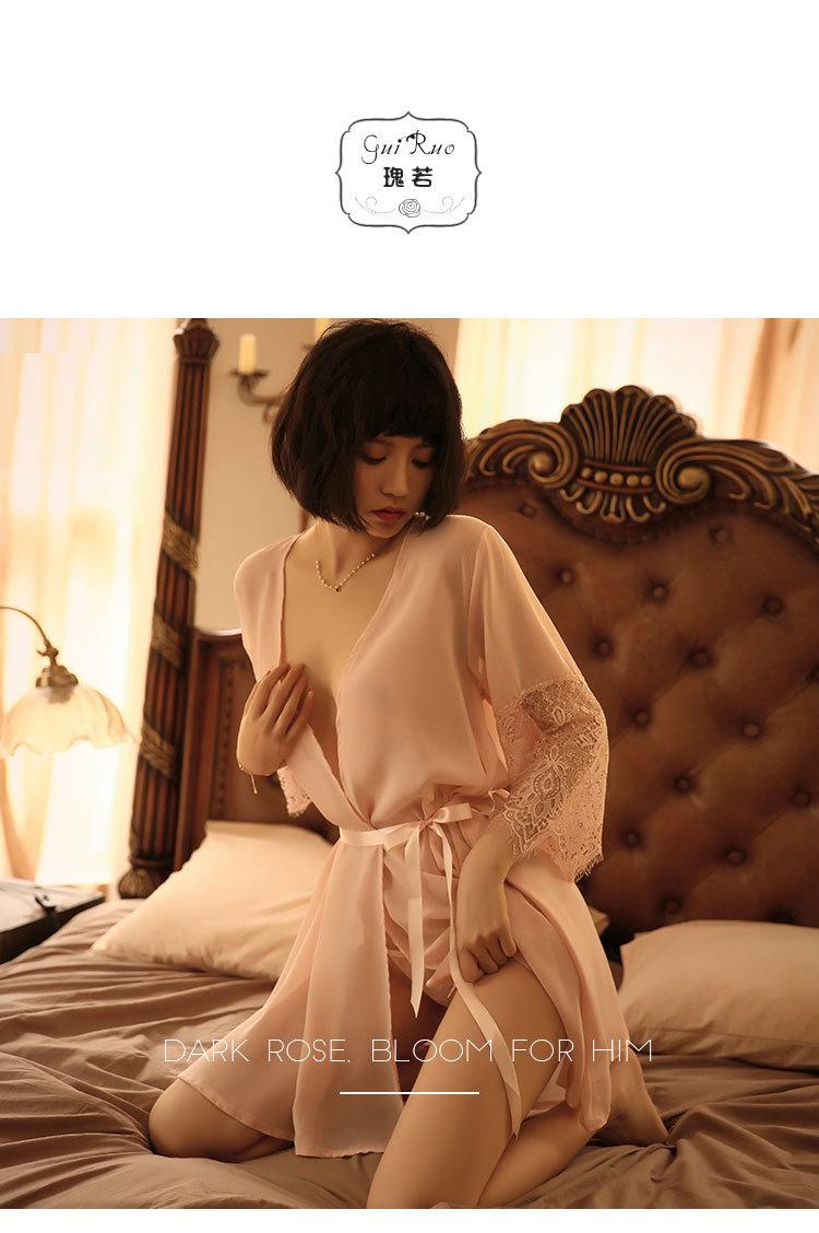 Marca Guiruo ropa interior sexy dulce perspectiva gasa puro sexy profundo V cárdigan encaje traje camisón 396#