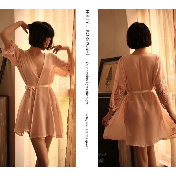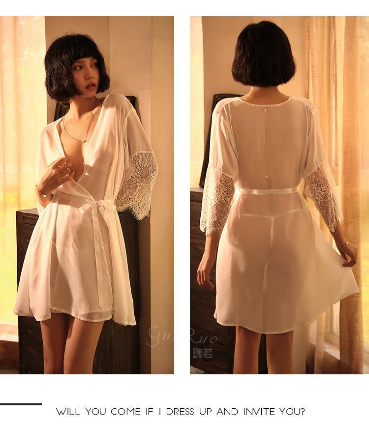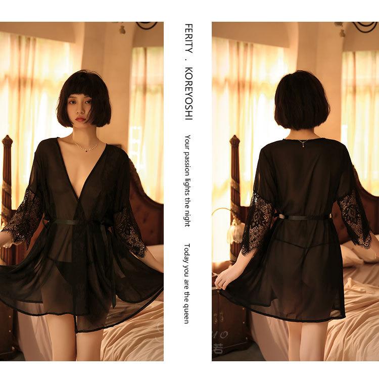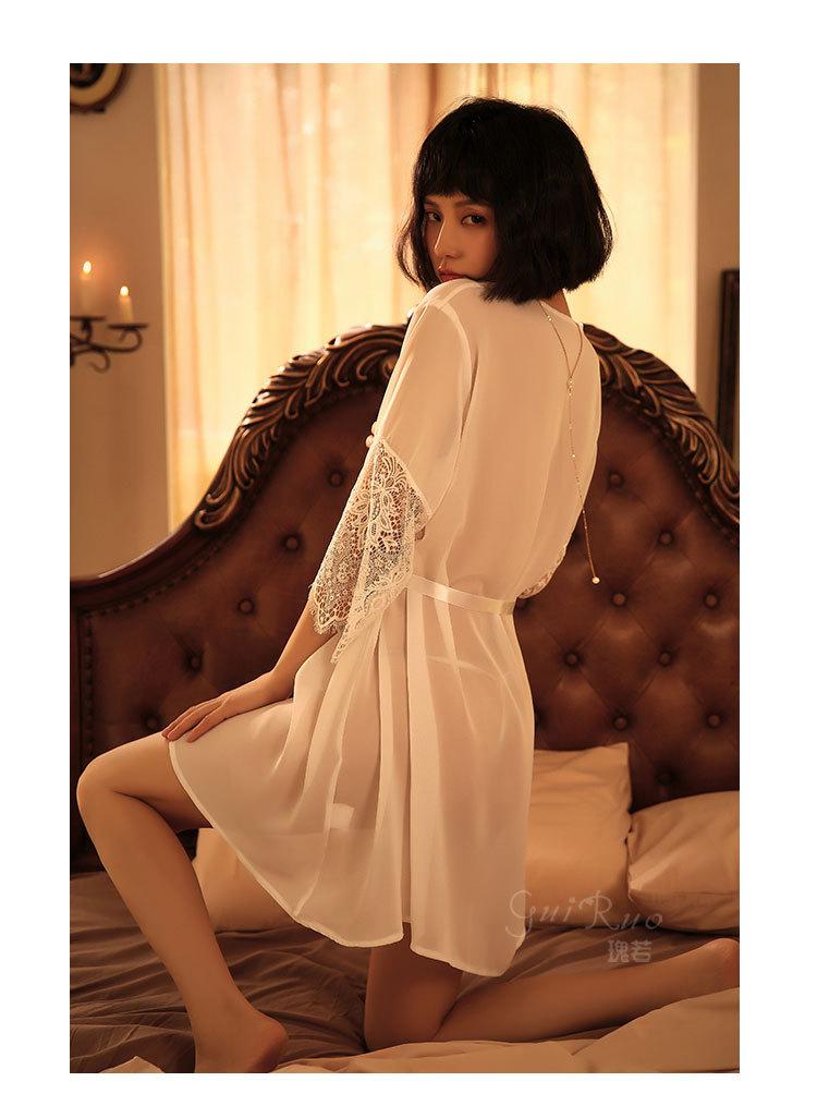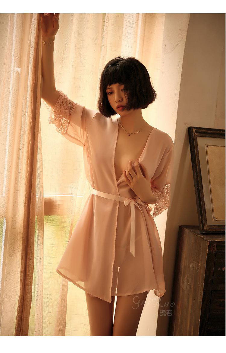 Marca Guiruo ropa interior sexy dulce perspectiva gasa puro sexy profundo V cárdigan encaje traje camisón 396#