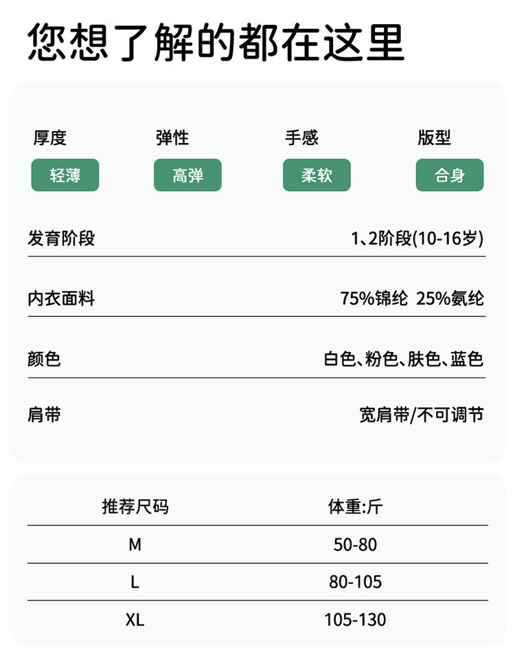 Íntimos sin costuras, suaves y cómodos para niñas durante el período de desarrollo, ligeros y transpirables, anti-bultos, de alta elasticidad y no sofocantes