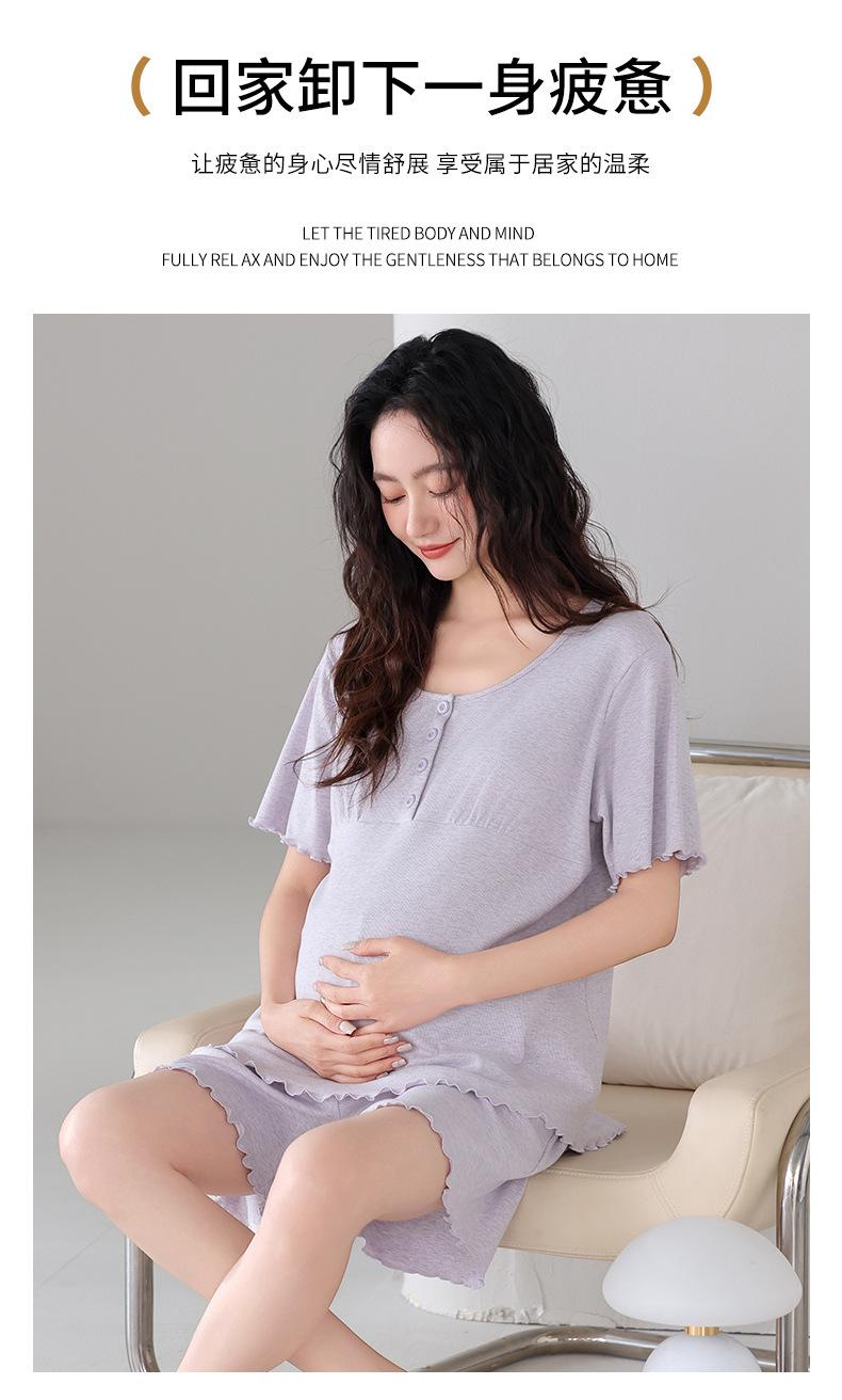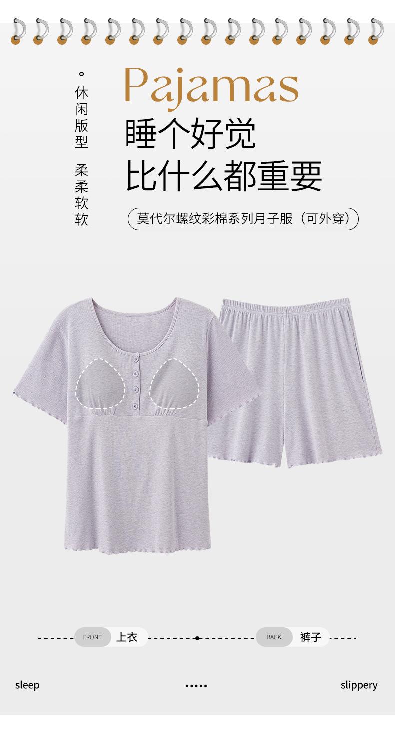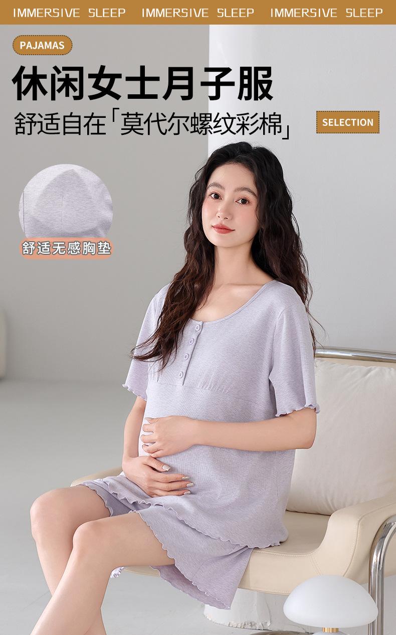 Feliz Luna 2025 Hilo de Algodón Modal de Color con Almohadilla en el Pecho Traje Lunar Verano Fresco Manga Corta Mujeres Embarazadas Traje de Lactancia