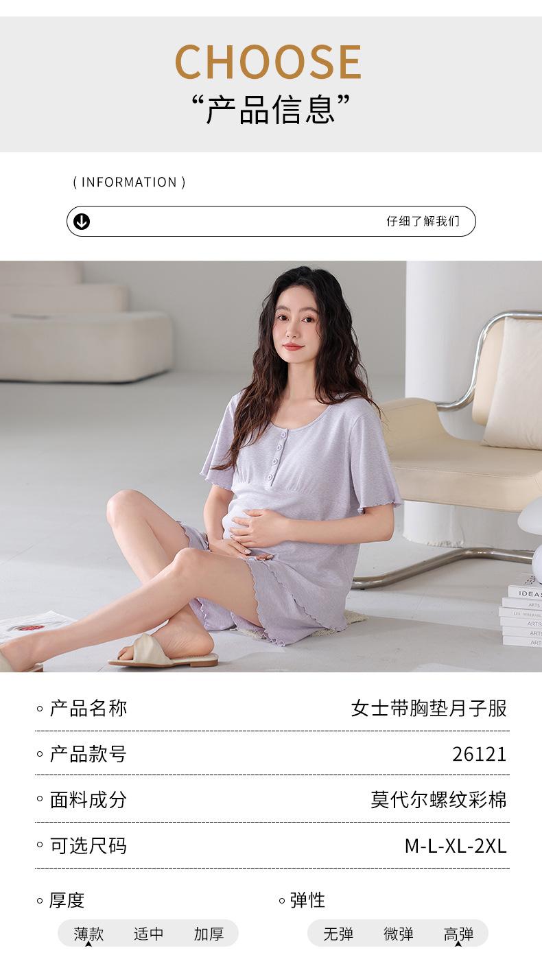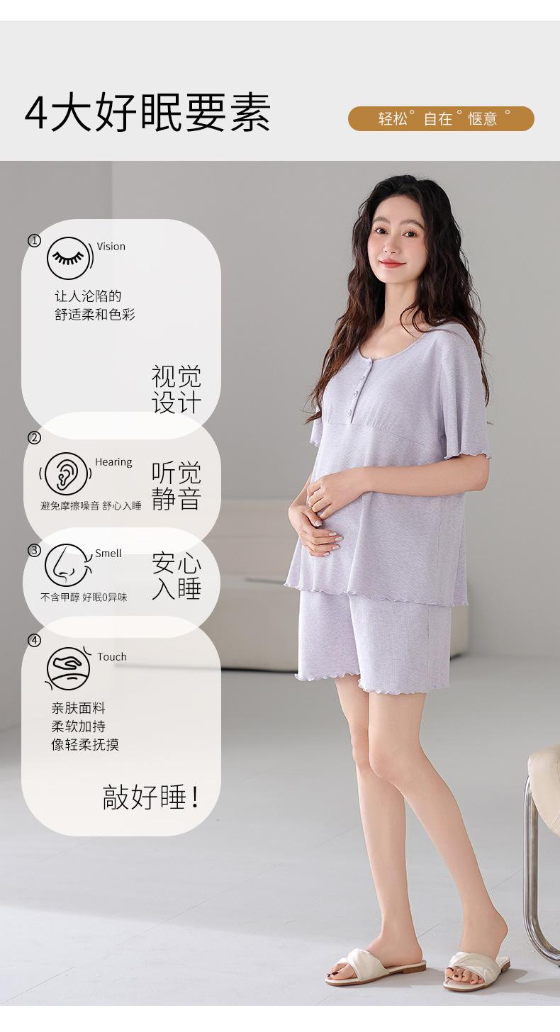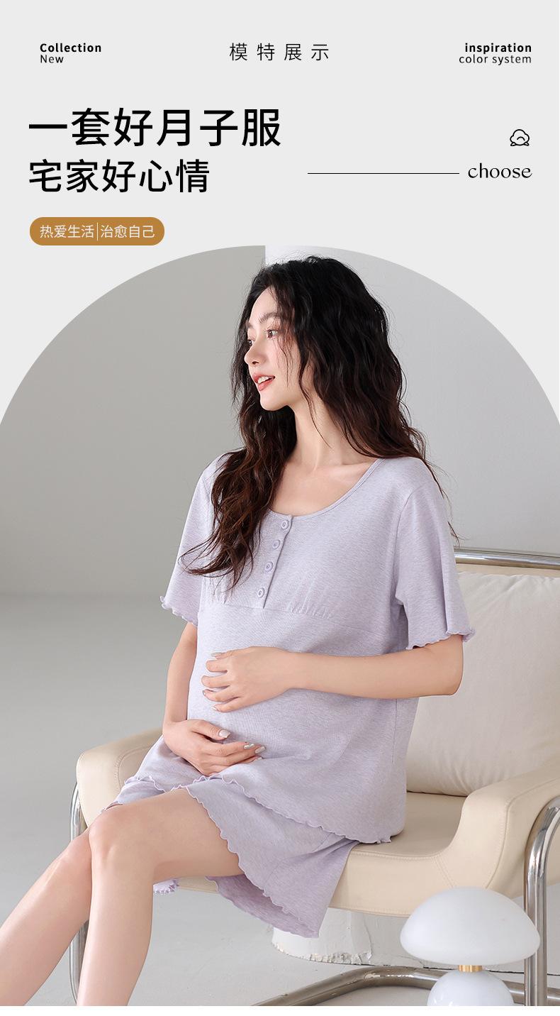 Feliz Luna 2025 Hilo de Algodón Modal de Color con Almohadilla en el Pecho Traje Lunar Verano Fresco Manga Corta Mujeres Embarazadas Traje de Lactancia