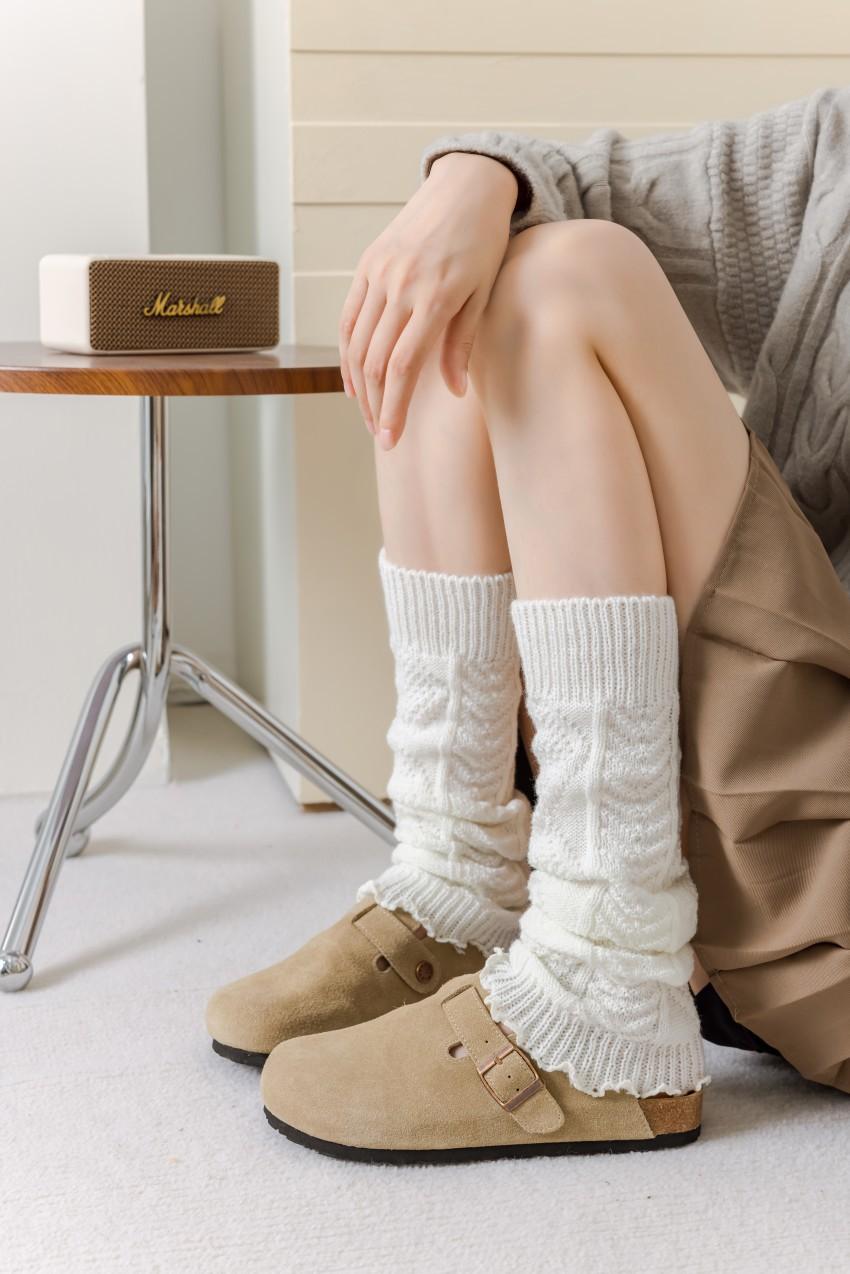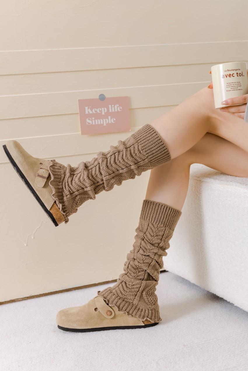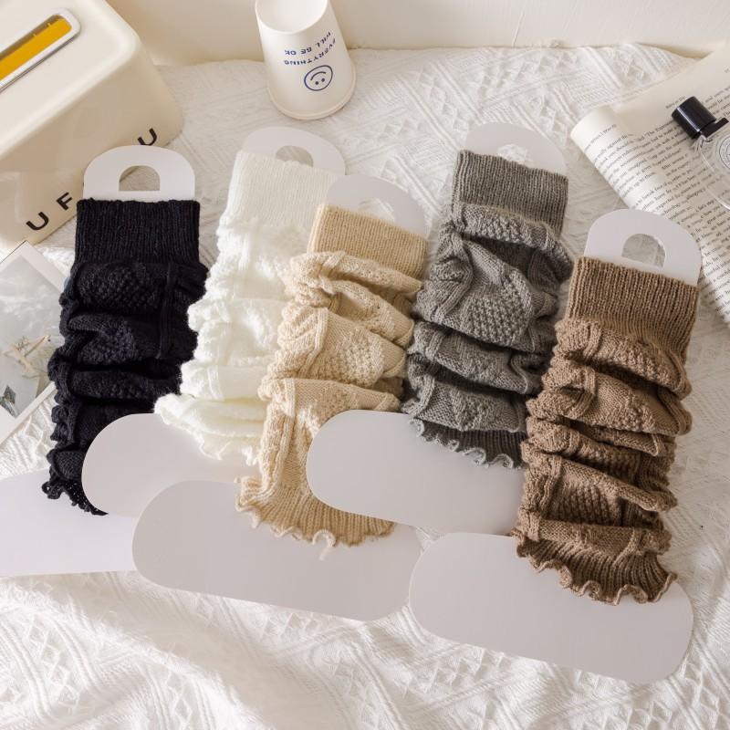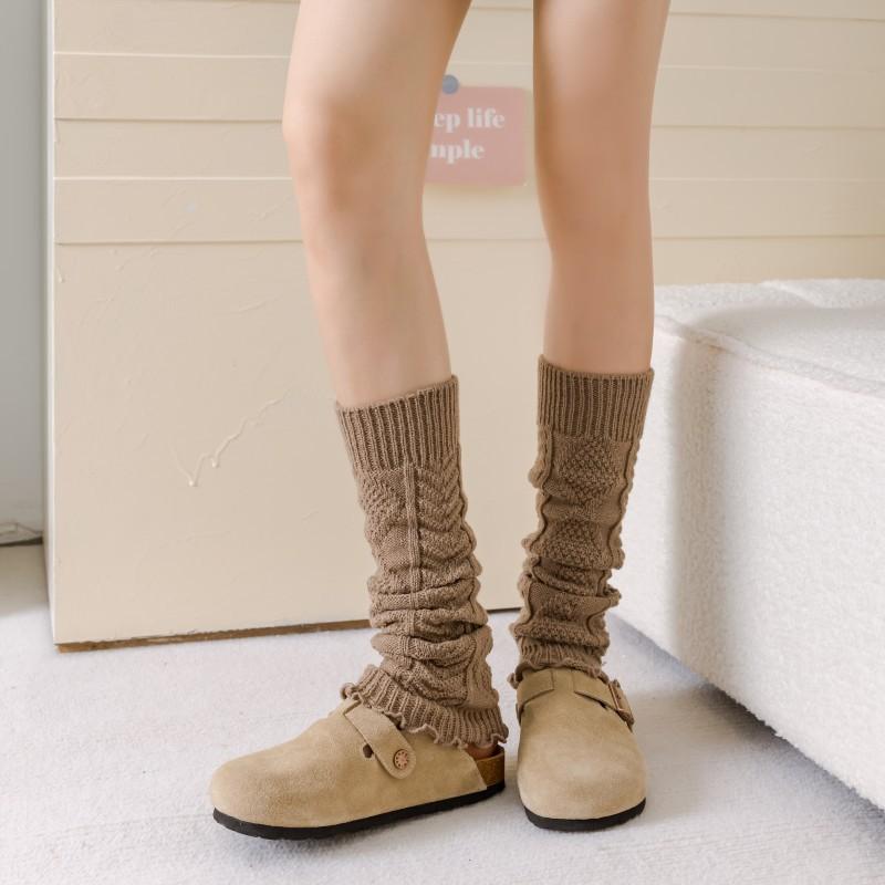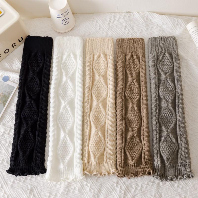 Calcetines Cubrepiernas Tejidos con Rayas de Diamante para Mujer Estilo Coreano Gruesos de Encaje Vintage Calcetines de Pila Color Sólido Combinan con Todo Calcetines para Piernas