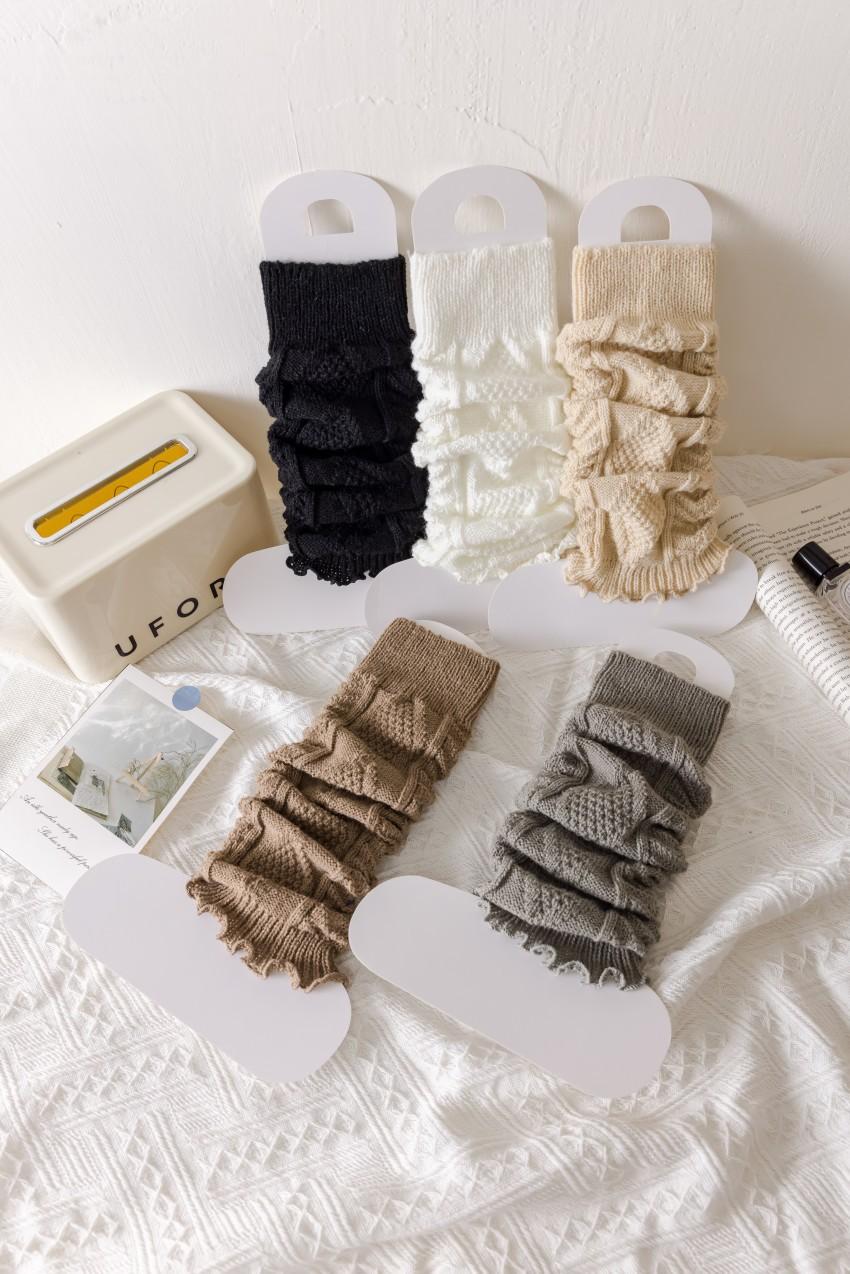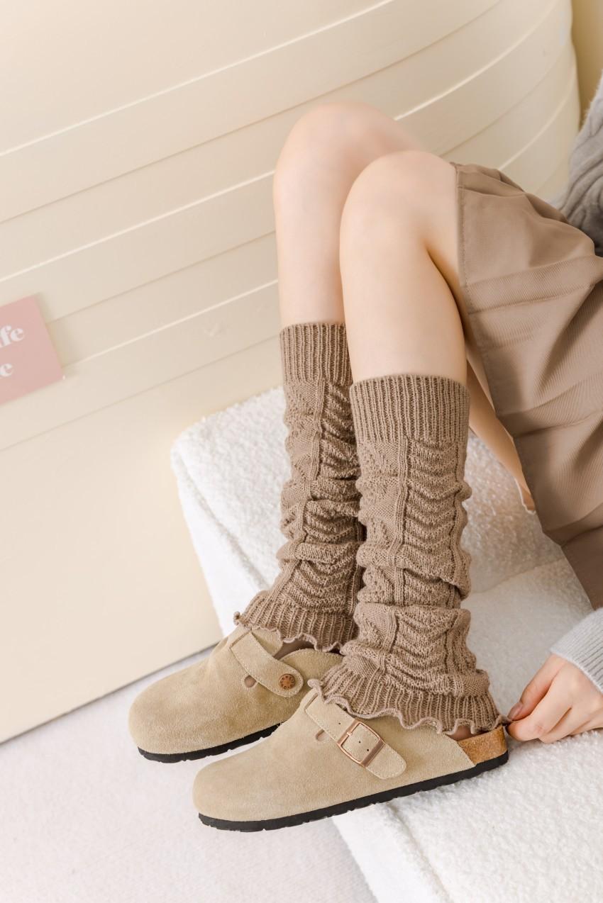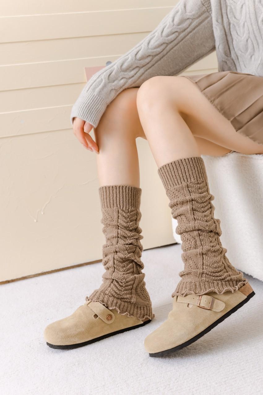 Calcetines Cubrepiernas Tejidos con Rayas de Diamante para Mujer Estilo Coreano Gruesos de Encaje Vintage Calcetines de Pila Color Sólido Combinan con Todo Calcetines para Piernas
