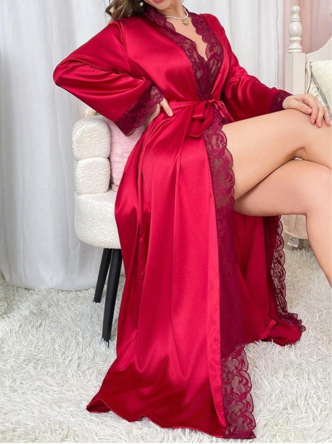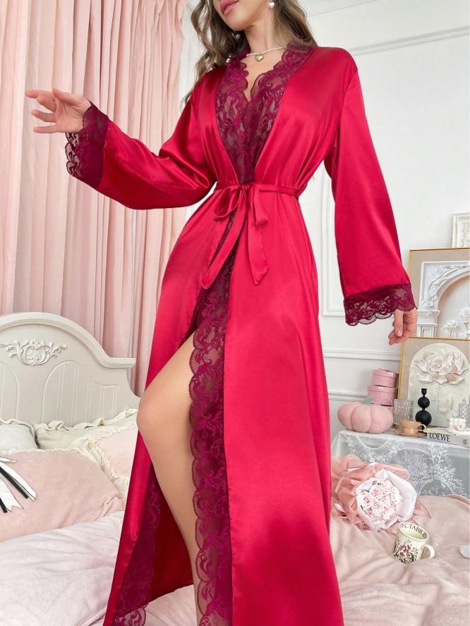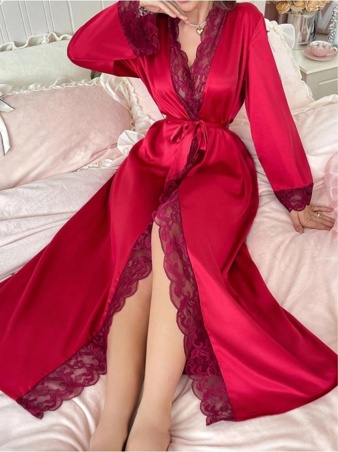 Camisón Bata Sexy Sexy Bata de Baño Bata de Vestir para Novia Pijama Ropa para el Hogar de Seda Imitación para Comercio Exterior Europeo y Americano Transfronterizo