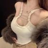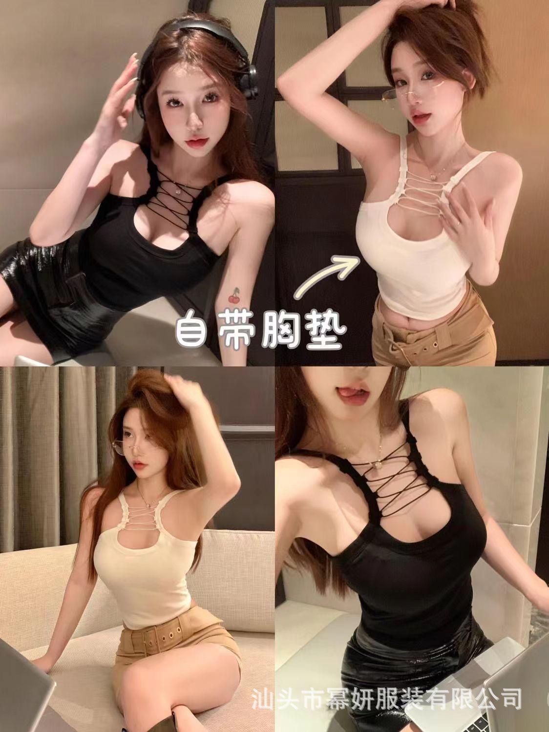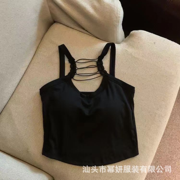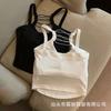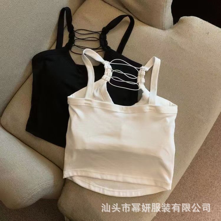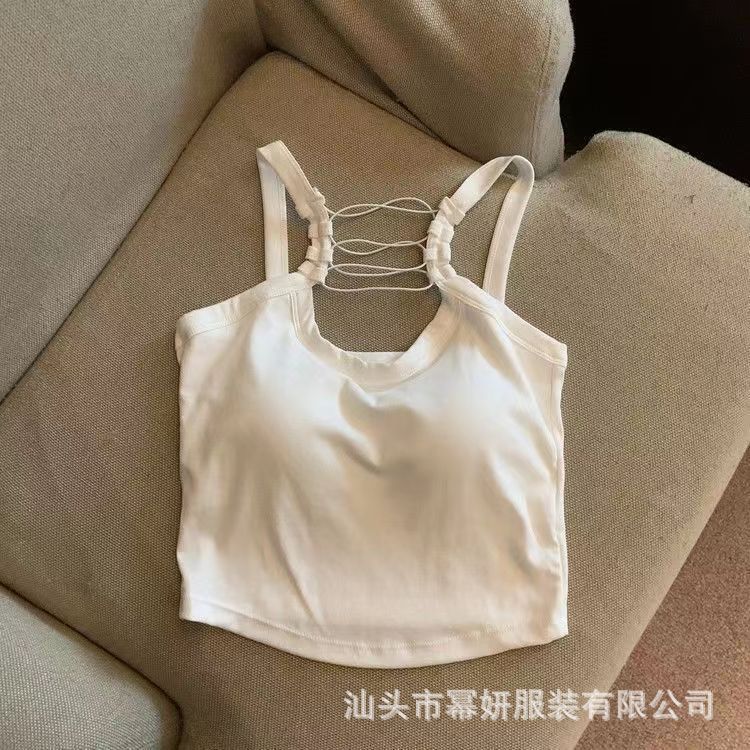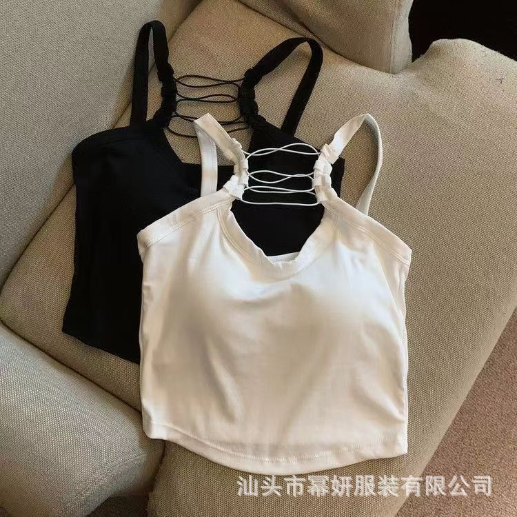 Algodón Puro Sexy Escote Cruzado Tirantes Chaleco Pequeño Top Interior sin Mangas para Mujer con Almohadilla en el Pecho