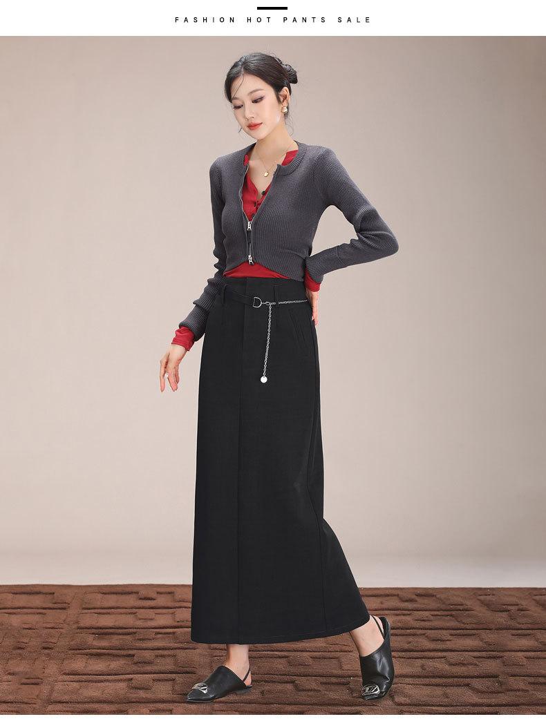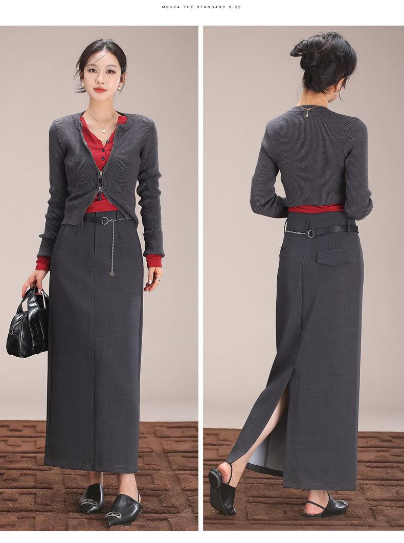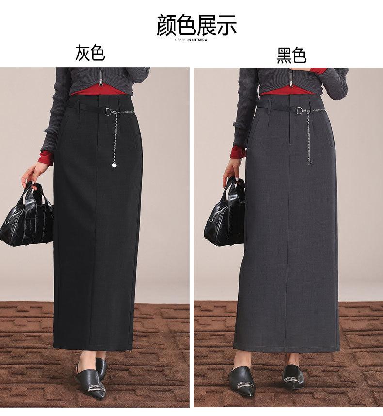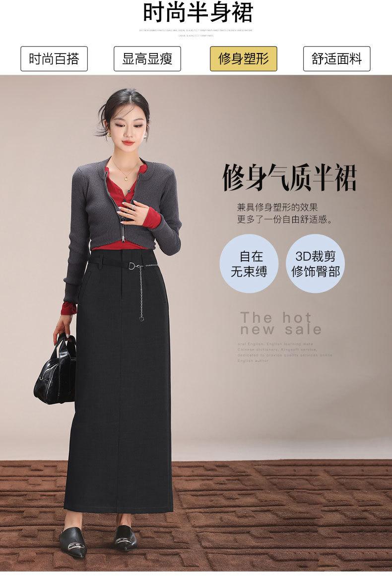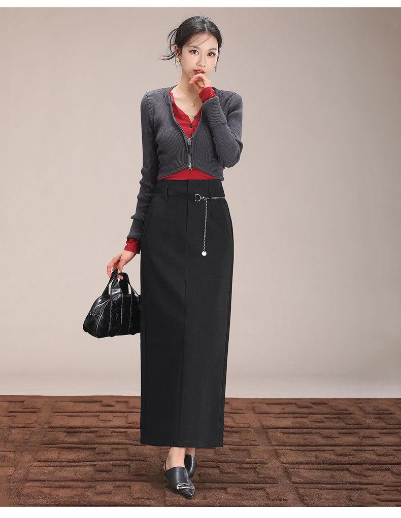 Falda Recta de Moda para Mujer Primavera y Otoño 2025 Nueva Cintura Alta para Oficina Falda con Abertura Sencilla Elegante Ajustada Falda Larga