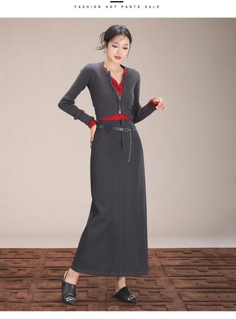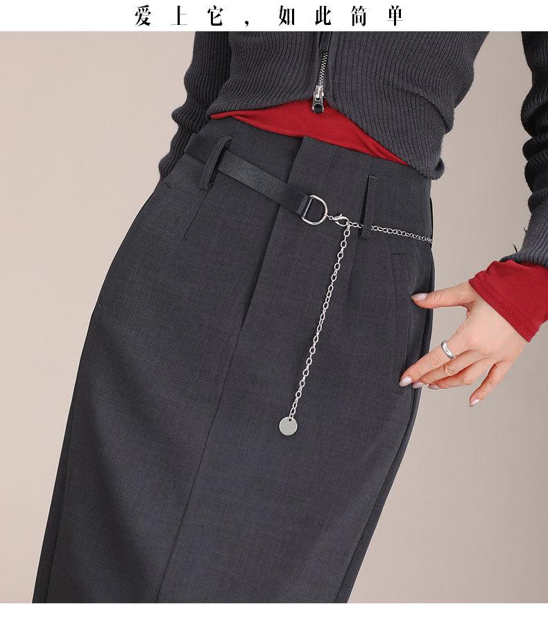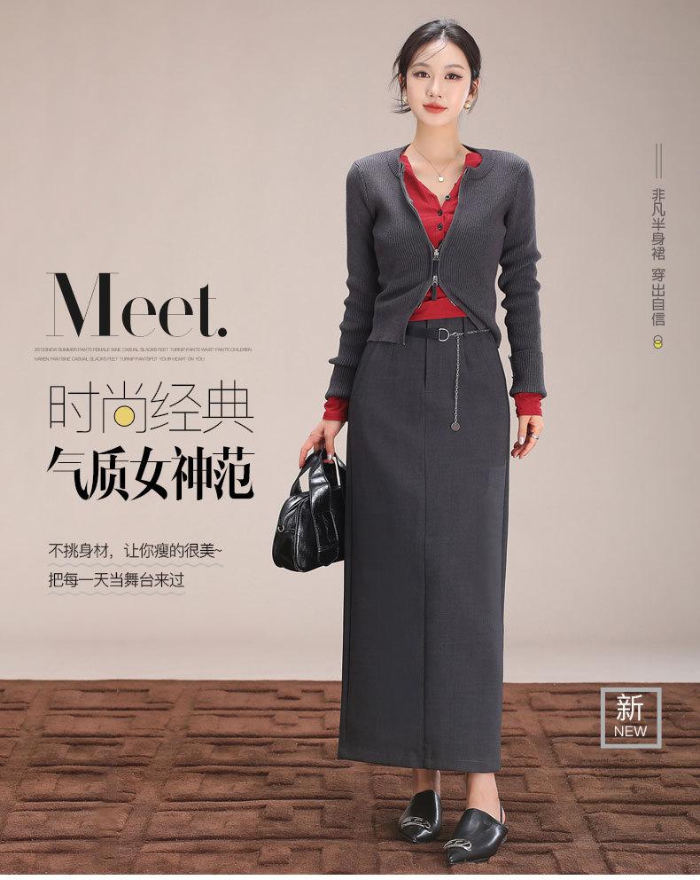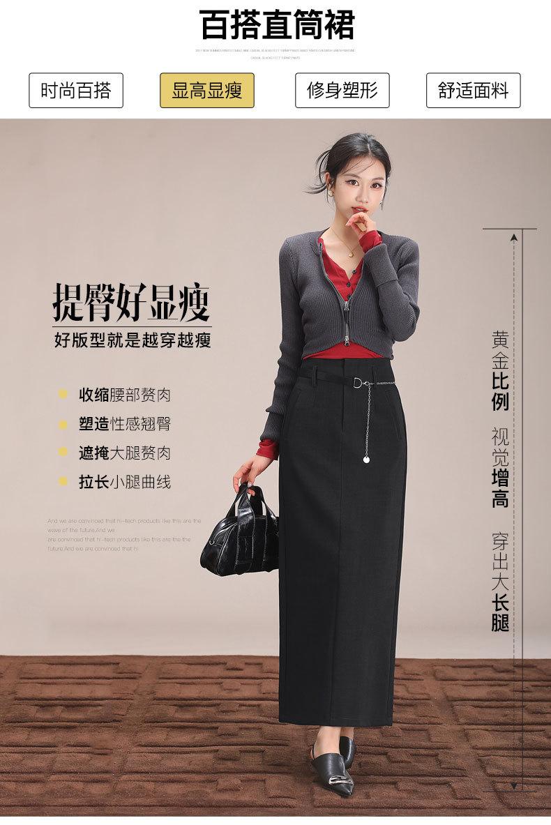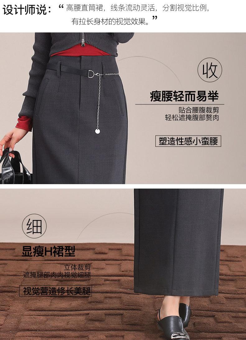 Falda Recta de Moda para Mujer Primavera y Otoño 2025 Nueva Cintura Alta para Oficina Falda con Abertura Sencilla Elegante Ajustada Falda Larga