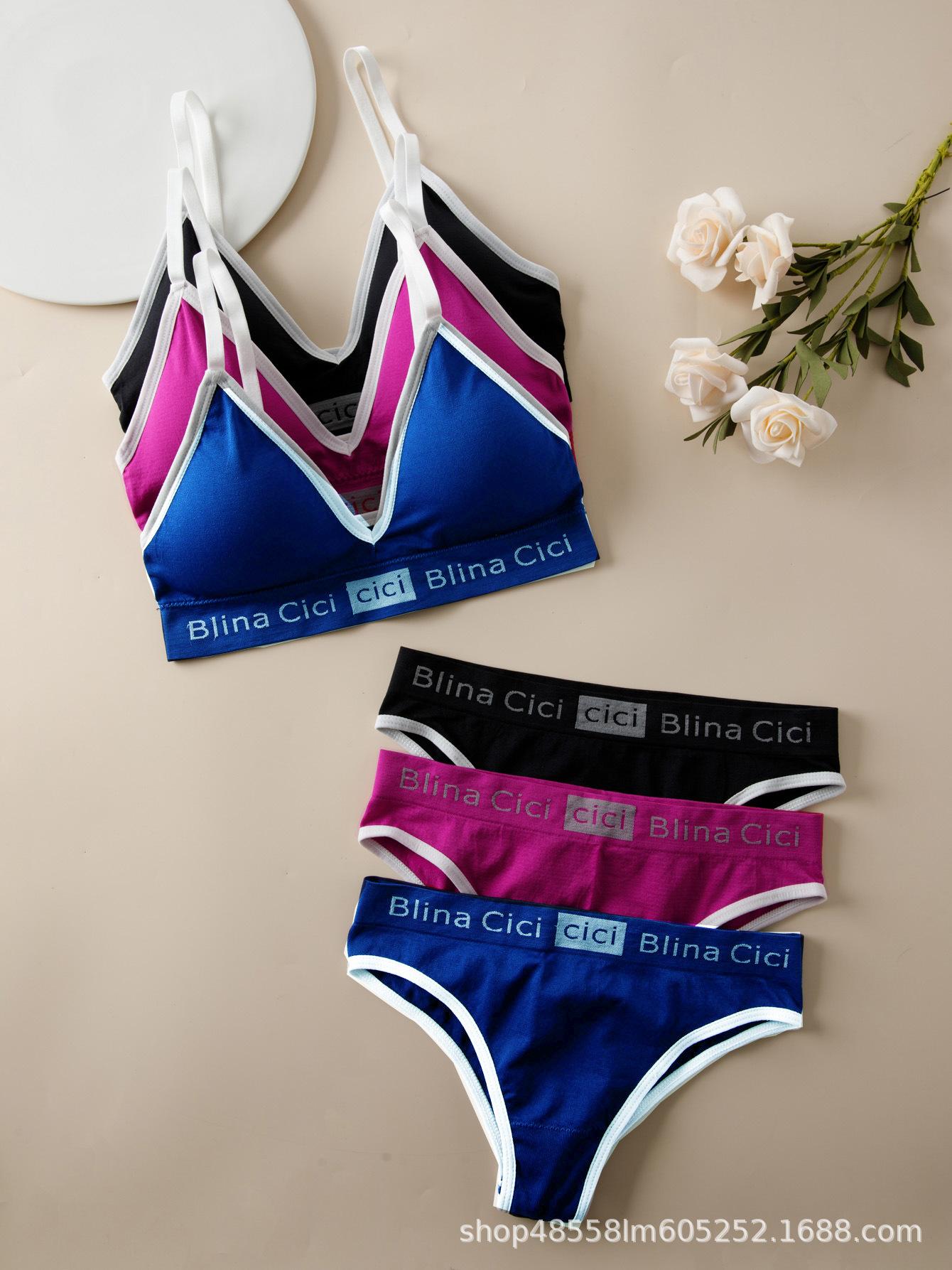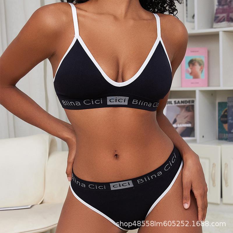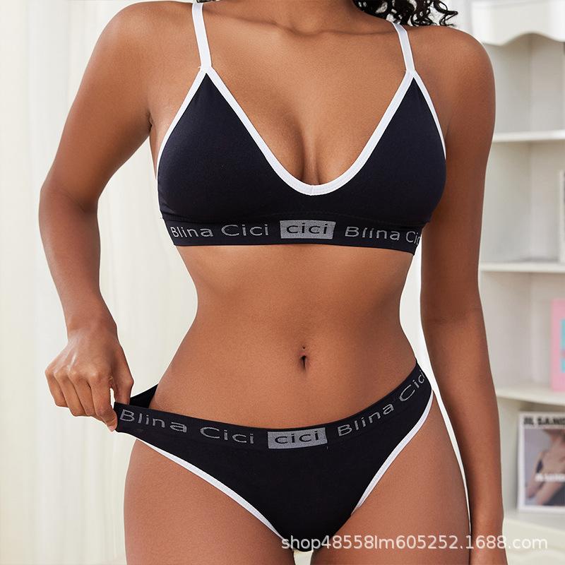 Conjunto de Sujetador Deportivo Sexy Europeo y Americano Personalizado Transfronterizo, Lencería Temu Estilo Francés Cómoda y Transpirable, Amazon Push-Up