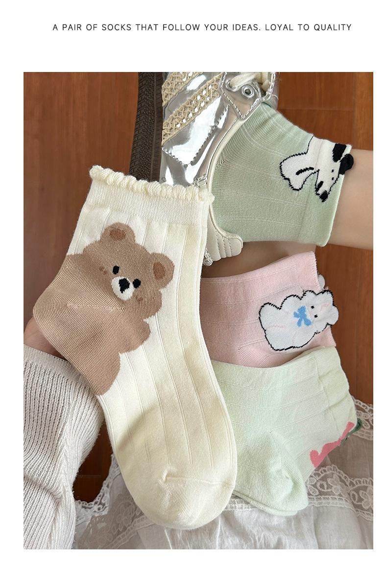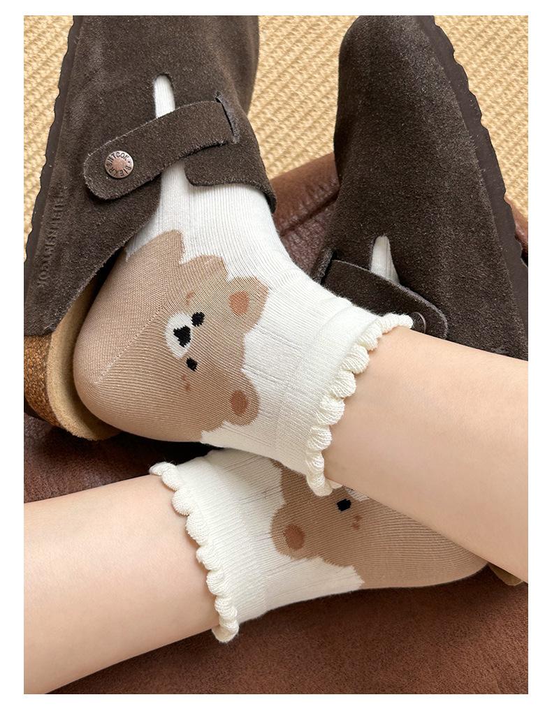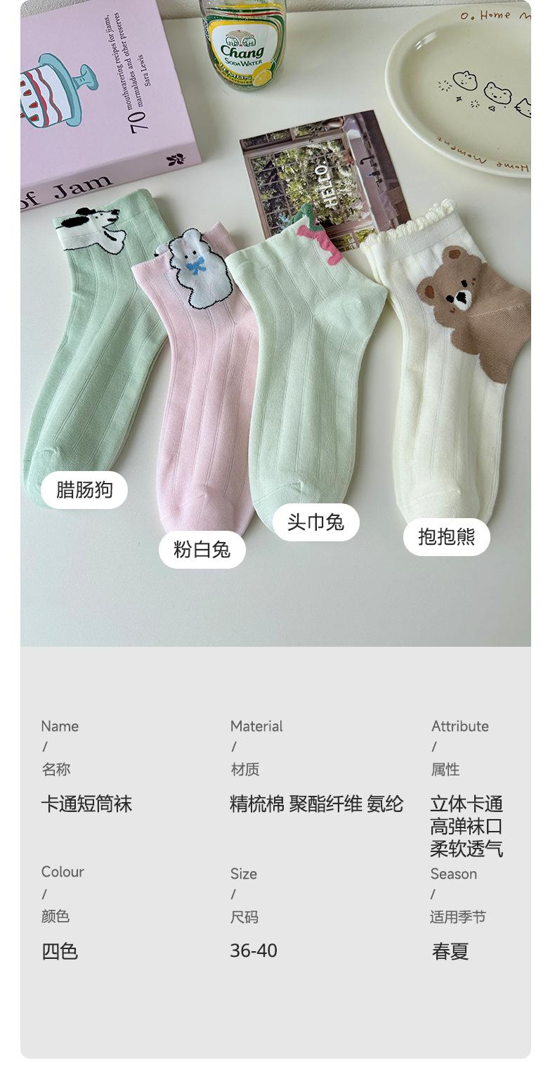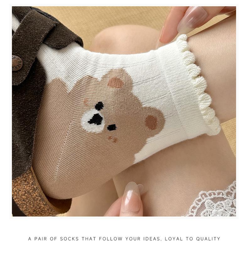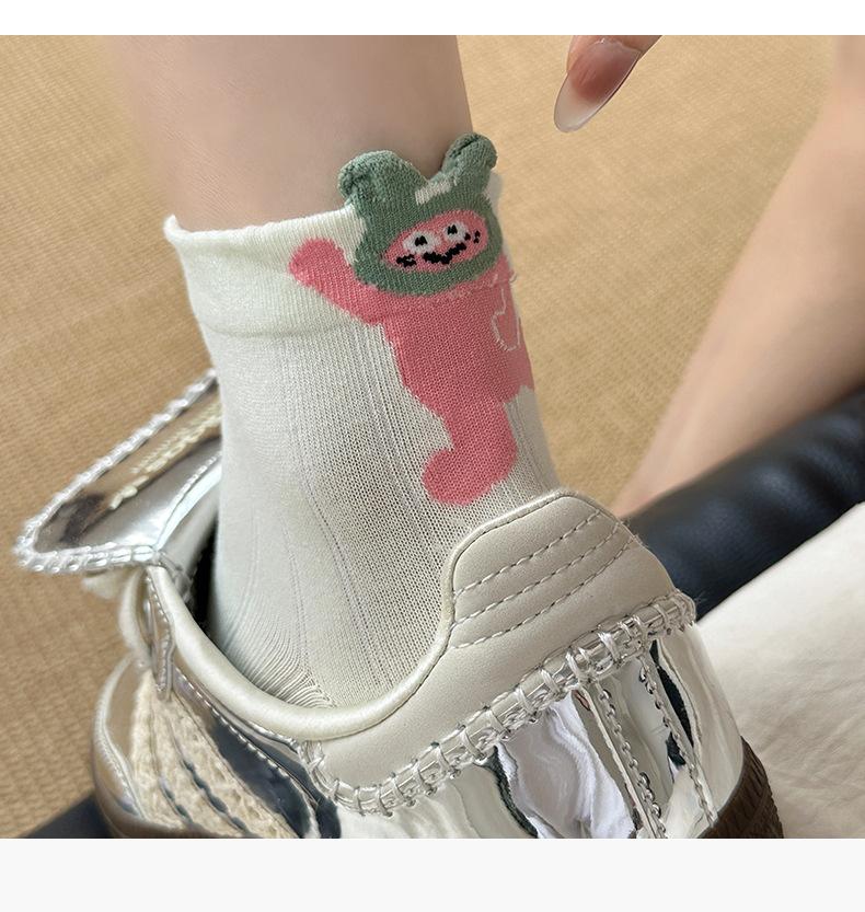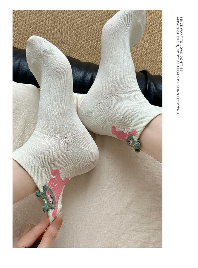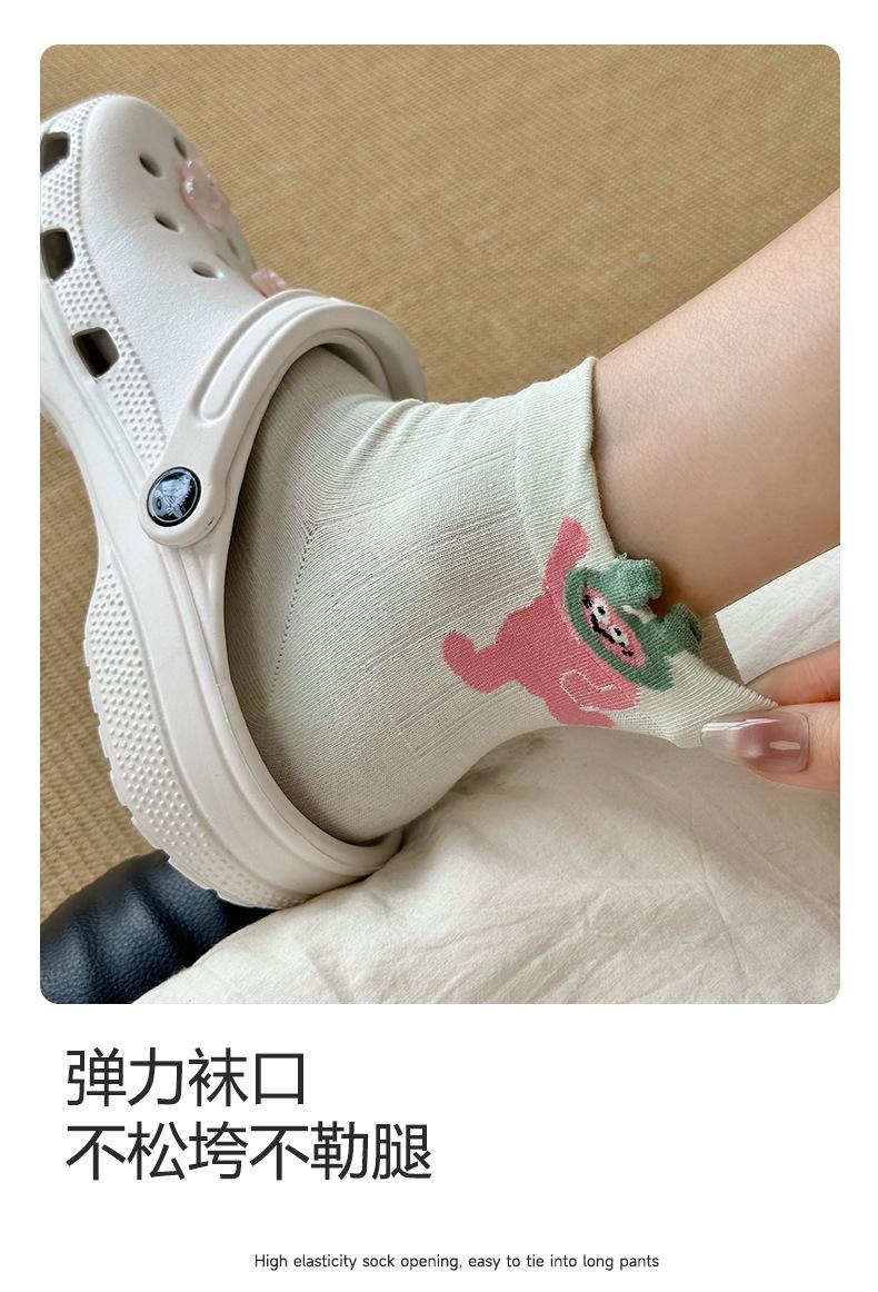 Calcetines de Encaje para Mujer Verano Delgados Calcetines con Patrón de Dibujos Animados Tridimensionales Algodón Absorbente del Sudor Transpirables