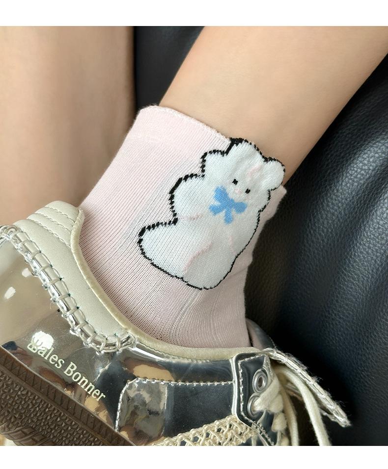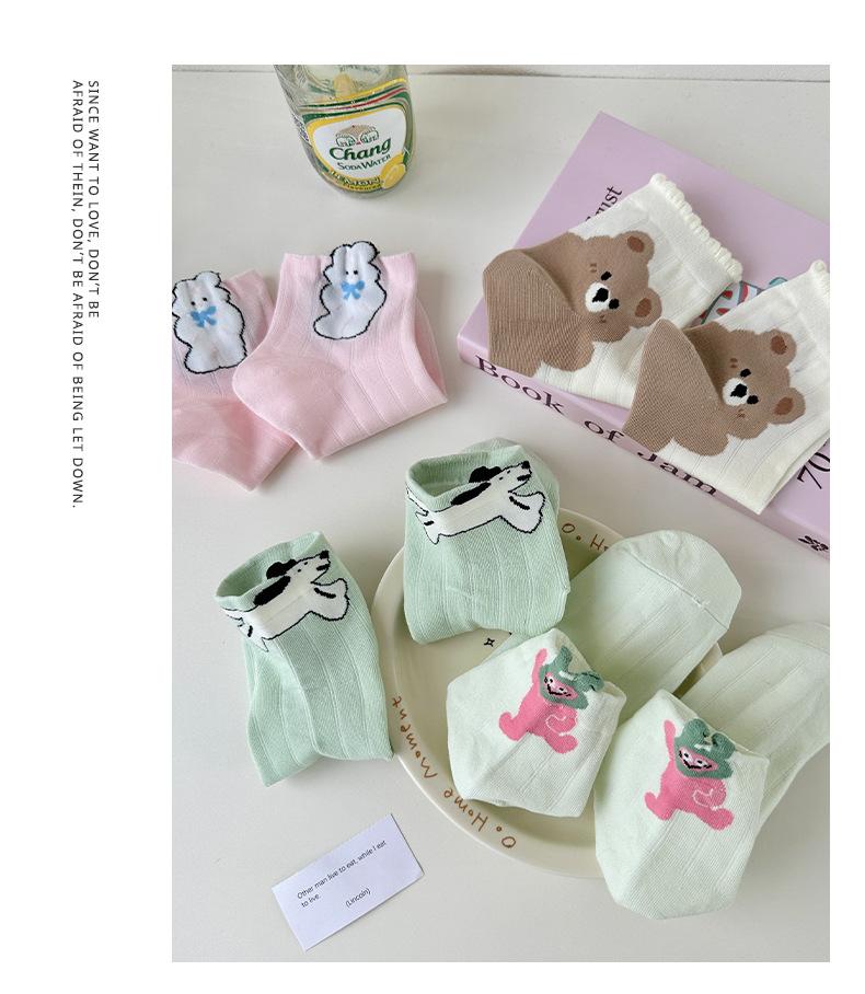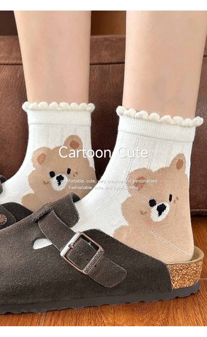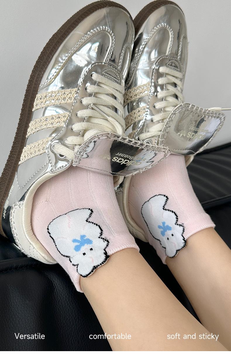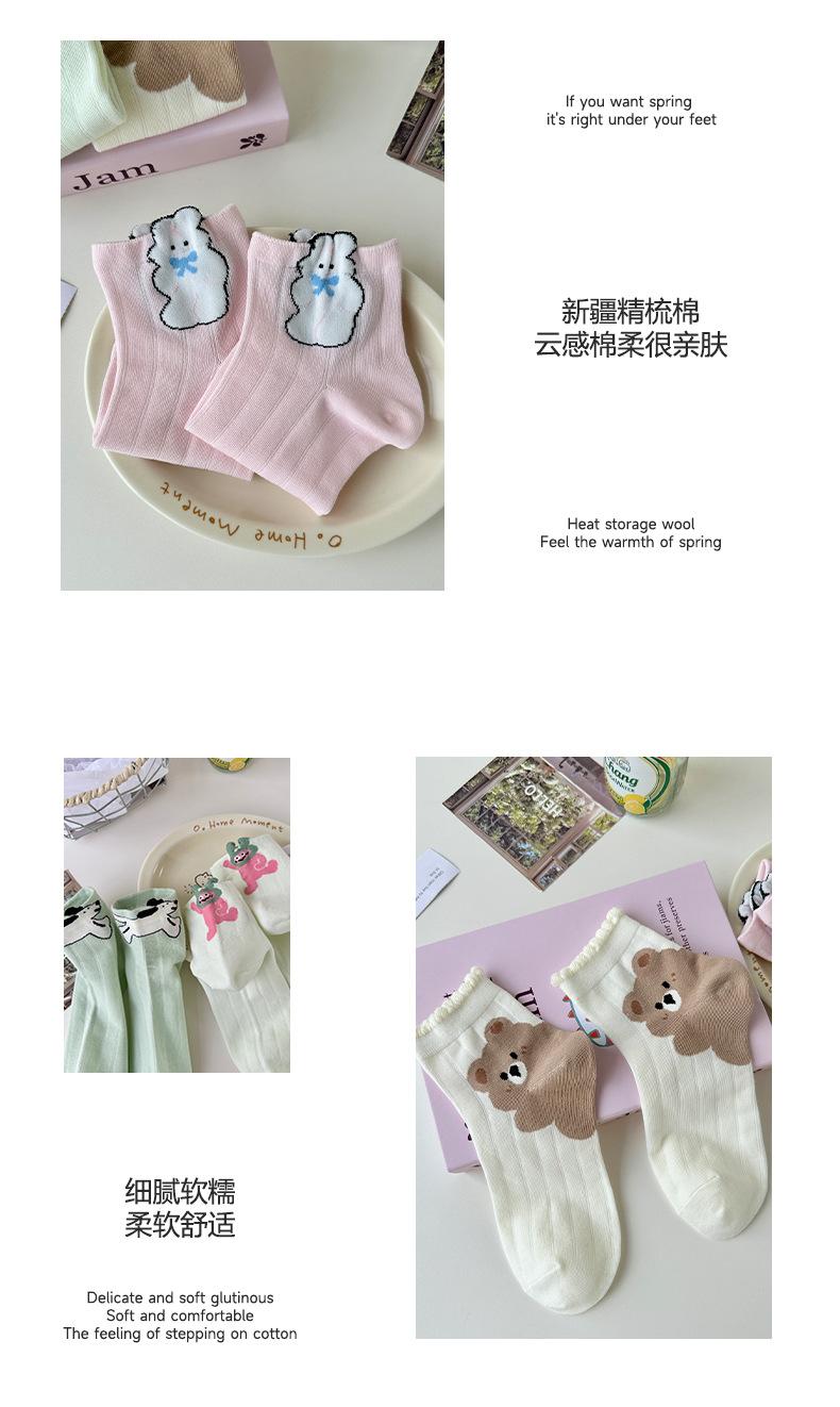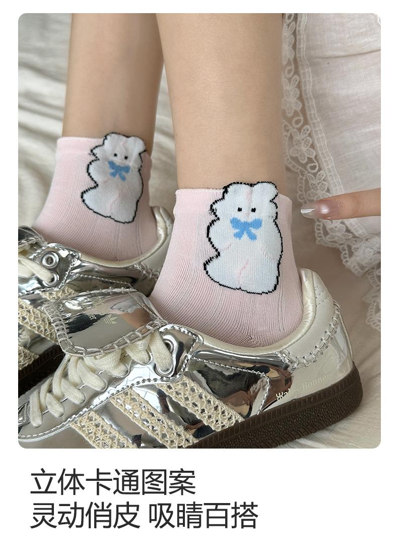 Calcetines de Encaje para Mujer Verano Delgados Calcetines con Patrón de Dibujos Animados Tridimensionales Algodón Absorbente del Sudor Transpirables
