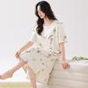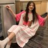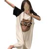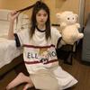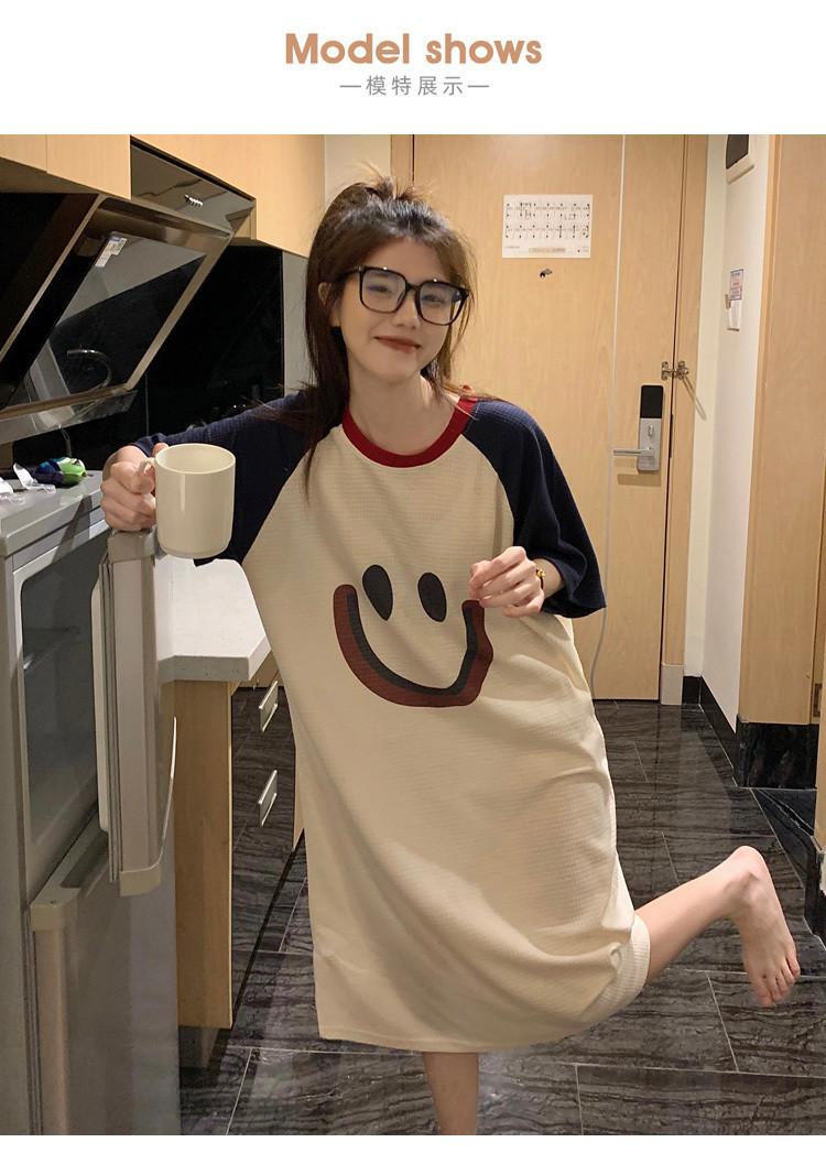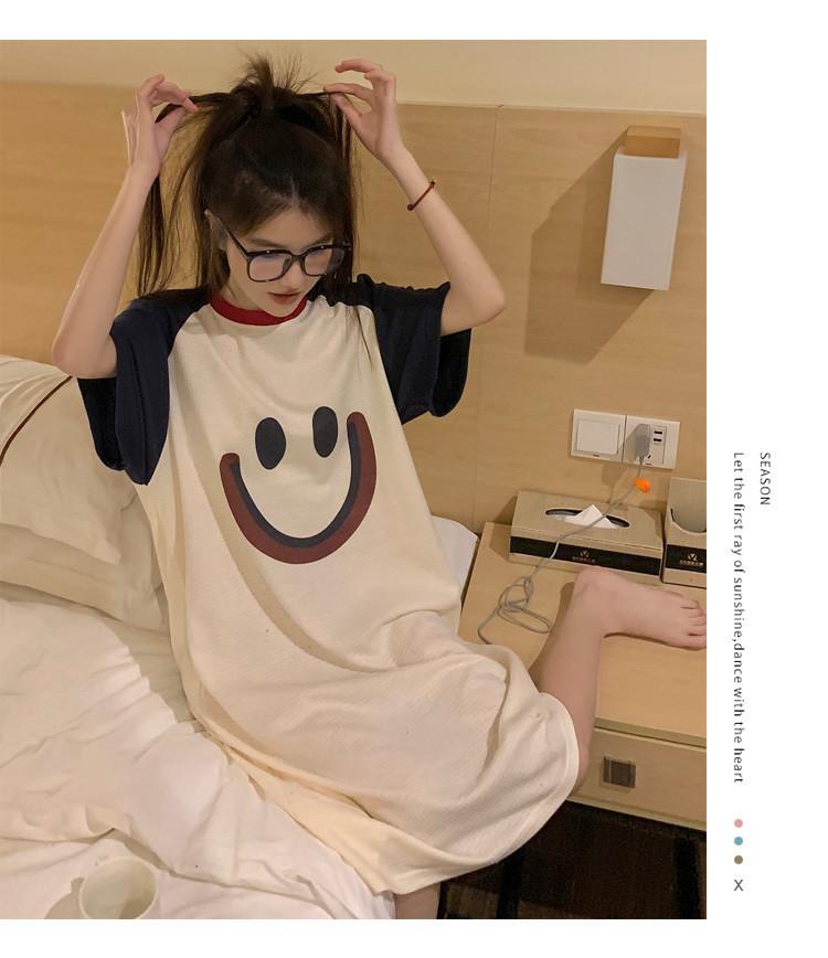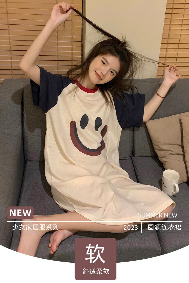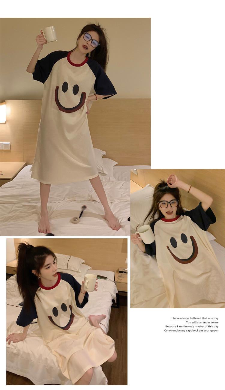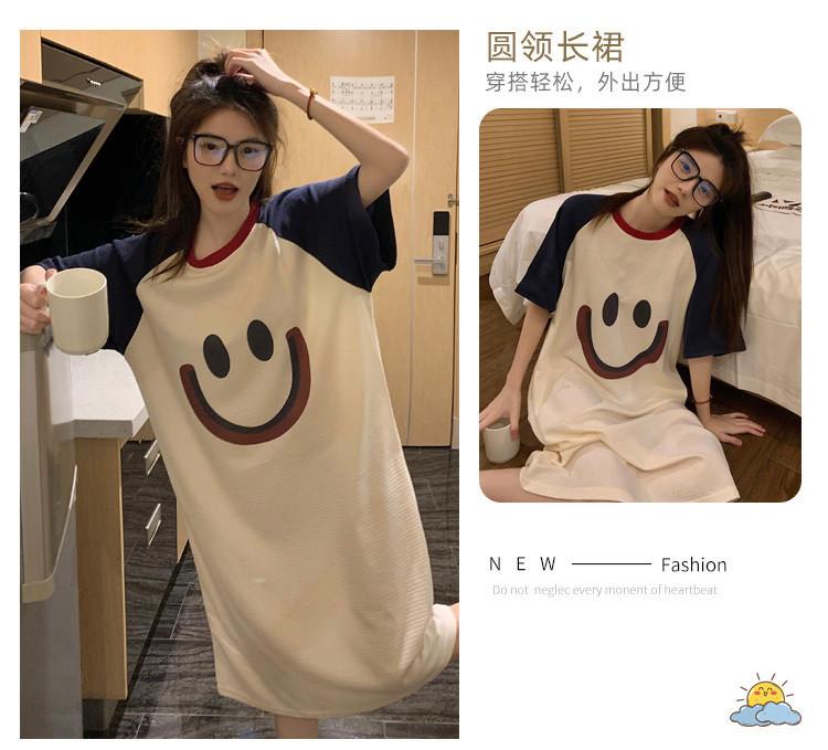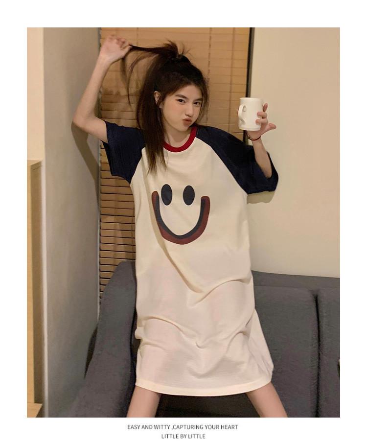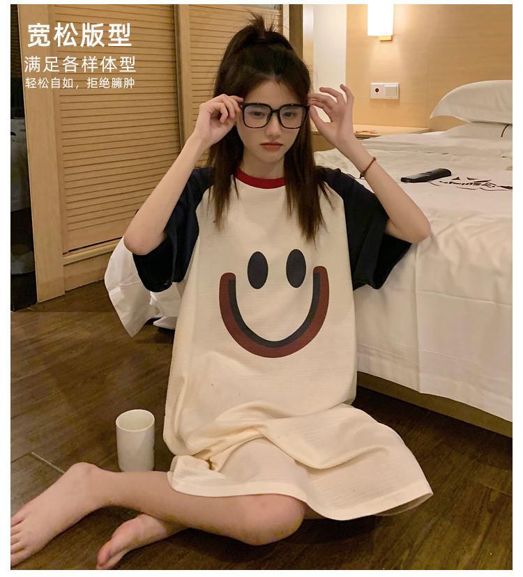 Camisola de Noite Estilo Coreano para Mulheres Verão Manga Curta Estudante Solta Tamanho Grande Verão Pode Ser Usada Fora Pijama Fino Comprimento Médio Roupa de Casa