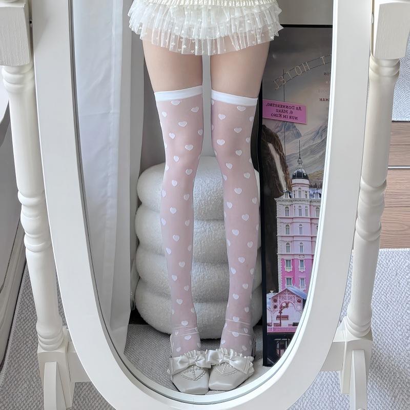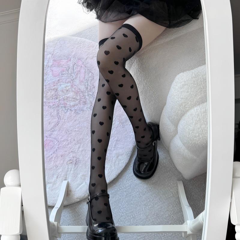 Calcetines Altos hasta el Muslo Jacquard de Corazón Negro Estilo Japonés para Mujer, Calcetines Jk Adelgazantes hasta el Muslo, Calcetines Largos Lolita