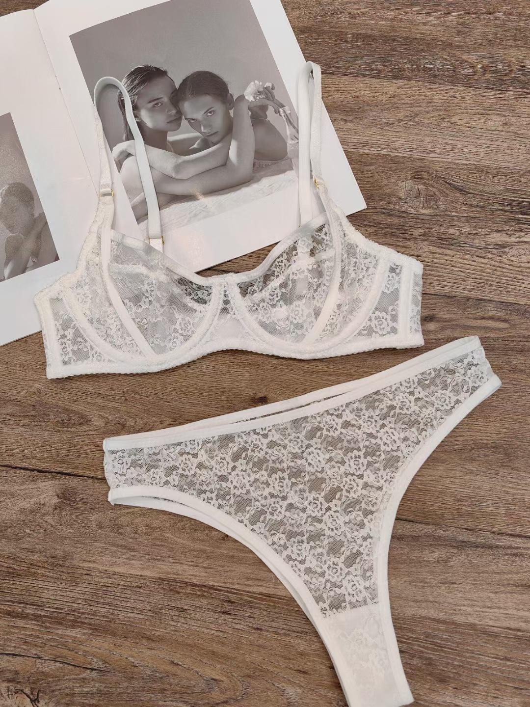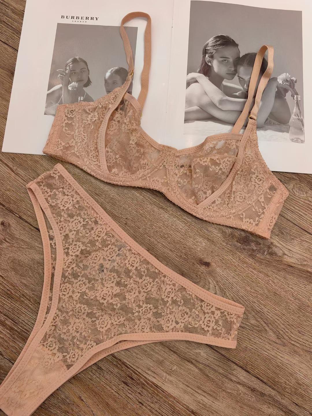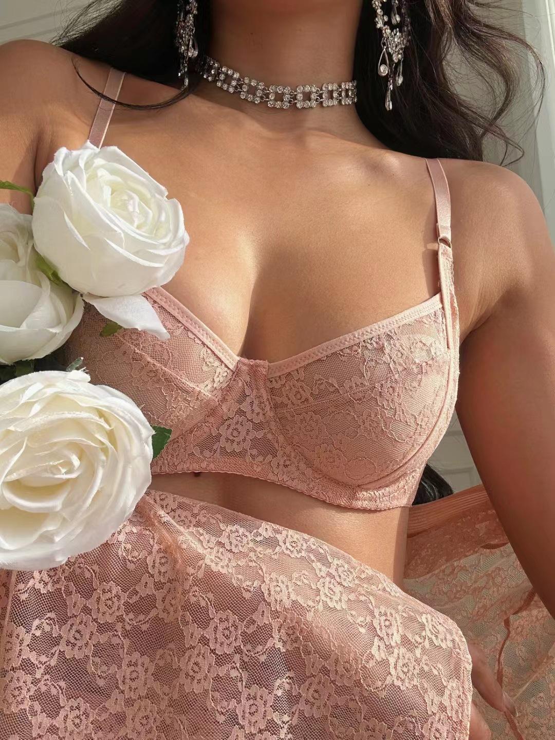 Ropa interior de encaje francés de verano Ultradelgada Cómoda Transpirable Pecho Grande Pequeño Sexy Traje de brasier de acero puro