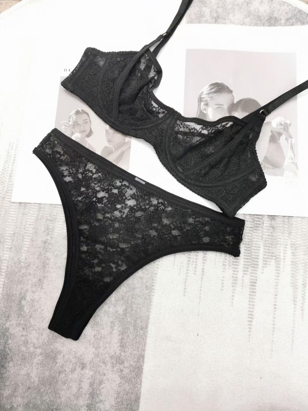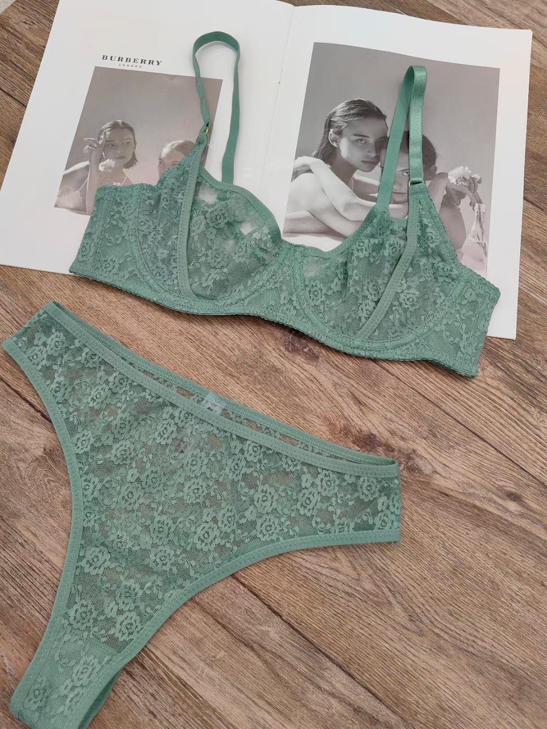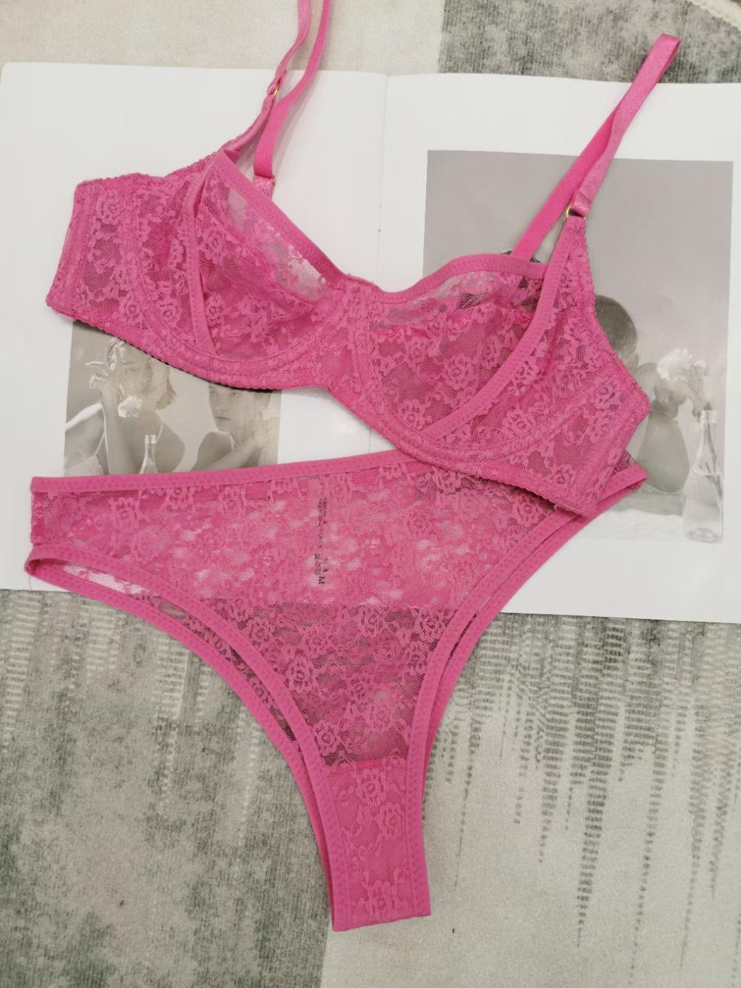 Ropa interior de encaje francés de verano Ultradelgada Cómoda Transpirable Pecho Grande Pequeño Sexy Traje de brasier de acero puro