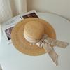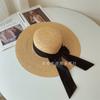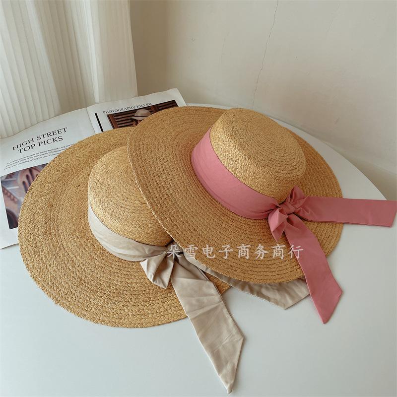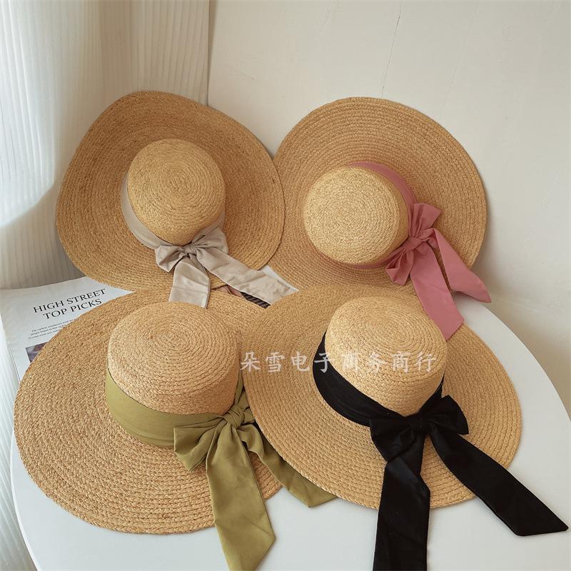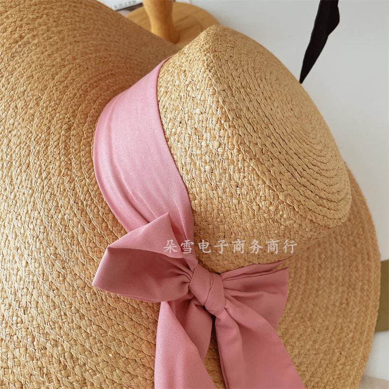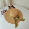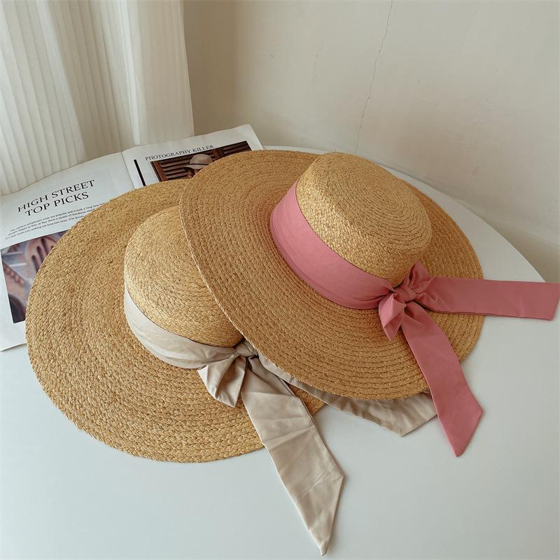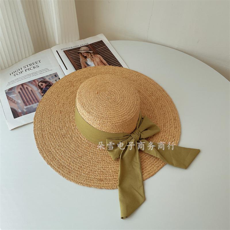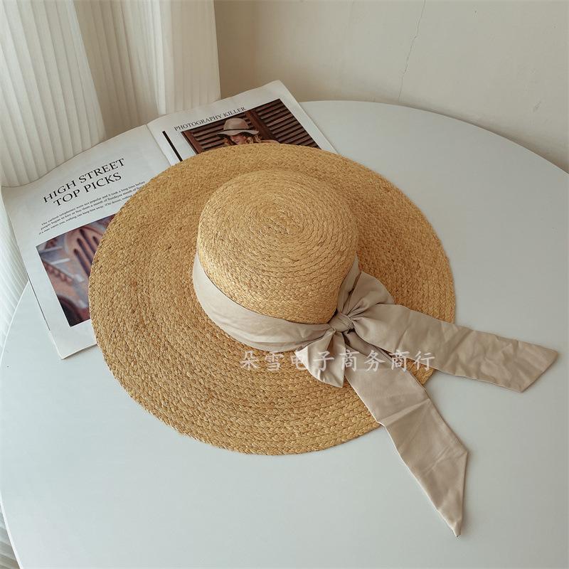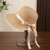 Sombrero de Sol de Rafia Nuevo con Lazo, Sombrero de Paja Estilo Resort Casual, Sombrero de Ala Ancha Moderno y Sencillo, Moderno y Dulce