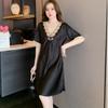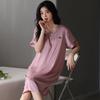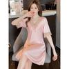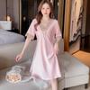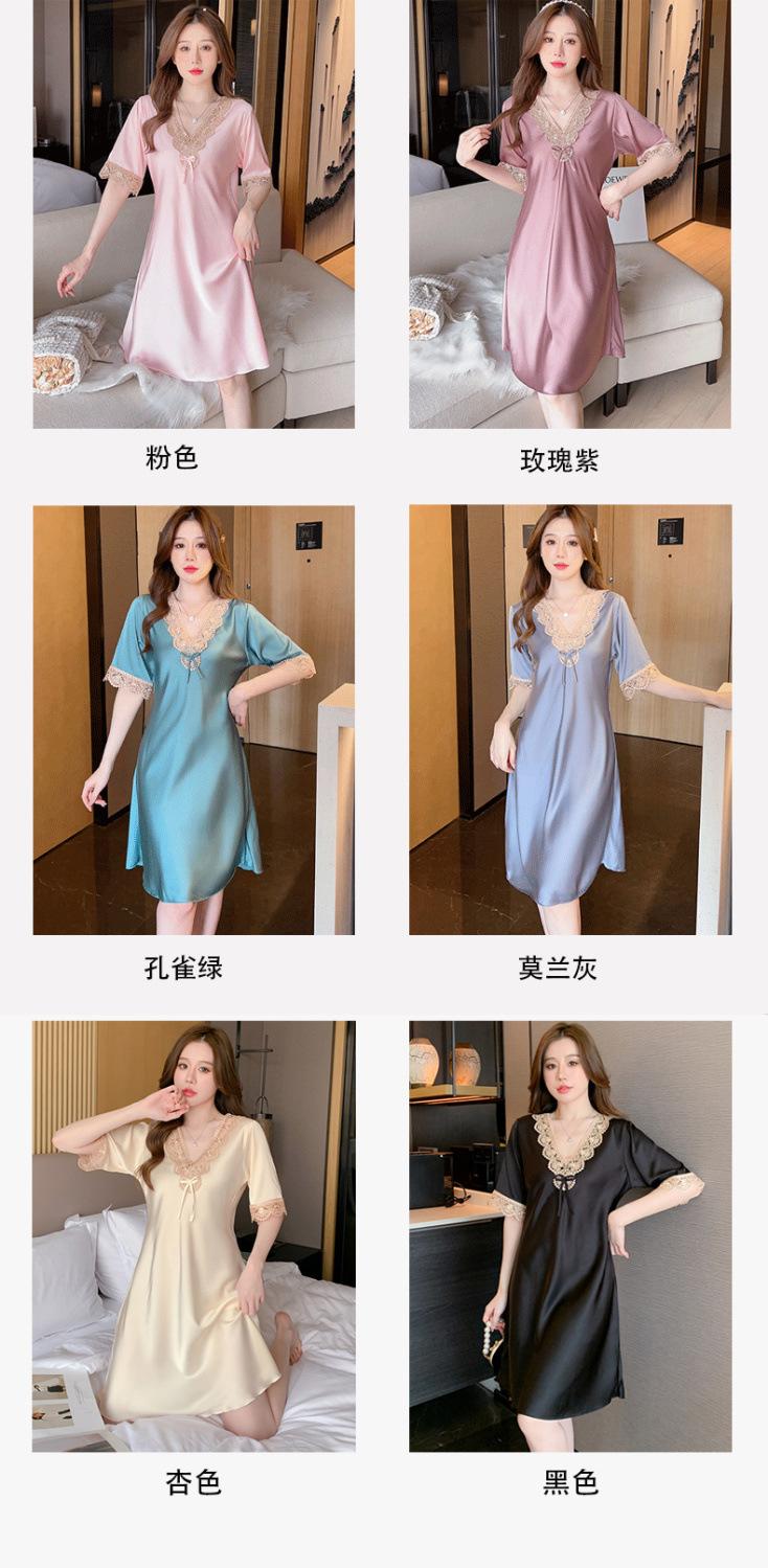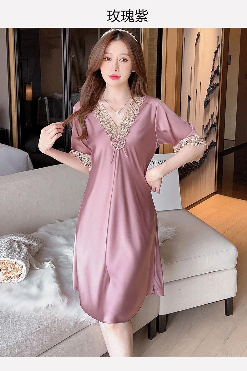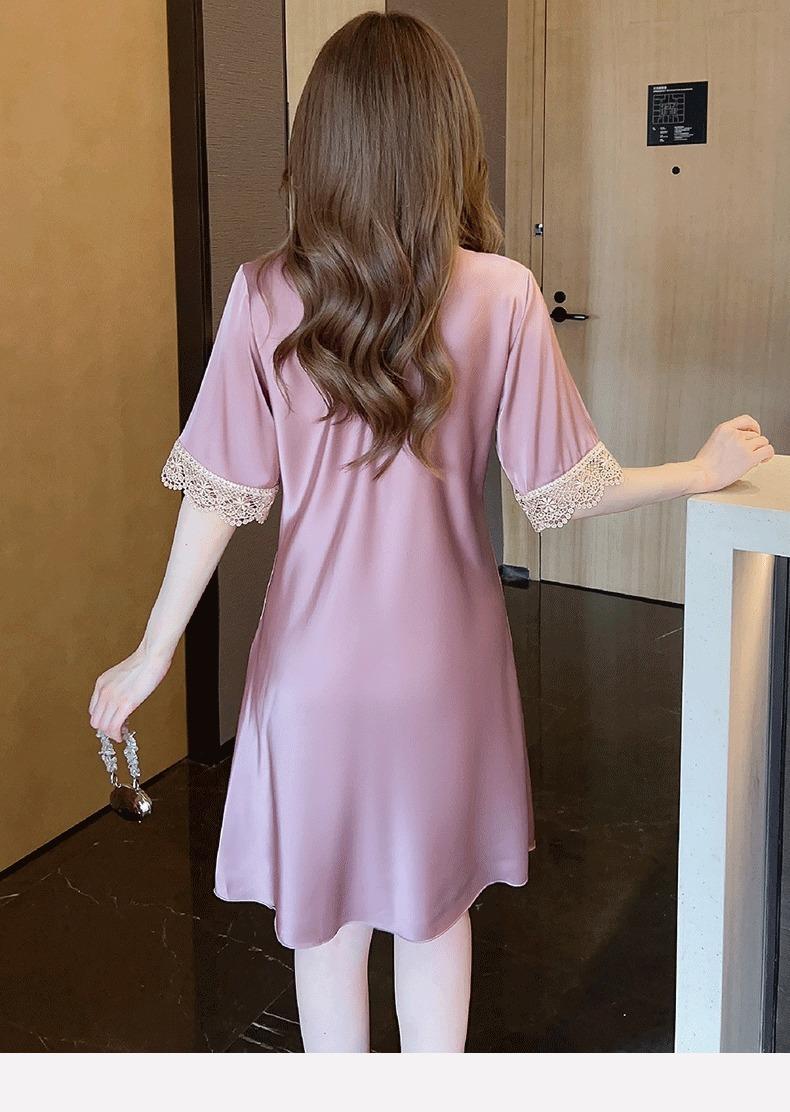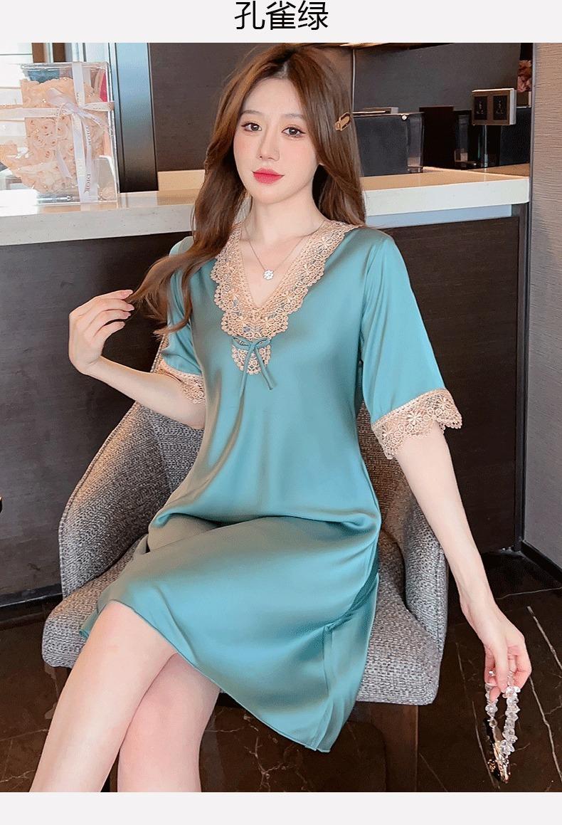 Pijamas para Mujer Verano Seda de Hielo Manga Corta Encaje Sexy Camisón de Seda de Alta Gama Verano Delgada Holgada Ropa para el Hogar