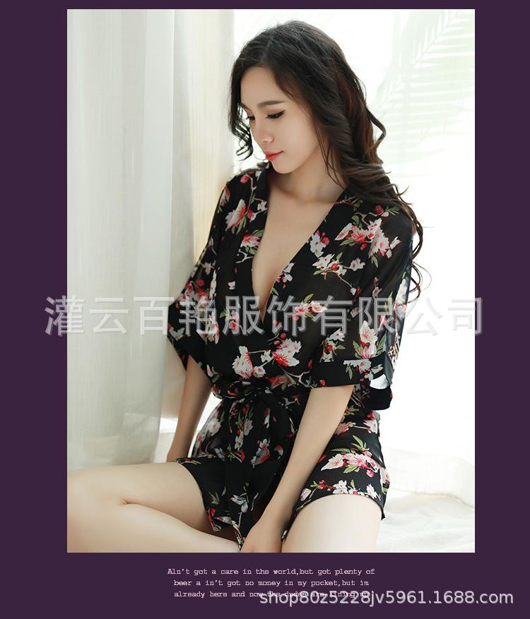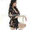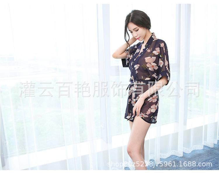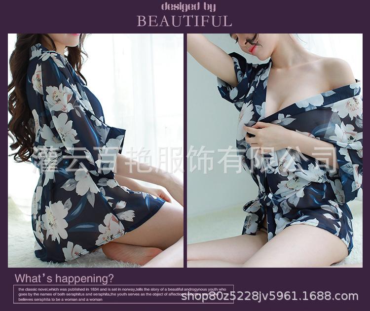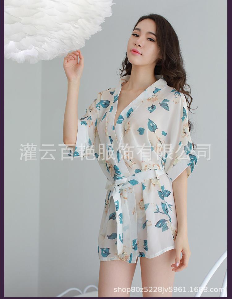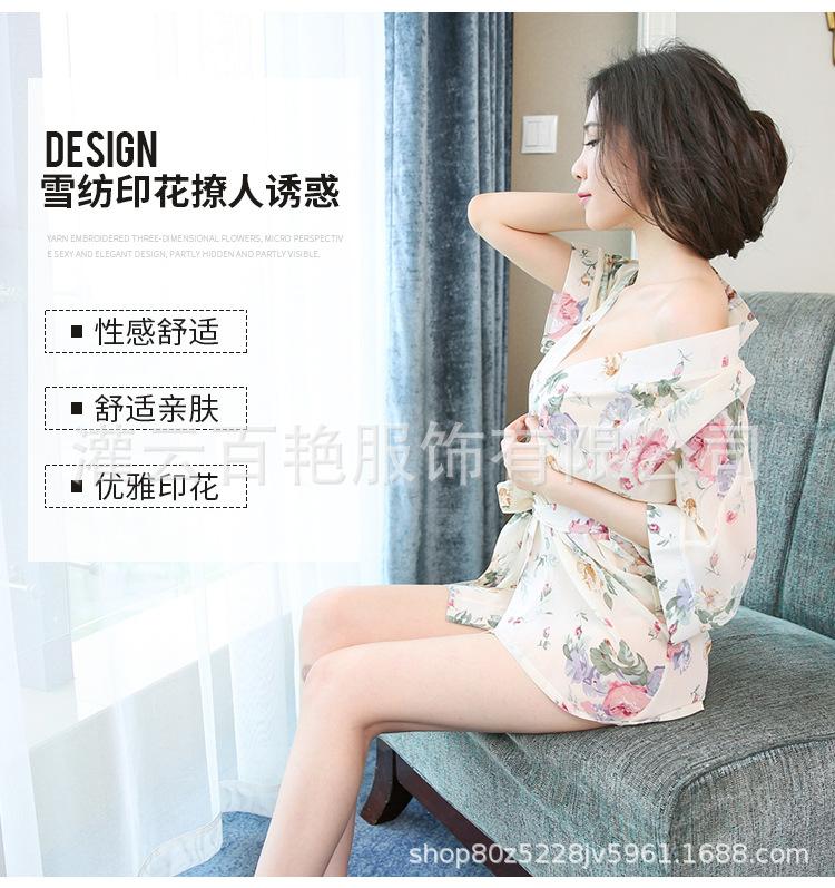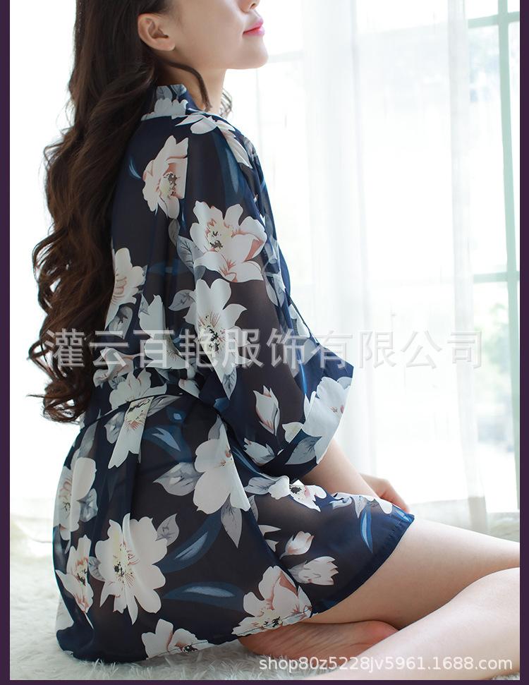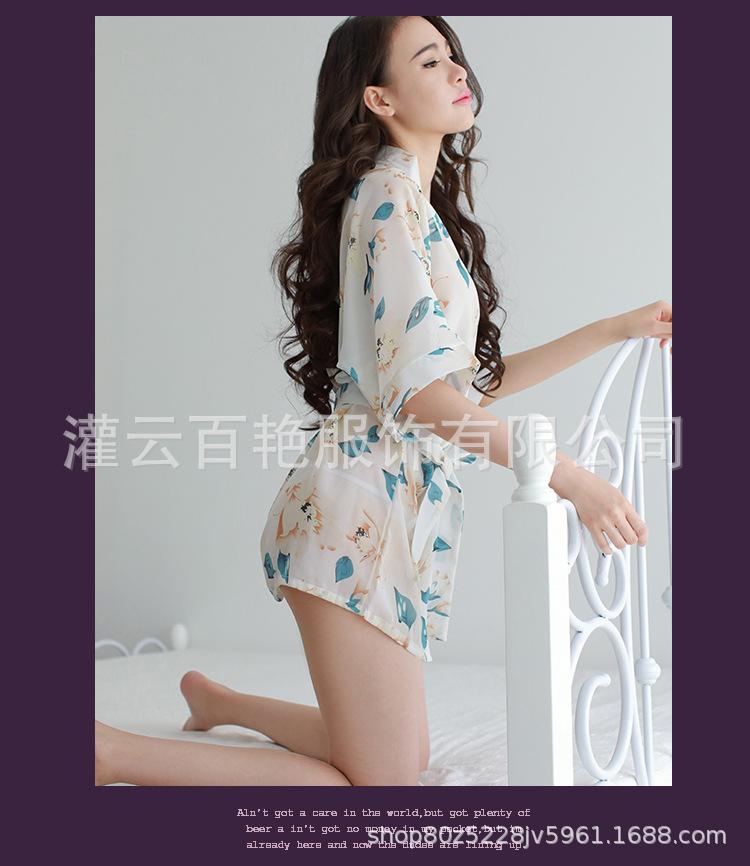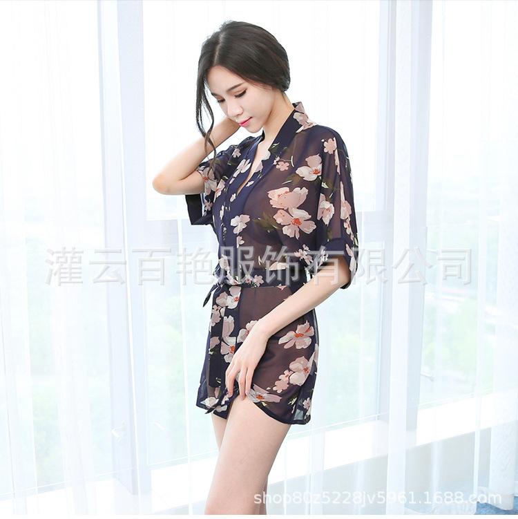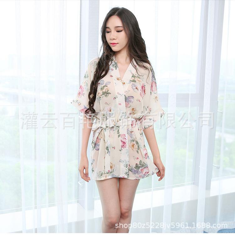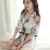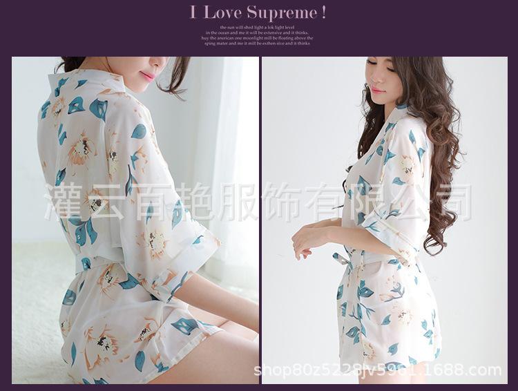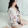 Lencería Sexy, Tentación Femenina, Ropa de Casa de Gasa, Kimono Estampado Transparente, Camisón Inferior Faltante, Delgado 1528