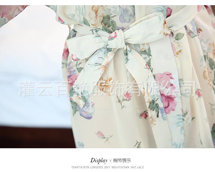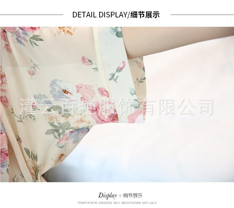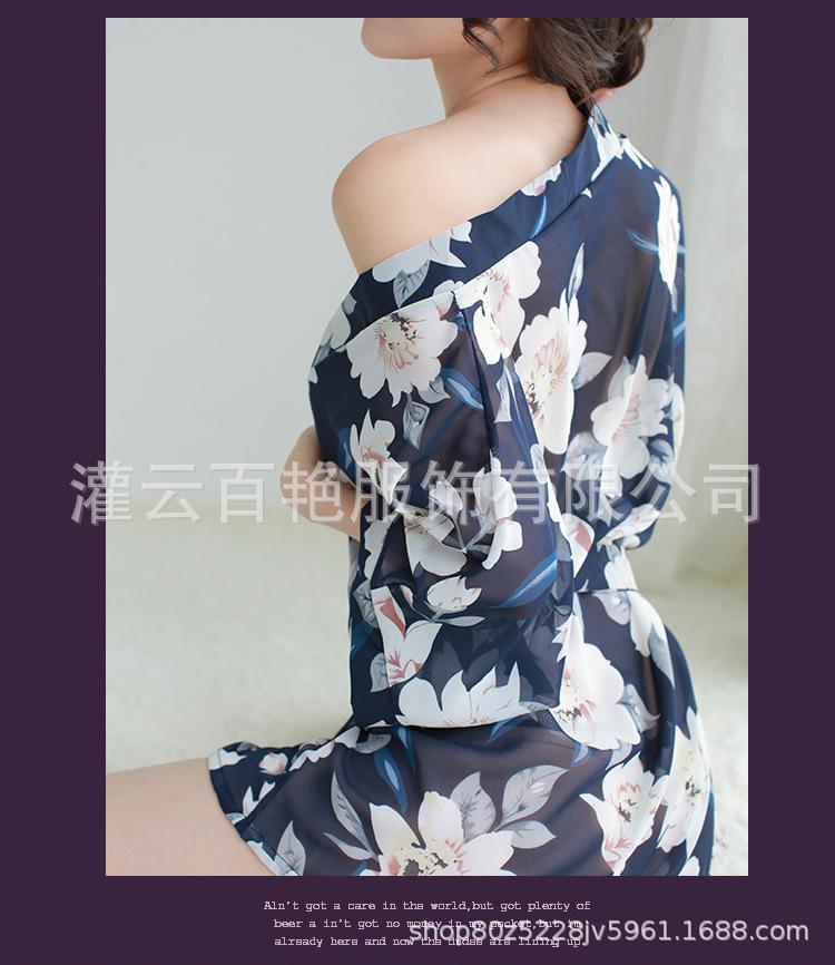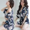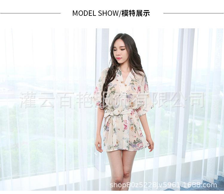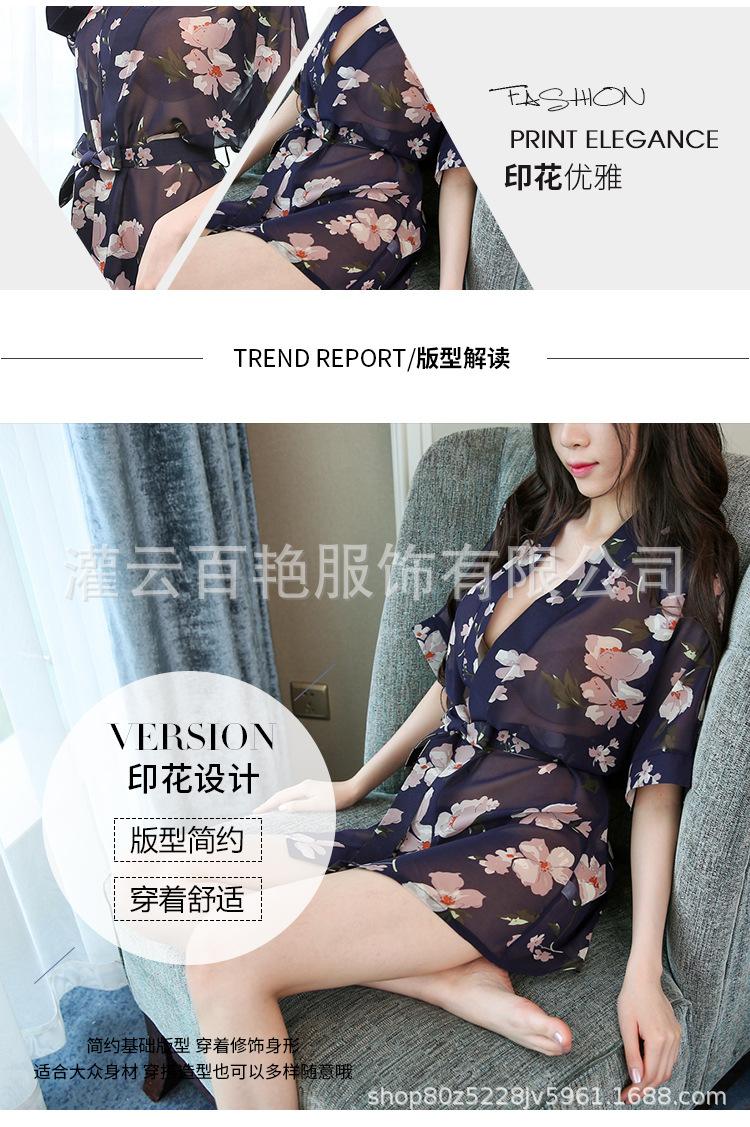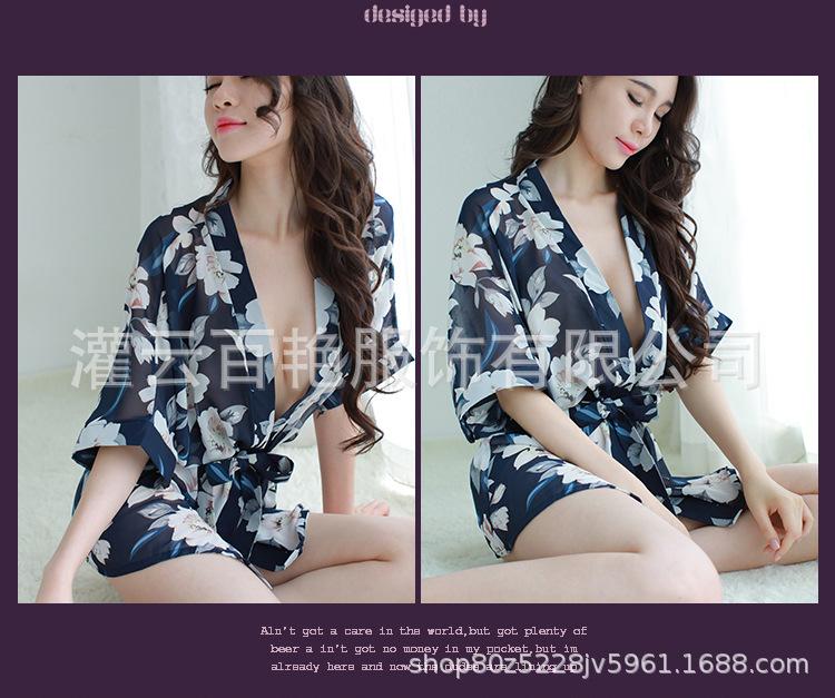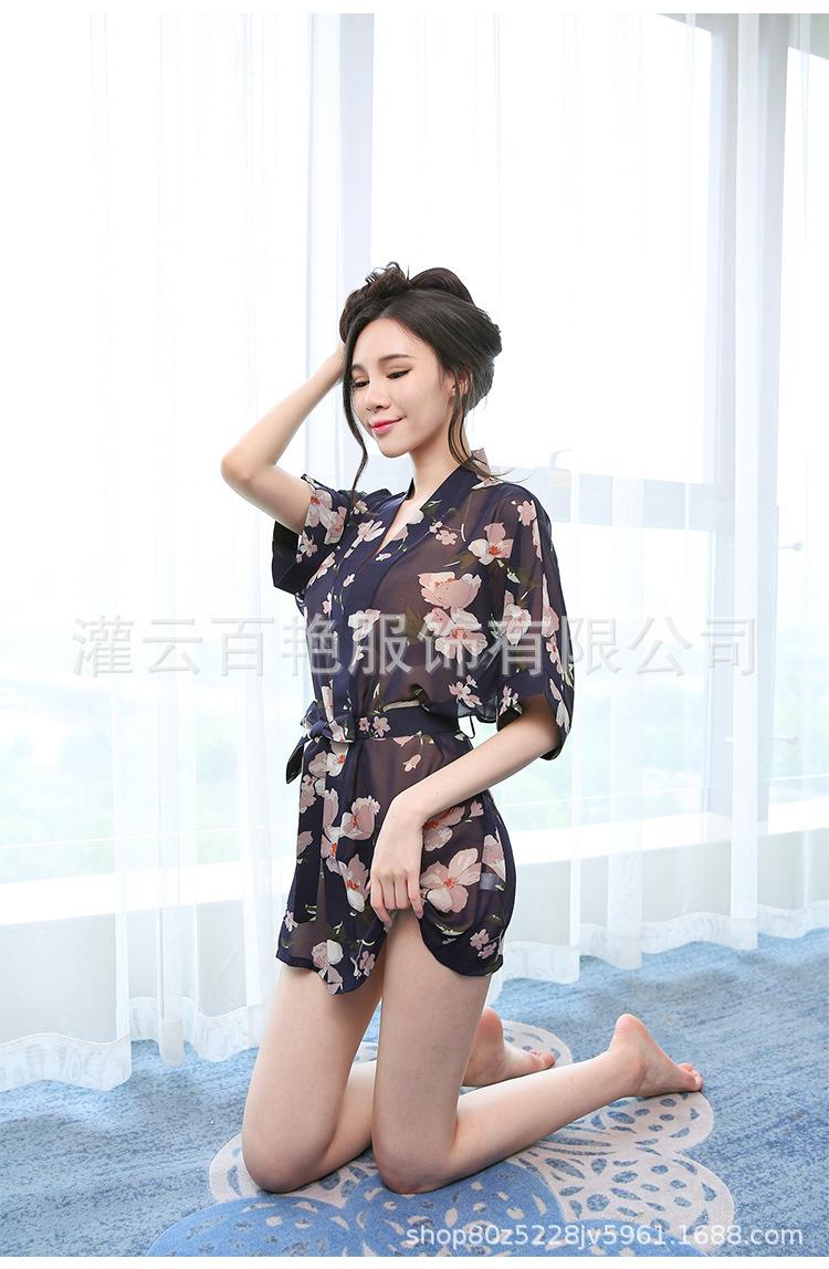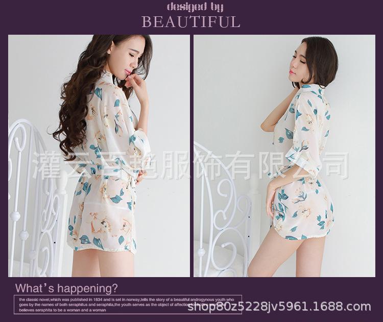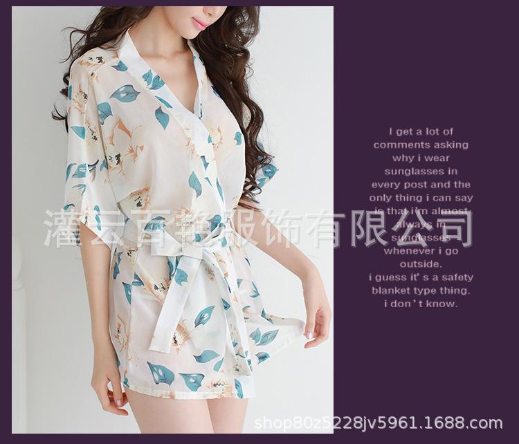 Lencería Sexy, Tentación Femenina, Ropa de Casa de Gasa, Kimono Estampado Transparente, Camisón Inferior Faltante, Delgado 1528