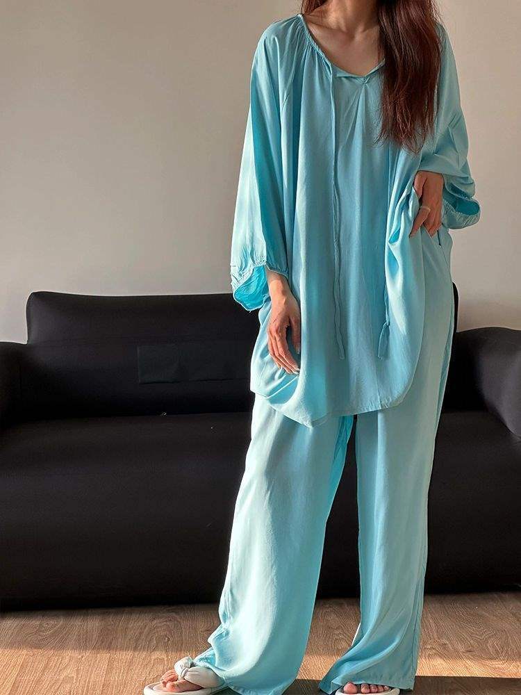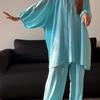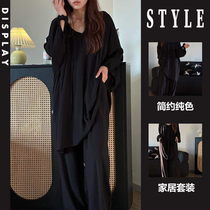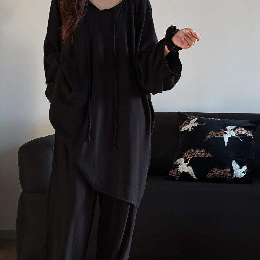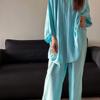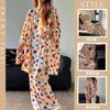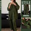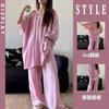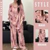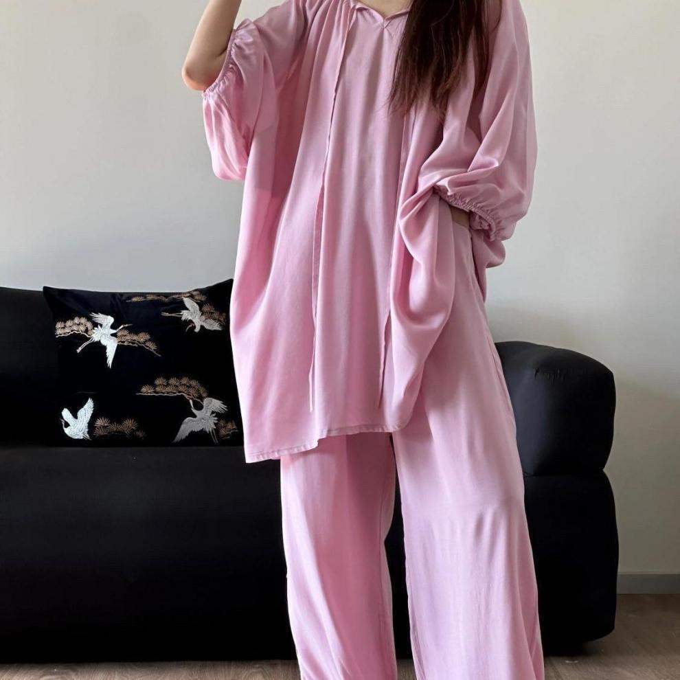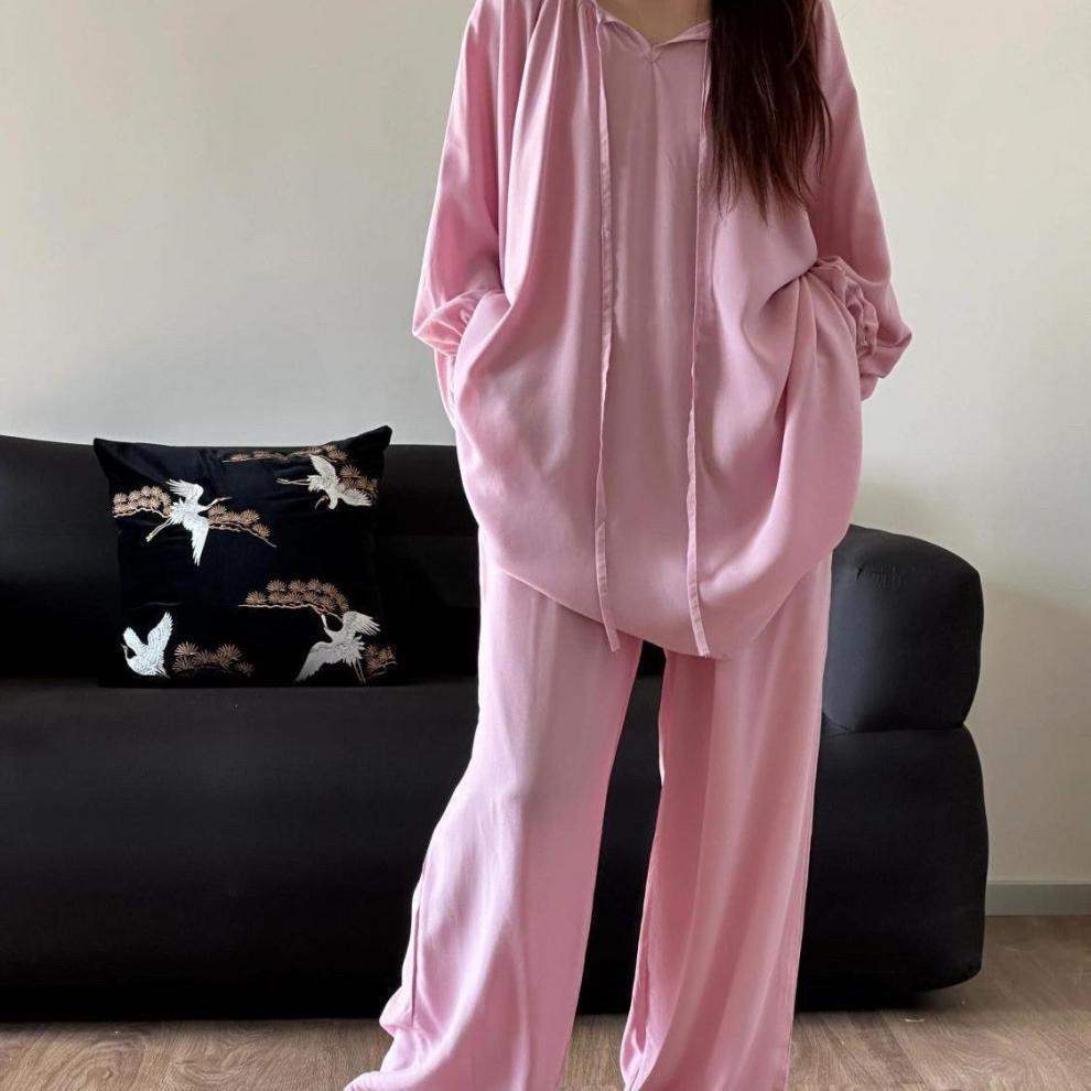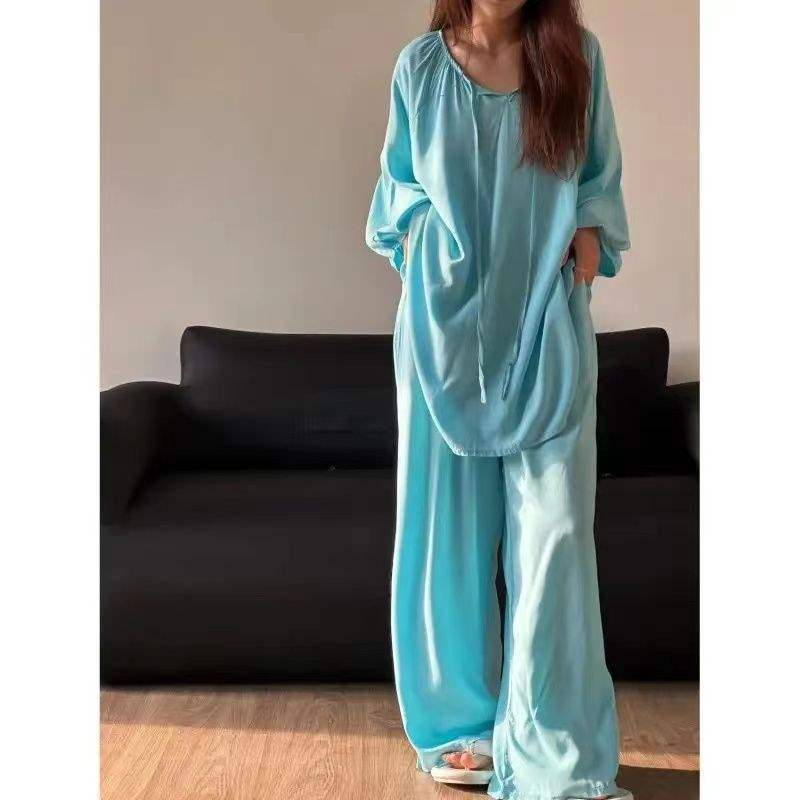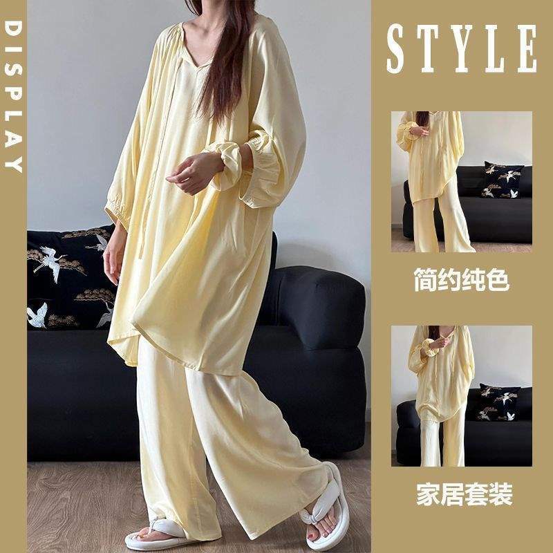 Pijama de Algodón Seda Talla Grande Francés para Mujer Primavera y Verano Suelto Pantalón de Seda de Manga Larga Ropa para el Hogar Traje de Mujer