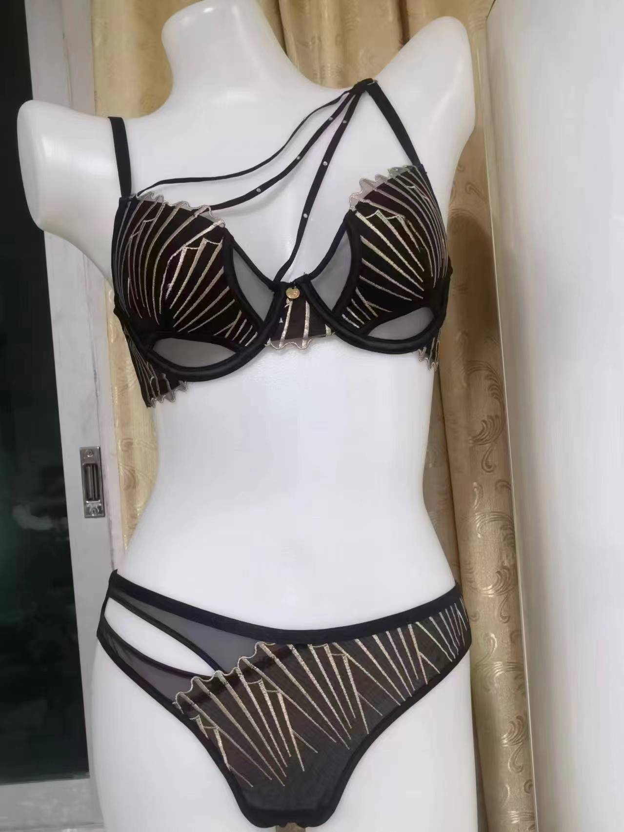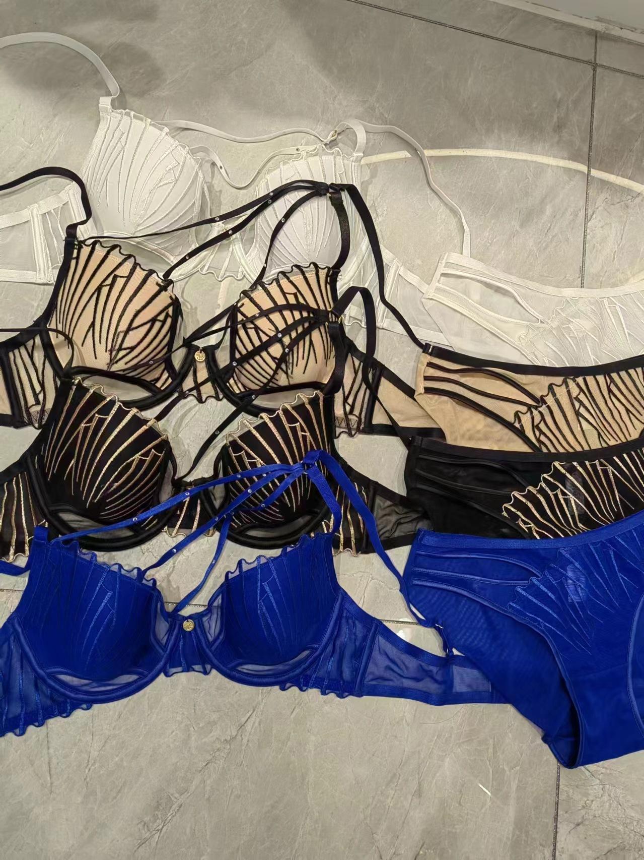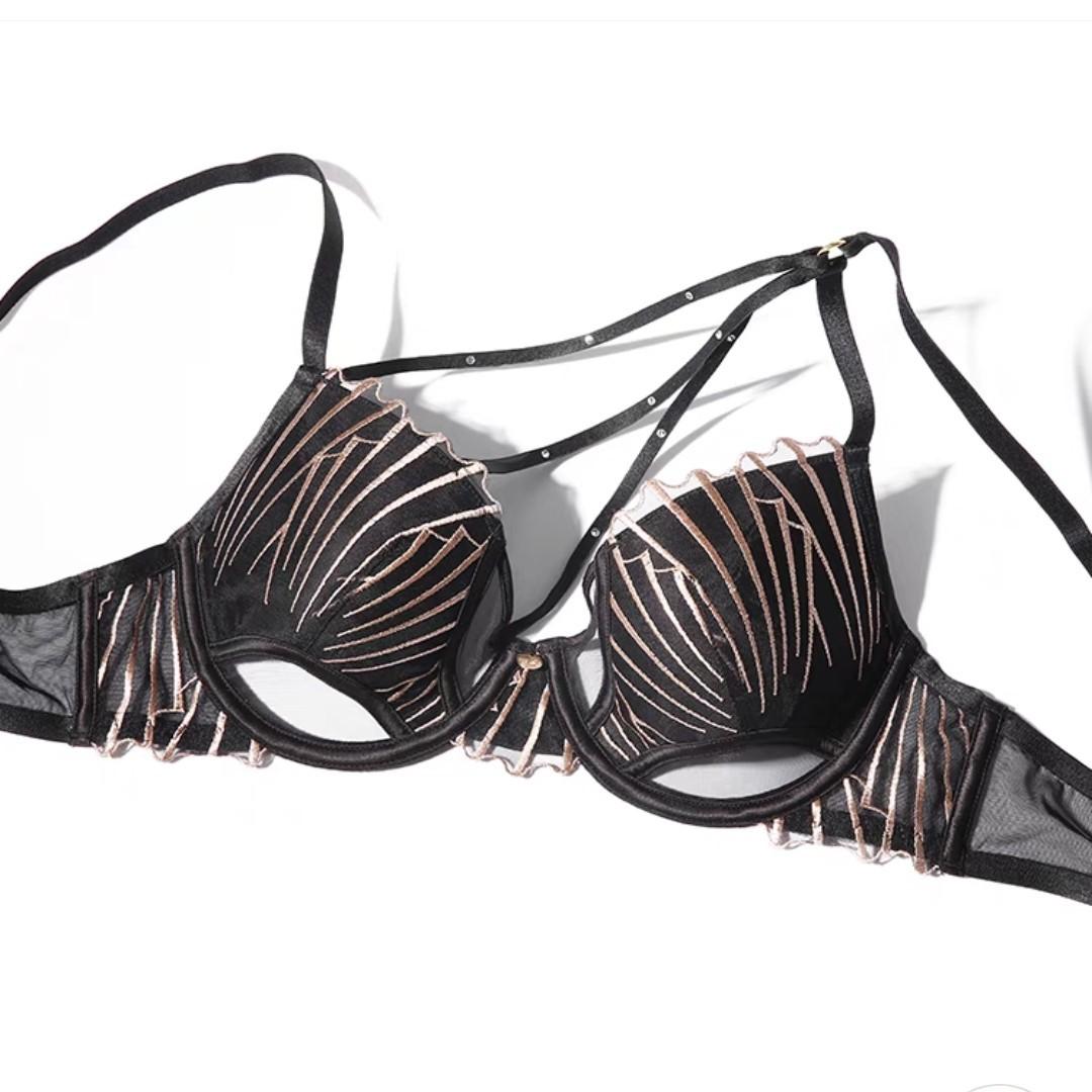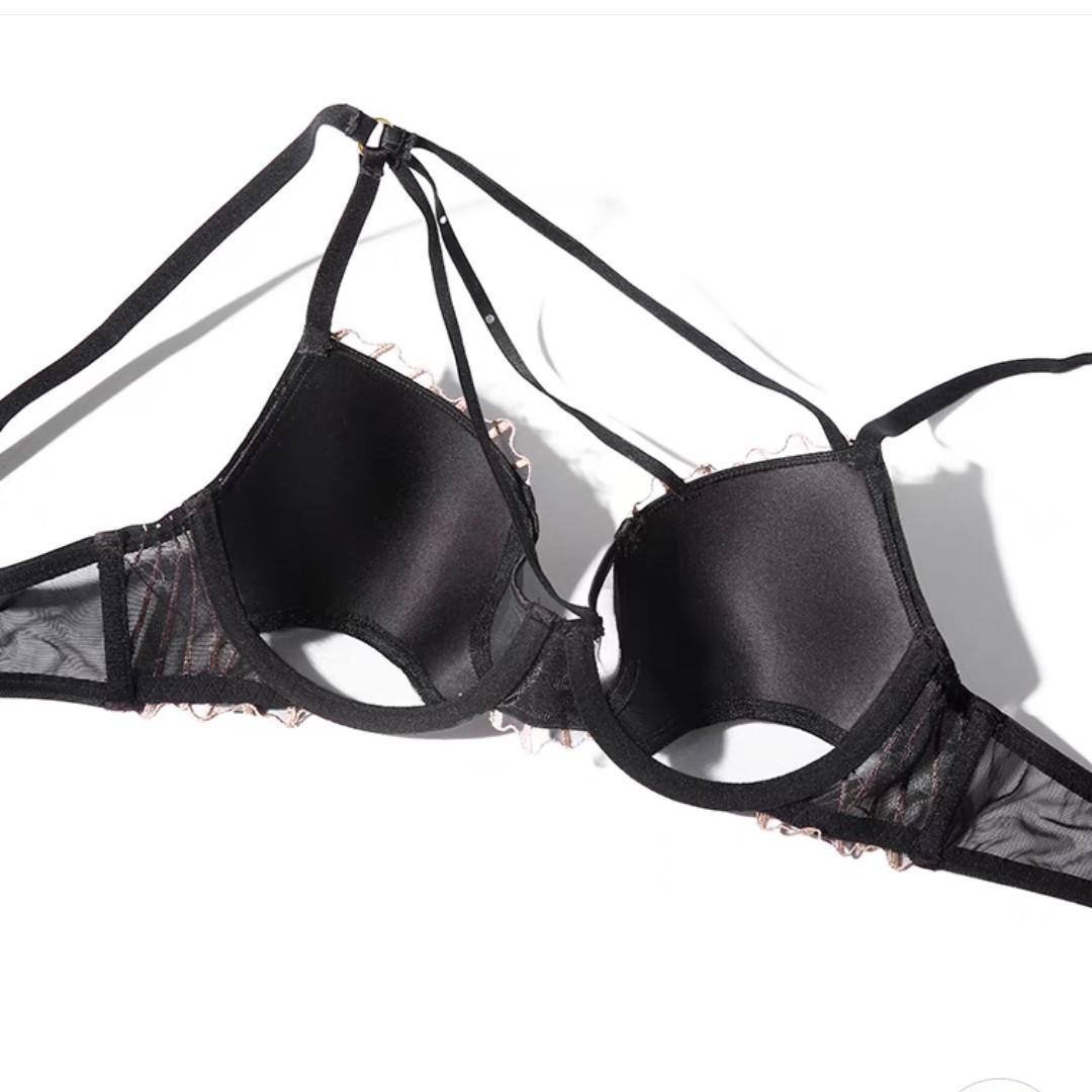 Primavera y Verano Nuevo Estilo Algodón Fino Calado Ropa Interior para Mujer Sexy Pecho Grande Muestra Pequeño Push-up Encaje Sujetador Francés Traje