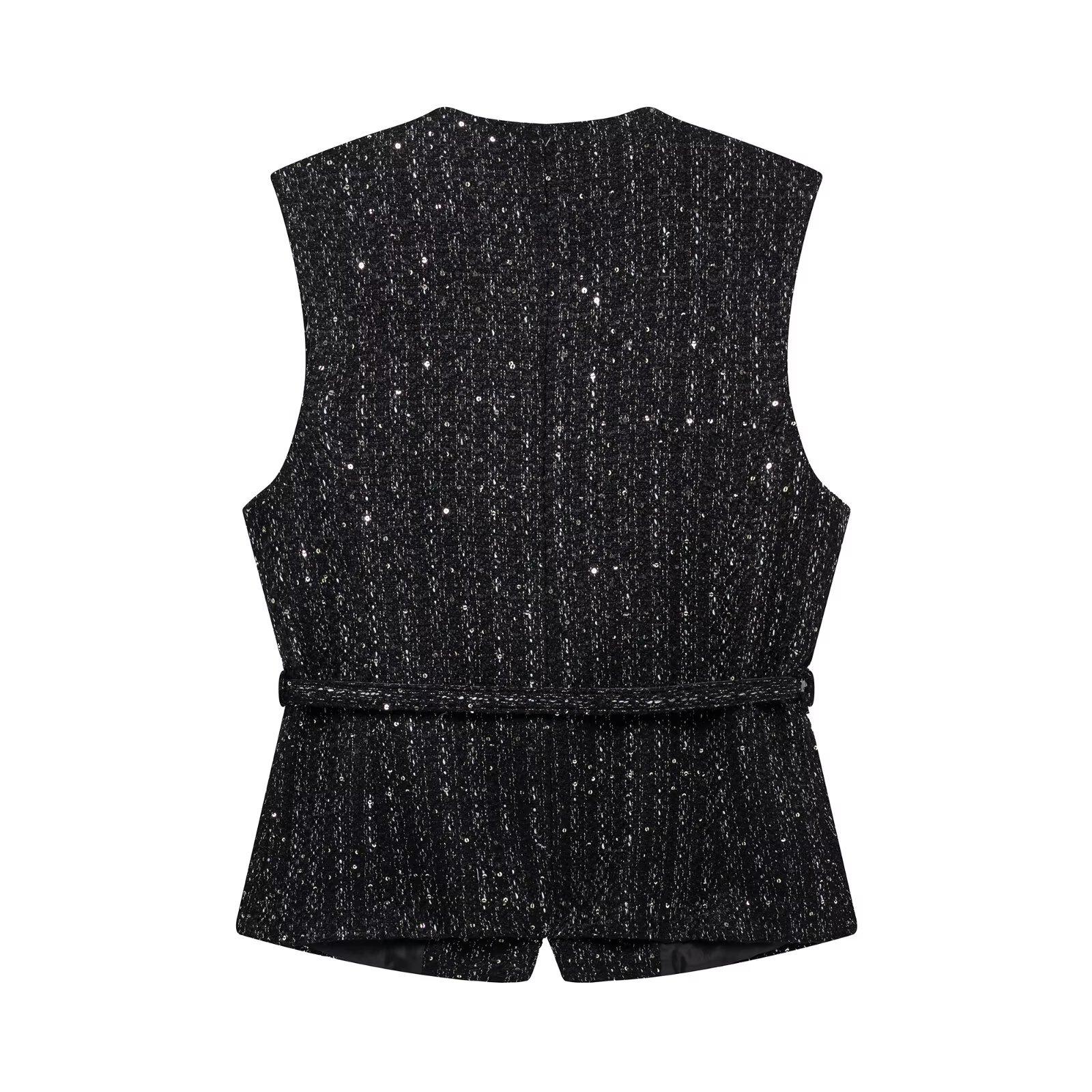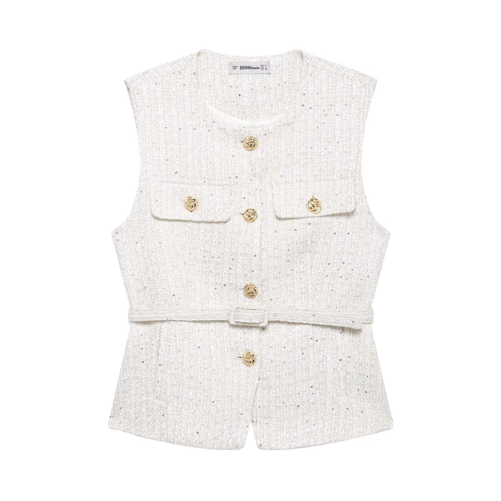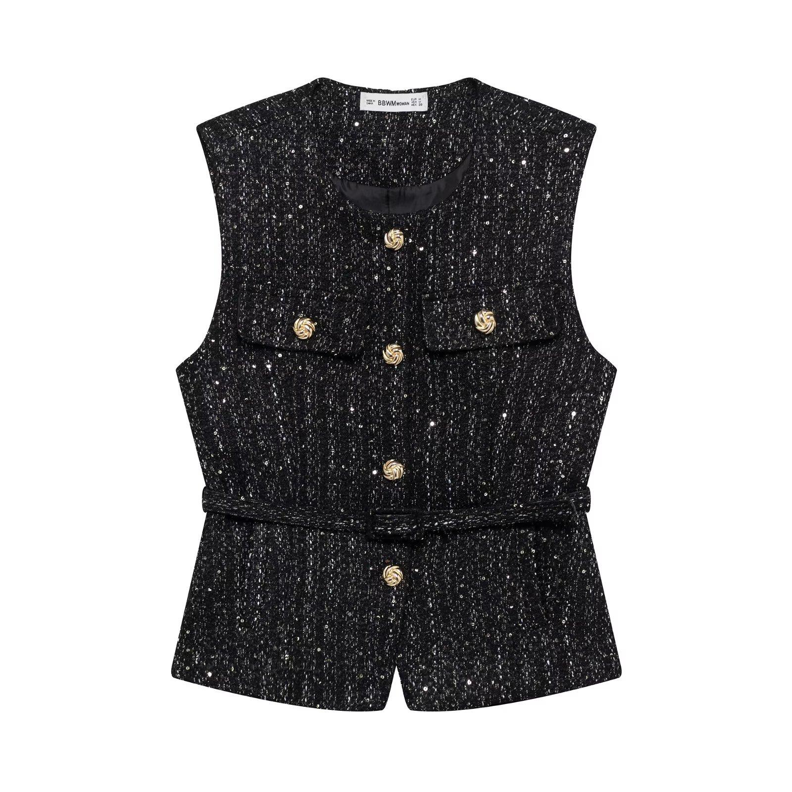 2025 verano nuevo moda callejera transfronteriza europea y americana para mujer con chaleco de textura con cinturón w03 6490