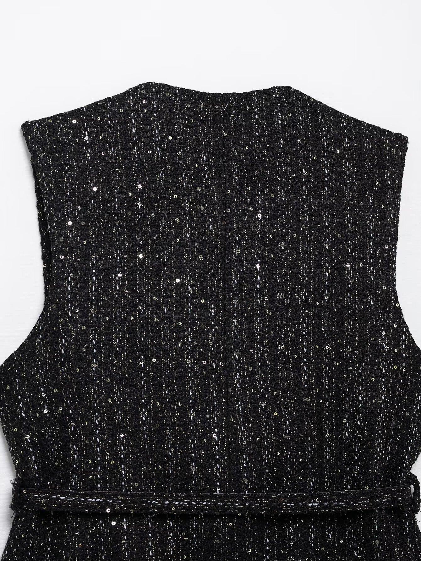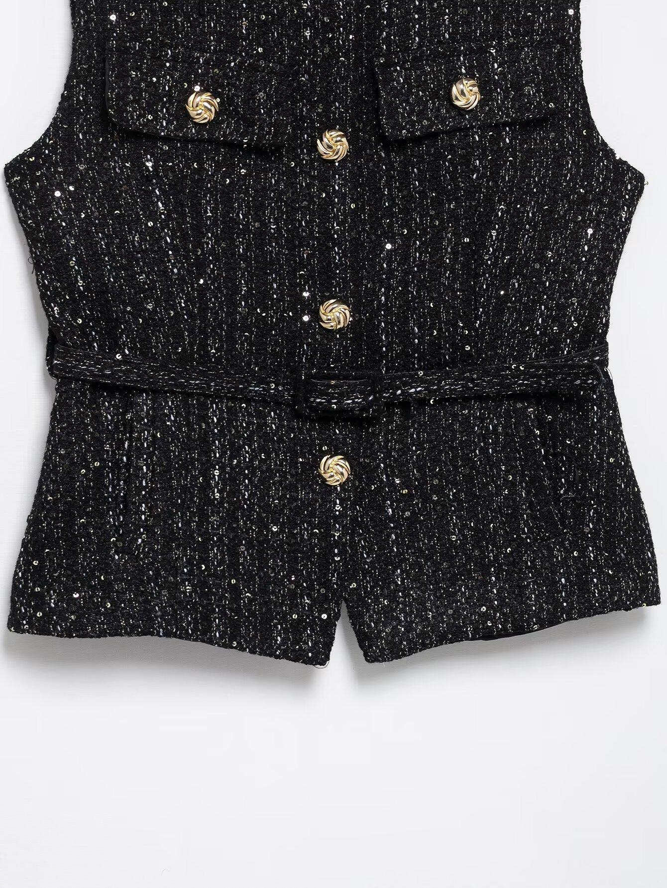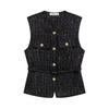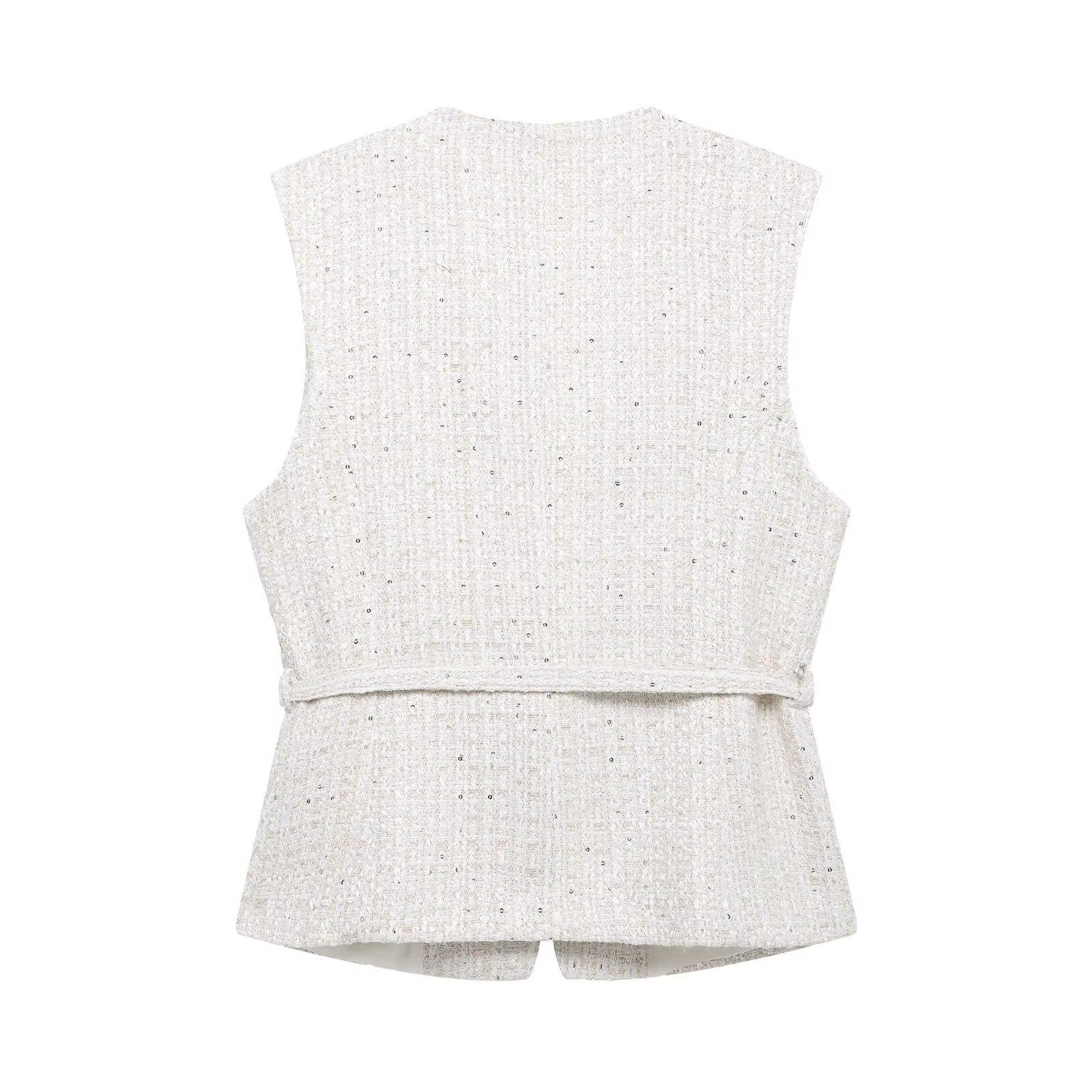 2025 verano nuevo moda callejera transfronteriza europea y americana para mujer con chaleco de textura con cinturón w03 6490