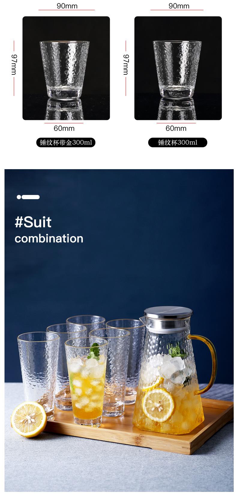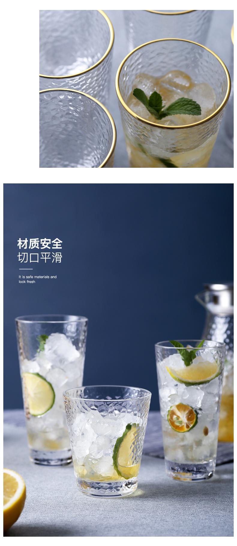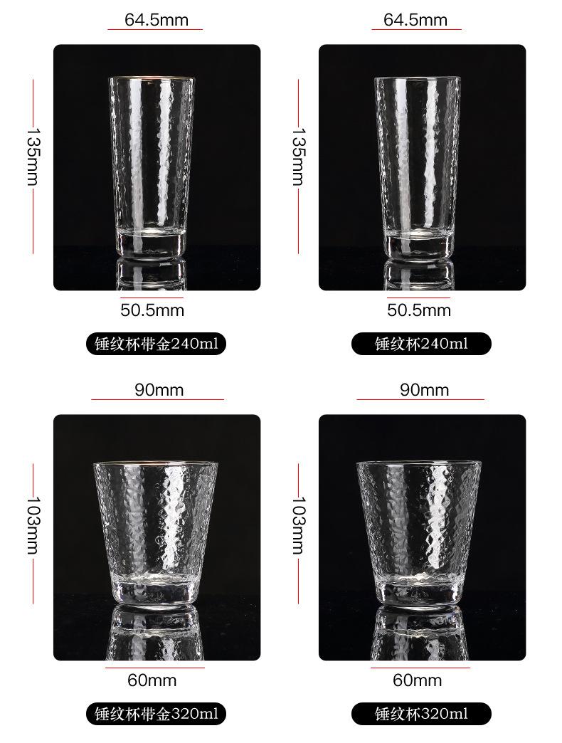 Taza Retro Creativa de Vidrio con Patrón de Martillo Estilo Japonés Borde Dorado Taza para Jugo Taza para Bebidas Vaso de Vidrio para el Hogar Vaso de Agua Taza de Té