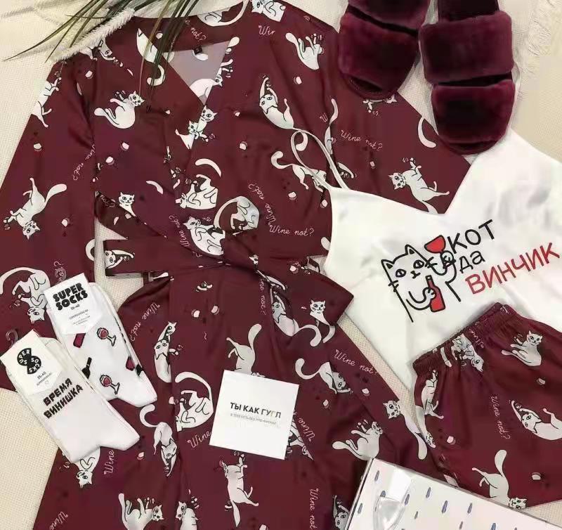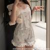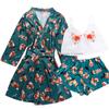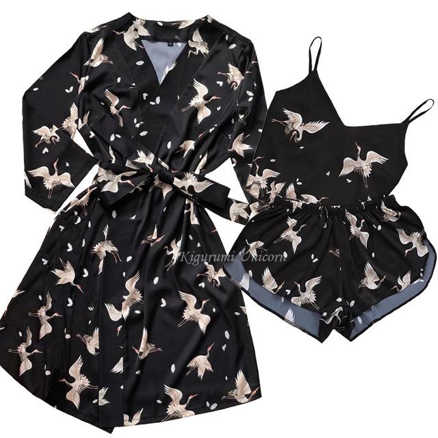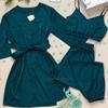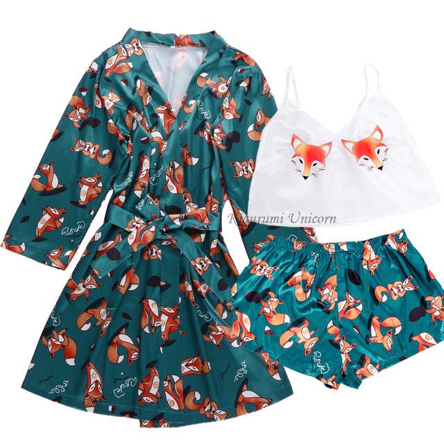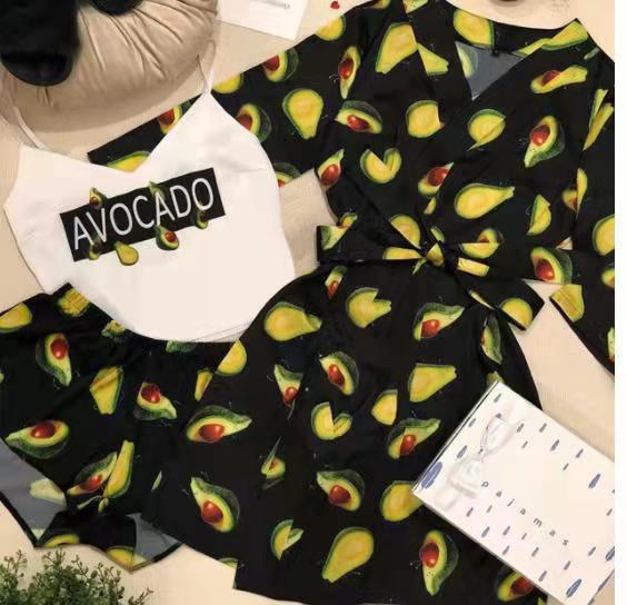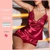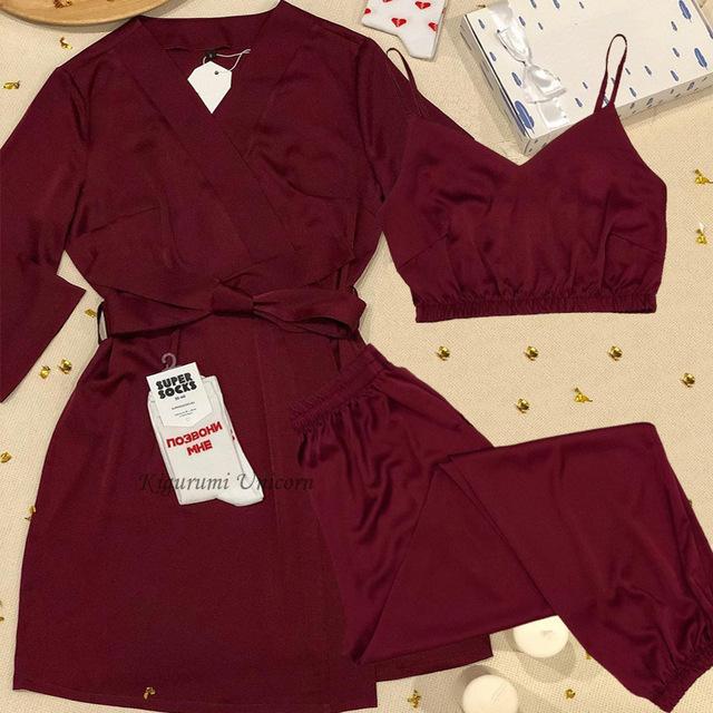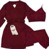 Comercio exterior sexy camisola de satén elástico shorts pijama traje de tres piezas para mujer imitación seda de hielo cuello en V para el hogar