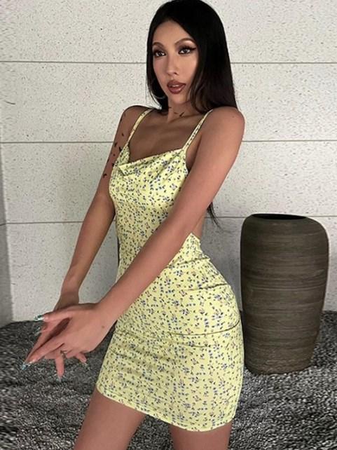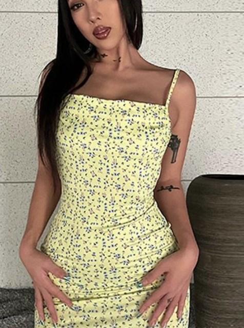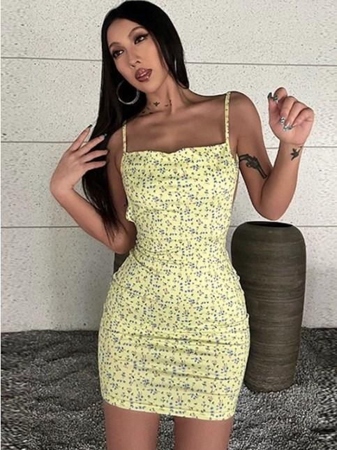 Estilo Europeo y Americano Amazon Verano Nuevo Ropa de Mujer Sexy Espalda Descubierta Slim Floral Tirantes Vestido Temperamento Falda Corta Venta al por Mayor