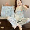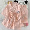 Pijama de Tres Piezas de Dibujos Animados Japoneses de Verano Talla Grande para Mujer Verano Manga Corta Pantalones Cortos y Pantalones Largos Se Puede Usar Fuera Conjuntos de Ropa para el Hogar