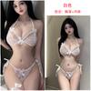 Lencería sexy de encaje con sujetador de tres puntos, bragas transparentes para mujer, tentación pura, pijama para mujer, venta al por mayor